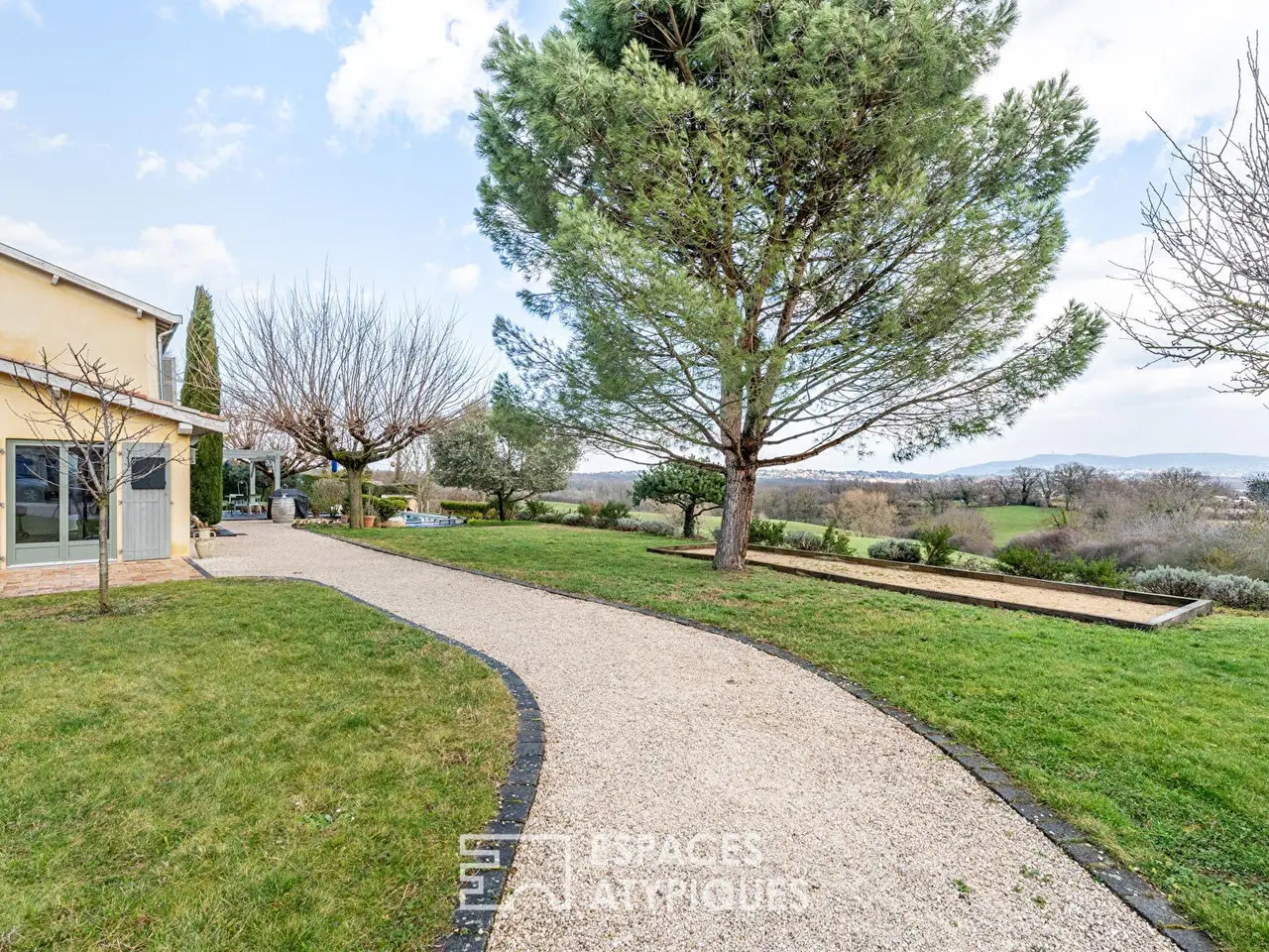Nestled in the heart of a green setting of nearly 2000 sqm, this old farmhouse, completely renovated and extended, opens onto an enchanting landscape, offering a breathtaking view of the valley as far as the Monts d'Or. Here, everything is light and serenity, in absolute calm while remaining close to the center of Marcy l'etoile and amenities as well as the Parc Lacroix Laval and the Charbonnieres-les-Bains train station which serves Lyon. Upon entering, a generous hall reveals on the one hand, an office space bathed in light, where a large opening frames the surrounding nature like a living painting. A first master suite completes this part, providing comfort and privacy. On the other side of the hall, is the living space with a semi-open kitchen, fully equipped, extended by a discreet storeroom. The living room and dining room, with harmonious volumes, open widely onto the outside, inviting contemplation and conviviality. A staircase leads to the upper floor, where light remains omnipresent. Four bedrooms, including a second master suite, make up this sleeping area, accompanied by a bathroom. Outside, the wooded grounds display their assets: a swimming pool for sunny days, a petanque court for shared moments and an independent workshop of more than 30m to give free rein to your desires. A house where the charm of the old dialogues with a careful renovation, designed to enhance the light and nature. A unique place to live, to discover without delay. Diagnostics in progress. ENERGY CLASS: - / CLIMATE CLASS: - Estimated average amount of annual energy expenditure for standard use, established from energy prices for the year 2021: between - and - EUR REF. 9665 Additional information * 8 rooms * 5 bedrooms * 3 shower rooms * Outdoor space : 2000 SQM * Property tax : 1 277 € Energy Performance Certificate EPC blank or in progress Agency fees The fees include VAT and are payable by the vendor Mediator Mediation Franchise-Consommateurs 29 Boulevard de Courcelles 75008 Paris