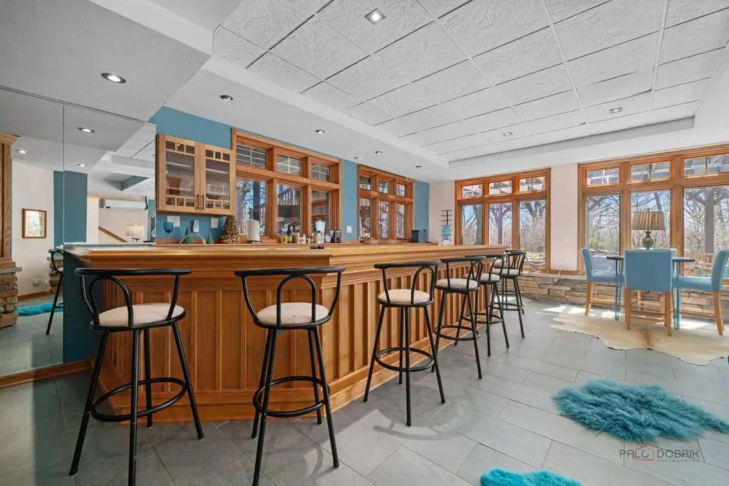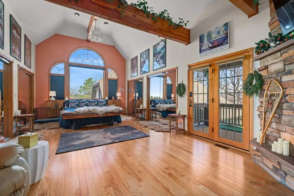 Set on over 27 acres in unincorporated McHenry County, this one-of-a-kind property defies categories. With more than 6,500 square feet of living space, it offers a flexible floorplan full of possibility-multiple bedrooms, bonus rooms, lofts, and spaces that invite imagination. From the moment you enter, it's clear this place is special. Authentic Saltillo tile floors warm the great room, kitchen, and office, complementing the soaring ceilings and statement fireplace in the family room. The current owner has infused the property with character at every turn-hundreds of thousands invested in thoughtful upgrades that respect the spirit of the home while elevating it. The kitchen features 2022 appliances and upgrades. The primary suite is a retreat of its own, complete with new hardwood floors and a spa-like bathroom where you can soak while looking out over your private acreage. A bonus room-accessible from the suite or a private staircase in the garage-could be an art studio, playroom, home theater. The third-floor loft adds a fun surprise, and the walkout lower level includes a bedroom, bathroom, and bar-perfect for guests or extended living. Outdoor living is just as compelling: multiple decks, gazebos, a stocked fishing pond, fireplaces, fire pits, ATV trails and views that go on for miles.The garage? It's a split 6+ car haven with room for toys, tools, and more. One of the garages has been transformed into a luxury dog suite-yes, climate controlled with a dog washing sink and direct access to a whimsical "dog woods"---one acre completely fenced with metal fencing and winding mulched paths. In addition, there are 10 acres fenced with an invisible fence. At the road, there are approximately 10 acres, which could be converted for horse pasture land. New roof, water heater, and one new HVAC system in 2024. Just imagine the possibilities as your family retreat or full time home. Close to Lake Geneva and charming downtown Woodstock, with commuter train access in nearby Harvard.