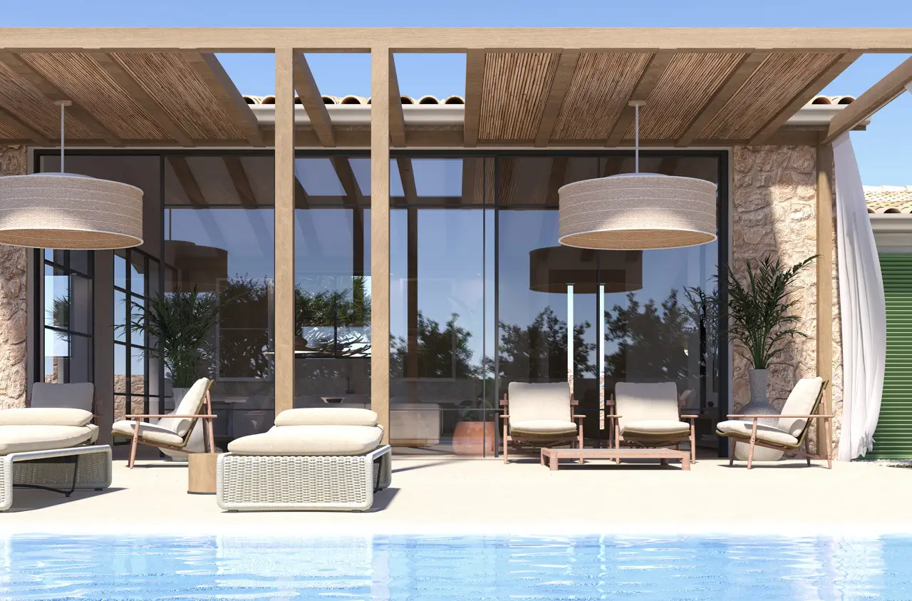 Welcome to your Mediterranean dream: This exquisite finca in Marratxí - Sa Cabaneta offers luxury and comfort at the highest level. On an impressive plot of 14,159 m², there is a generous living space of 568 m² where you and your family can enjoy life to the full. This single-storey property impresses with its solid construction with natural stone walls and the projected condition, which gives you the opportunity to design your home exactly as you wish. A total of 7 spacious rooms are available, including 6 elegant bedrooms, each with its own en-suite bathroom, a walk-in closet and direct access to the beautiful garden. One of them, of course with en-suite bathroom and dressing room, is located in a separate guest house. At the heart of the house is the spacious living and dining area with open windows offering breathtaking views of the pool and the well-tended garden. The integrated, modern fitted kitchen, equipped with high-quality appliances from BOSCH or similar brands, invites you to create culinary masterpieces and enjoy convivial evenings. The high-quality ceramic tiled floors and upscale furnishings underline the exclusive character of this property. The air conditioning ensures a pleasant indoor climate on hot days, while the fireplace provides a cozy atmosphere on cooler evenings. The outdoor area impresses with a partially covered terrace of approx. 55 m², which is stylishly structured by an elegant pergola. The approx. 35 m² swimming pool offers refreshment and fun for the whole family. The Mediterranean garden, which is rich in possibilities for planting fruit trees, olives or vines, invites you to relax and enjoy. Although the property is in a quiet location, you benefit from its proximity to international schools, the airport and the vibrant capital city of Palma. This harmonious combination of luxury, functionality and an excellent location makes the finca an ideal retreat for discerning buyers looking for something special.