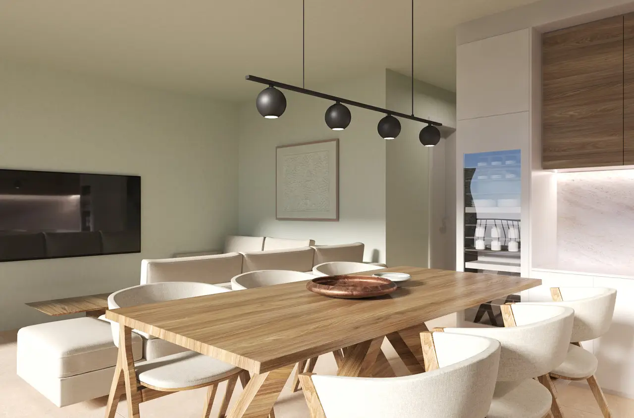 This planned terraced house is located on a plot of approximately 234 m² in Sa Cabaneta and will have four rooms, including three bedrooms and three bathrooms, but there is still the possibility to customize it to your own taste. The house is quietly situated and offers panoramic views of the Tramuntana mountains and the Sa Cabaneta valley from the terrace and pool. The living area is spacious and bright, offering enough space for the whole family. The open, modern kitchen with the comfortable living room leads to the terrace, perfect for cozy evenings outdoors. Thanks to the large windows, the house is flooded with light and creates a pleasant atmosphere. A one-car garage is planned. Overall, this property offers the perfect blend of comfort, functionality, and modern design. The quiet location and the view of the Tramuntana mountains make the house an ideal place to unwind and relax. Make your dream home a reality; we are happy to provide you with further information! Position Sa Cabaneta is a charming village on Mallorca, part of the municipality of Marratxí, near Palma, with around 8,000 inhabitants. Sa Cabaneta is home to one of Mallorca's oldest pottery traditions, dating back to the 17th century. The so-called siurells are made here from white-fired clay. Siurells are the clay figures with an integrated whistle, typical of Mallorcan ceramics, and are made and painted only by women. They once served farmers and shepherds as an instrument to keep their flocks together. In some Mallorcan folk dances, the siruell flute is still part of the music. Particularly worth seeing is the church of Sant Marçal, which stands on a picturesque square in the heart of the village. From here, you can enjoy magnificent views of the surrounding area. Sa Cabaneta is also an ideal starting point for excursions into nature, especially into the nearby Tramuntana Mountains, a UNESCO World Heritage Site. The quiet streets and well-kept architecture give the village a unique character, which is emphasized by its proximity to the capital, Palma, and the international airport. Sa Cabaneta is located approximately 15 km from Palma and is ideal for commuters who want city life within easy reach but still prefer the tranquility of rural living. The airport is also only about 18 km away, making it attractive for travelers. Sa Cabaneta thus wonderfully combines rural idyll with urban proximity, offering an authentic Mallorcan lifestyle. equipment - Pool - Garage - Garden parking space 1 x garage Other Information We generally recommend having the building regulations reviewed by a specialist lawyer. All information is based exclusively on information provided by the owner or client. We assume no liability for the completeness, accuracy, or timeliness of the information. The brokerage fee is borne by the seller. Any taxes, notary fees, and land registry fees incurred upon purchase are the responsibility of the buyer.