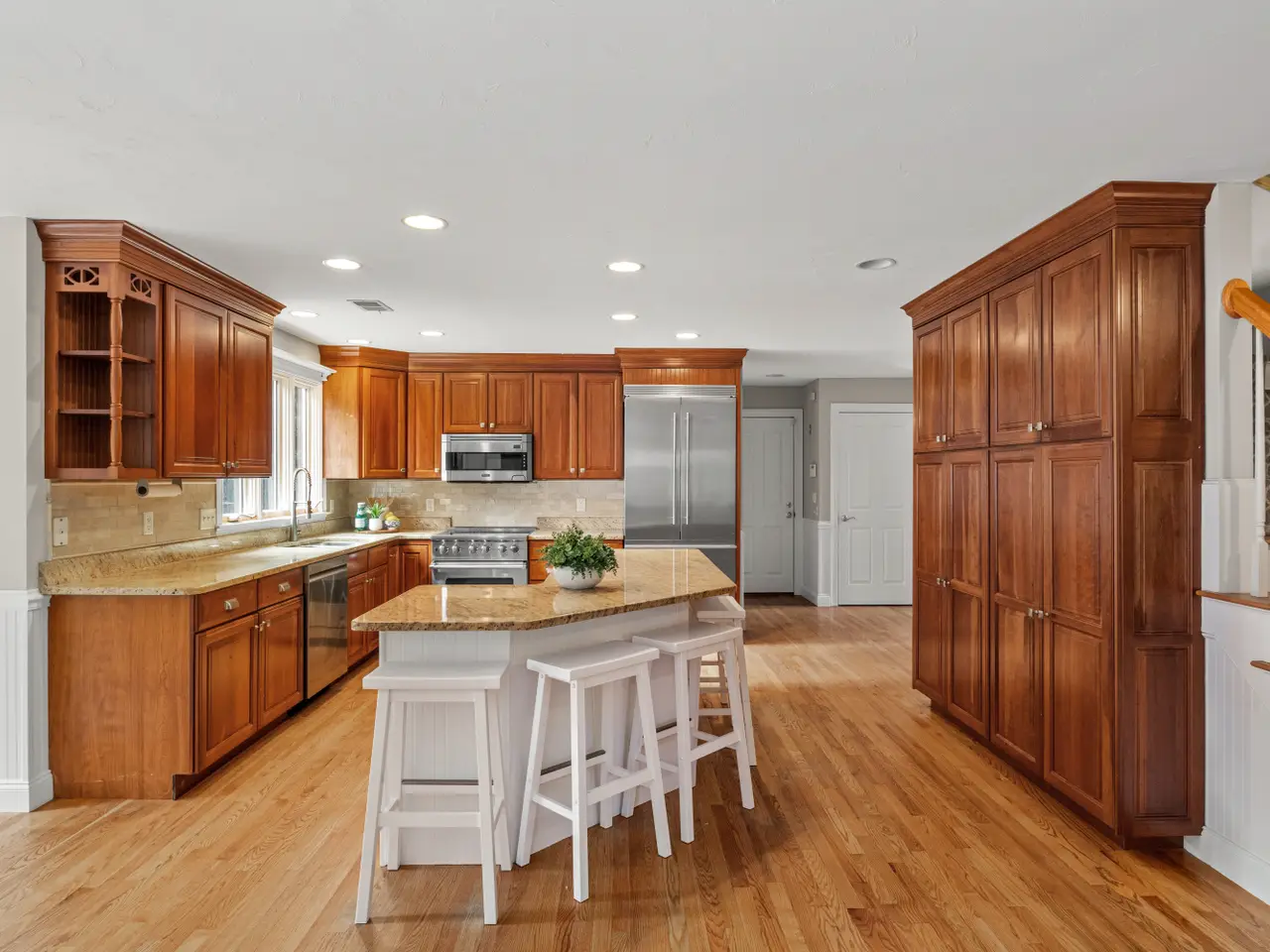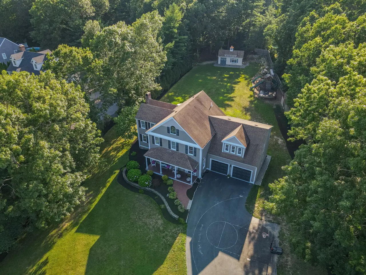Sitting proudly on a gentle hill in one of Marshfield’s most sought-after neighborhoods, this sunlit Colonial offers timeless charm and exceptional space across four finished levels. Thoughtful landscaping and vibrant plantings frame the picture-perfect front porch. Inside, natural light fills every room, from the fireplaced family room to the spacious kitchen with granite island, stainless appliances, breakfast nook, and adjacent formal dining room. A dedicated home office provides the perfect remote work setup. Upstairs, the primary suite features a walk-in closet and private bath, while the finished third floor offers bonus living space for a playroom or studio. The walkout lower level includes a full bath, an exercise room, and flexible space perfect for a playroom or media room.