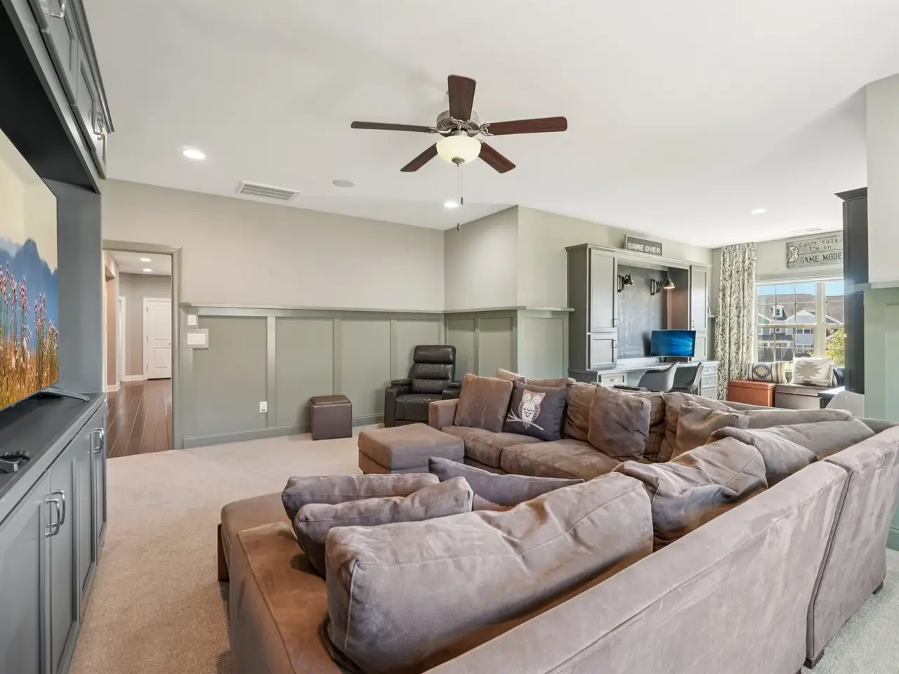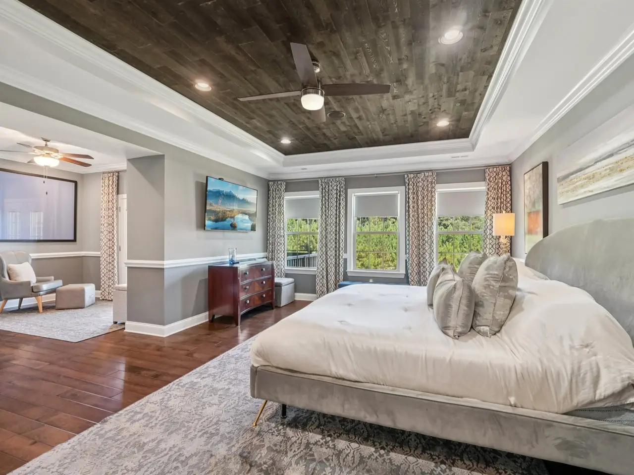 Welcome your Weddington estate home that defines luxury living. This former model home offers an unparalleled combination of elegance, comfort, and state-of-the-art features. Stunning curb appeal, complete with a welcoming front porch and an oversized 3-car side-load garage, set against the backdrop of a wooded and expansive private backyard. Grand foyer with soaring 10-foot ceilings, exquisite millwork, and hardwood floors. Formal dining room and living room. Family room with gas fireplace and coffered ceilings leads to the heart of the home; a gourmet kitchen, a chef's dream featuring a massive island, tons of countertop space and extensive cabinet storage, stainless steel appliances, a farmhouse sink, walk-in pantry, drop zone with cubbies and a private office nook. Direct access to the covered patio and firepit - relaxing outdoor living! Guest br and full ba on main. Second floor features a luxurious primary suite; a true sanctuary, offering a spa-like en-suite bath, dual closets and direct access to laundry room. Plus+ a sitting area and balcony for your own private escape! All bedrooms are spacious and have their own bath. The massive bonus room, with its designer shiplap and surround sound, is perfect for a media room, recreation area, or workspace. Third floor recreation area is that perfect flex space- one more area that perfectly completes the ease and flow of this home. Garage with finished floor and tons of storage opportunity, full yard irrigation. As a former model home, this property is filled with high-end upgrades and thoughtful details that set it apart. From designer lighting to custom built-ins, every aspect of this home has been meticulously curated to offer the pinnacle of modern luxury. Enjoy the perfect balance of serene, private living while being just minutes from highly rated public schools, vibrant shopping and dining of Waverly, Rea Farms, and Blakeney. This is more than a home; it's a lifestyle.