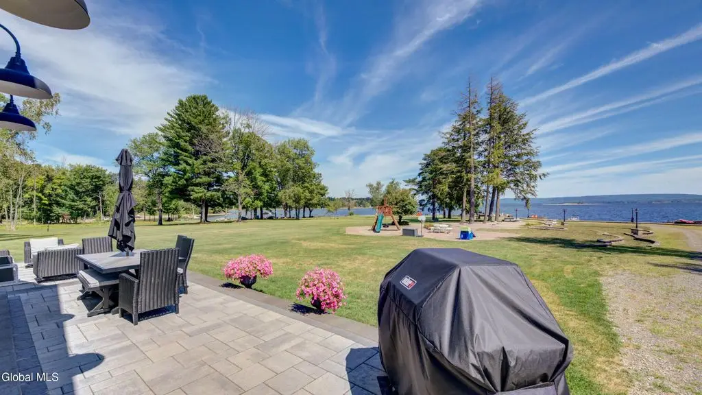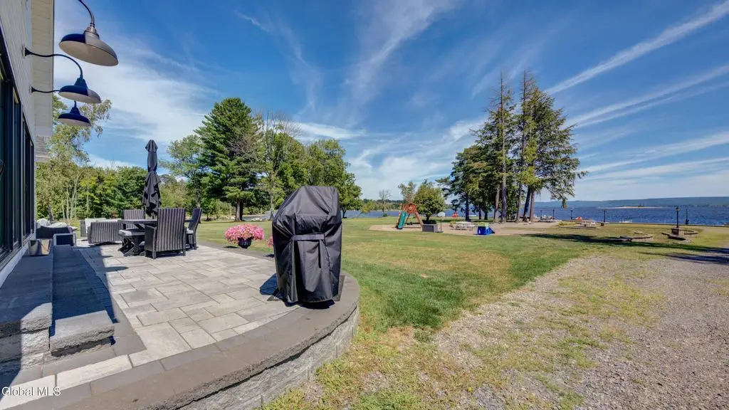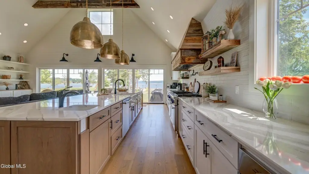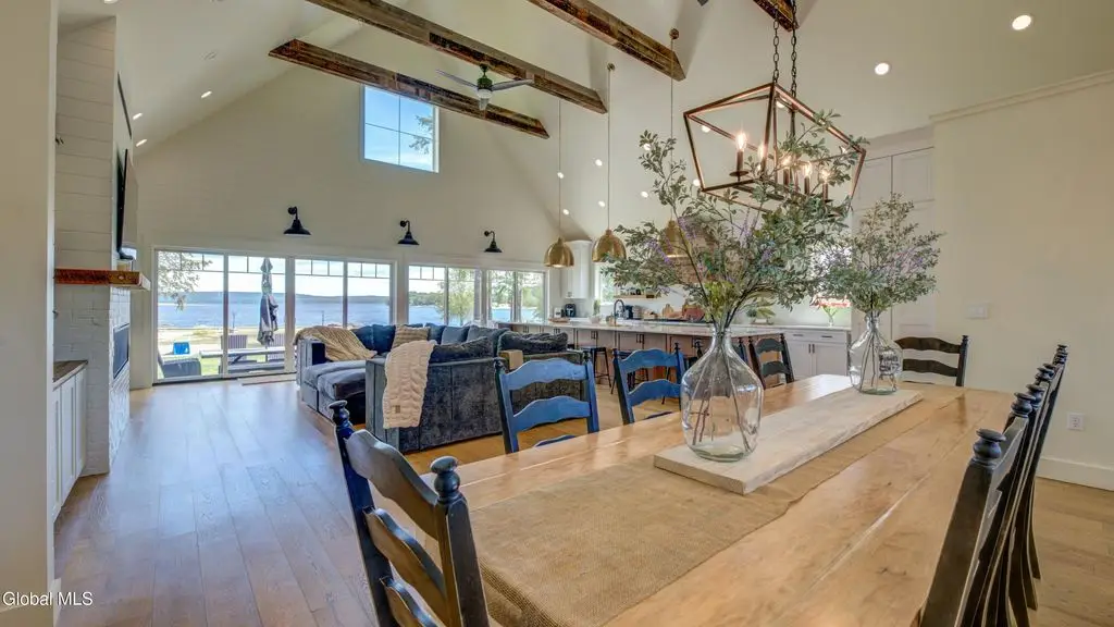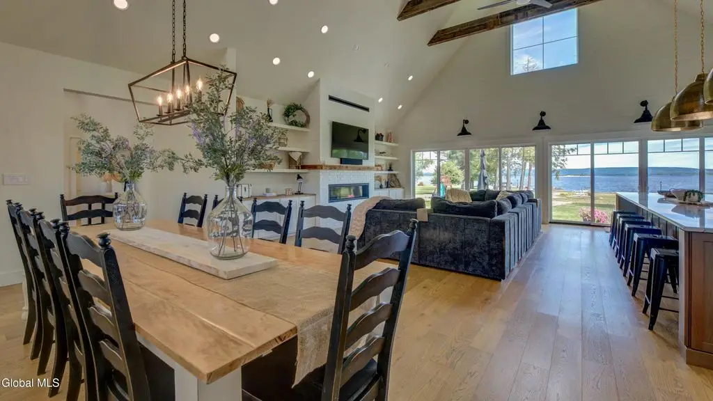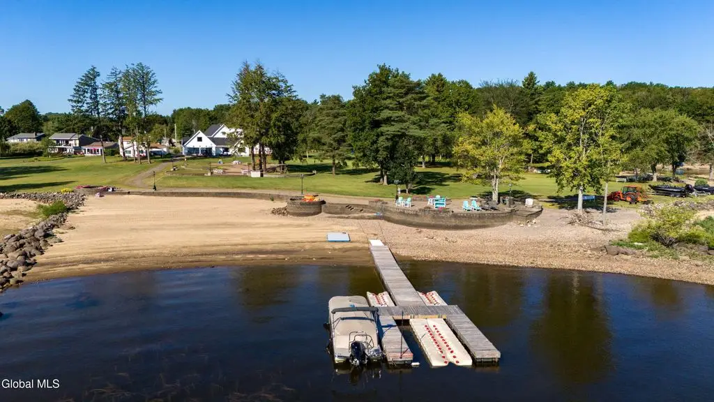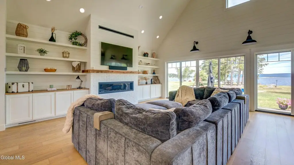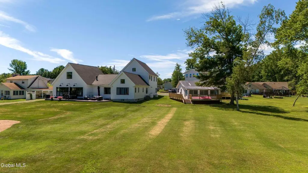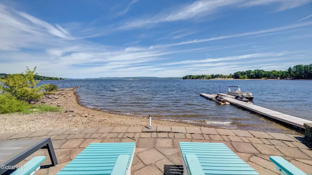 Welcome to this extraordinary custom-built lakefront home offering 600' of direct frontage on Great Sacandaga Lake! Located on a quiet dead-end road at the southernmost point of the lake, this 4 year old home provides unmatched panoramic views of the entire lake and surrounding mountains. Featuring 3 bedrooms and 2 full bathrooms, the home offers 2,694 square feet of finished living space on the main level, with an additional 1,092 square feet of unfinished space upstairs. The upper level is already plumbed for a bathroom and wet bar and could easily accommodate 2-3 more bedrooms plus a versatile flex area, bringing the total potential living space to 3,786 square feet. Inside, the great room impresses with soaring 24' ceilings, custom built-in shelving, and a cozy gas fireplace. The open-concept layout flows seamlessly into a chef's kitchen equipped with high-end Thermador appliances, large island with seating for 8-10, quartz countertops, ceramic tile backsplash, and walk-in pantry with built-in shelving. Hardwood floors throughout! There is an amazing Primary Suite with fantastic lake views, an enormous walk in shower with glass surround and a huge walk-in closet with floor-to-ceiling shelving! There are several security cameras and a hard-wired Generac generator for peace of mind. Comfort is ensured year-round with propane forced-air heating and central air conditioning. The outdoor space is truly exceptional, including extensive custom stone retaining walls and lock block patio systems along the waterfront. A large sandy beach and 80-ft dock provide direct access to lake, while multiple patio seating areas and sprawling level lawn create a park-like setting ideal for relaxation and entertaining. This property represents a rare opportunity to enjoy luxury lakeside living, modern construction, stunning scenery, and unmatched lake access - all in one of the most desirable locations on Great Sacandaga Lake. Adjacent home owned by same party also available for sale