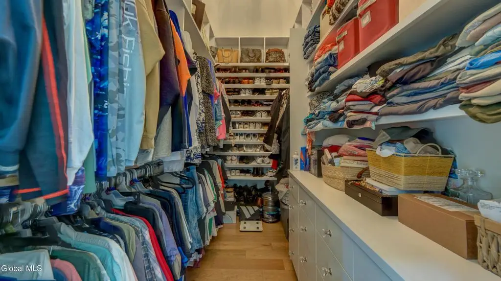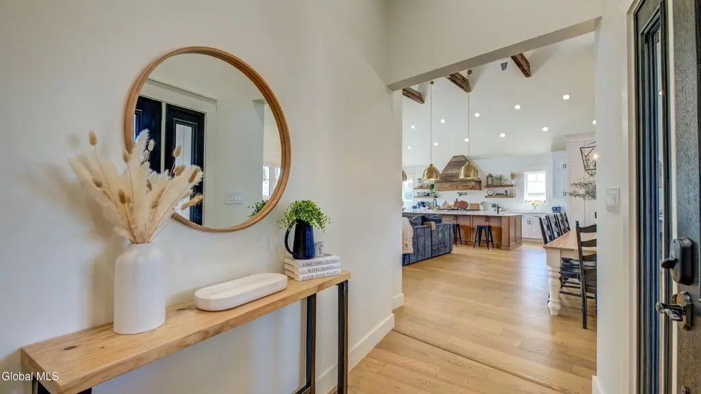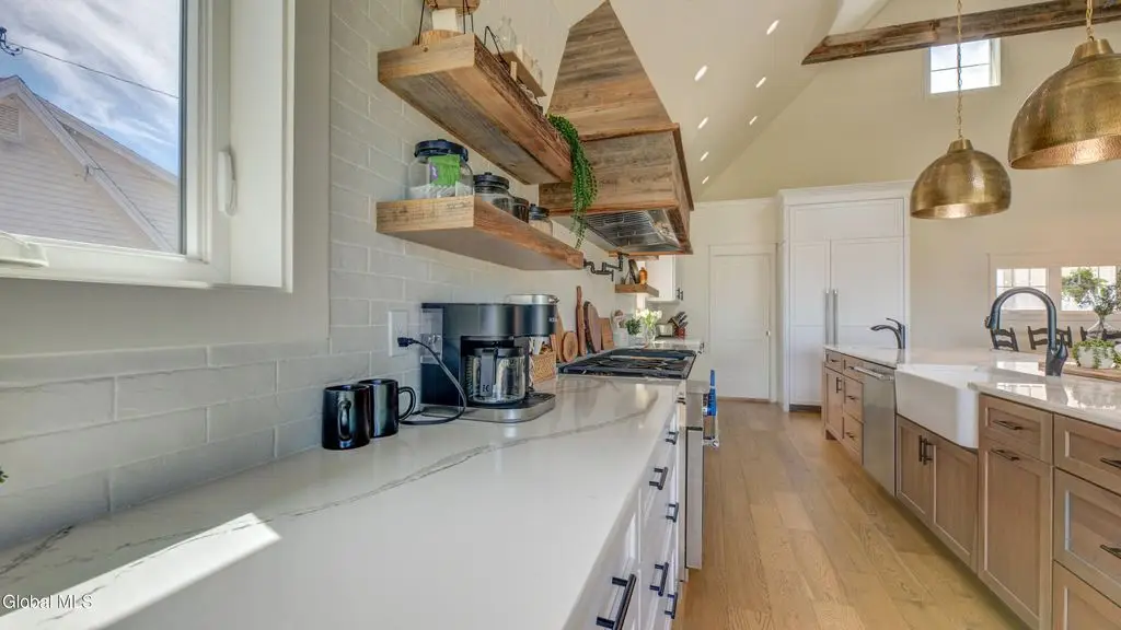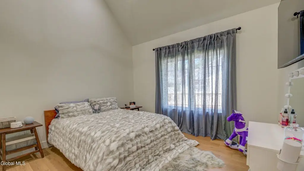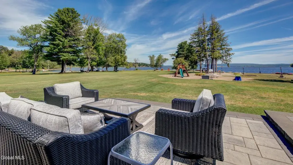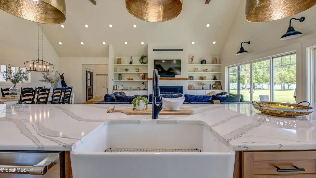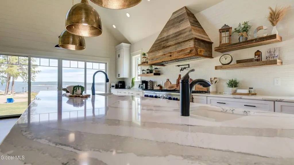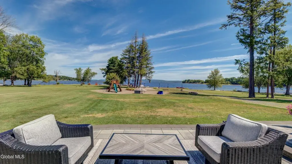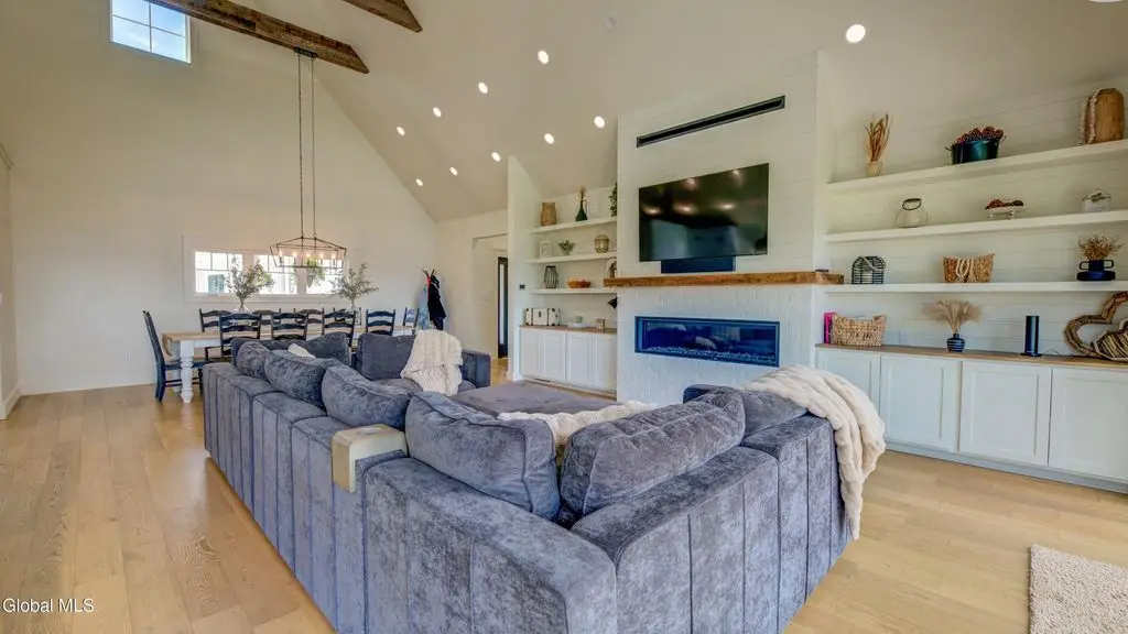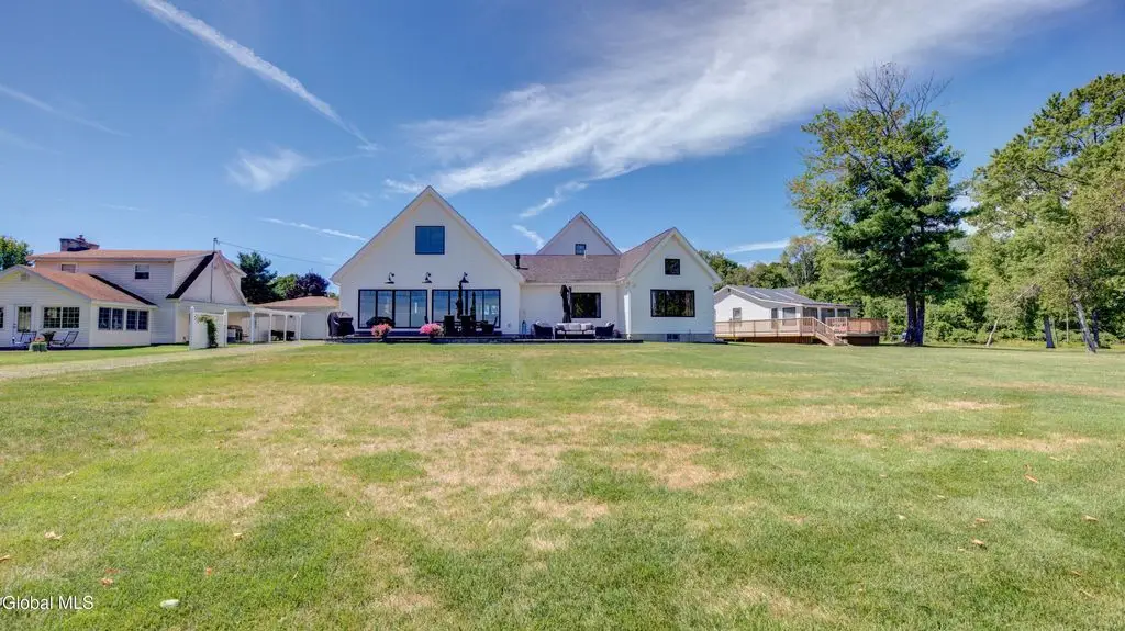 Welcome to this extraordinary custom-built lakefront home offering 600' of direct frontage on Great Sacandaga Lake! Located on a quiet dead-end road at the southernmost point of the lake, this 4 year old home provides unmatched panoramic views of the entire lake and surrounding mountains. Featuring 3 bedrooms and 2 full bathrooms, the home offers 2,694 square feet of finished living space on the main level, with an additional 1,092 square feet of unfinished space upstairs. The upper level is already plumbed for a bathroom and wet bar and could easily accommodate 2-3 more bedrooms plus a versatile flex area, bringing the total potential living space to 3,786 square feet. Inside, the great room impresses with soaring 24' ceilings, custom built-in shelving, and a cozy gas fireplace. The open-concept layout flows seamlessly into a chef's kitchen equipped with high-end Thermador appliances, large island with seating for 8-10, quartz countertops, ceramic tile backsplash, and walk-in pantry with built-in shelving. Hardwood floors throughout! There is an amazing Primary Suite with fantastic lake views, an enormous walk in shower with glass surround and a huge walk-in closet with floor-to-ceiling shelving! There are several security cameras and a hard-wired Generac generator for peace of mind. Comfort is ensured year-round with propane forced-air heating and central air conditioning. The outdoor space is truly exceptional, including extensive custom stone retaining walls and lock block patio systems along the waterfront. A large sandy beach and 80-ft dock provide direct access to lake, while multiple patio seating areas and sprawling level lawn create a park-like setting ideal for relaxation and entertaining. This property represents a rare opportunity to enjoy luxury lakeside living, modern construction, stunning scenery, and unmatched lake access - all in one of the most desirable locations on Great Sacandaga Lake. Adjacent home owned by same party also available for sale