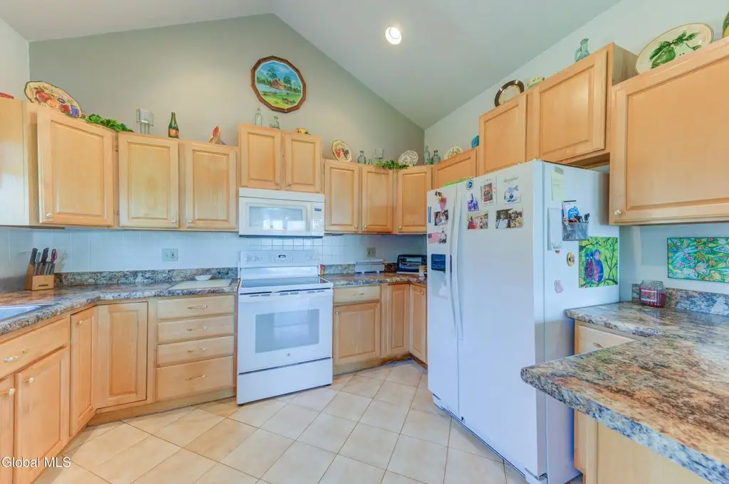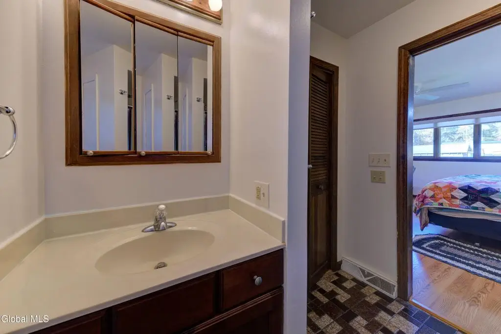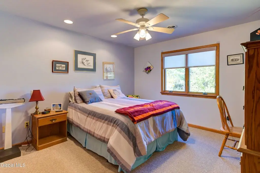 Embrace lakeside living at its best with this spacious 7-bedroom, 4-bath home on the shores of Great Sacandaga Lake. Perfectly positioned on a quiet dead-end road in Mayfield, this 3,798 sq ft retreat boasts 120' of direct waterfront with a sandy beach, private dock, and sweeping panoramic views that sparkle from sunrise to sunset. The main residence offers 4 bedrooms and 2.5 baths, highlighted by a first-floor en-suite and a sun-filled open layout where the kitchen, dining, and living areas flow together around a cozy stone-hearth fireplace. Step through sliding glass doors to a generous deck designed for taking in lake breezes, morning coffee with a view, or evenings by the water. Upstairs, two additional bedrooms and a full bath provide space for family and friends, while a two-car garage adds convenience. For extended family or guests, the in-law apartment is a private haven with its own entrance up a flight of stairs, covered balcony overlooking the lake, 3 bedrooms, full bath, open living/kitchen/dining area, laundry, separate utilities, and even its own garage - perfect for hosting.A partially finished basement with wood stove and workshop adds flexibility, while outside the fun continues with a sprawling lawn, sandy beach, and dock ready for swimming, boating, and endless summer gatherings. With parking for 8, a paved drive, and close access to dining and amenities, this one-of-a-kind lakefront property invites you to live, play, and make lasting memories all year long.