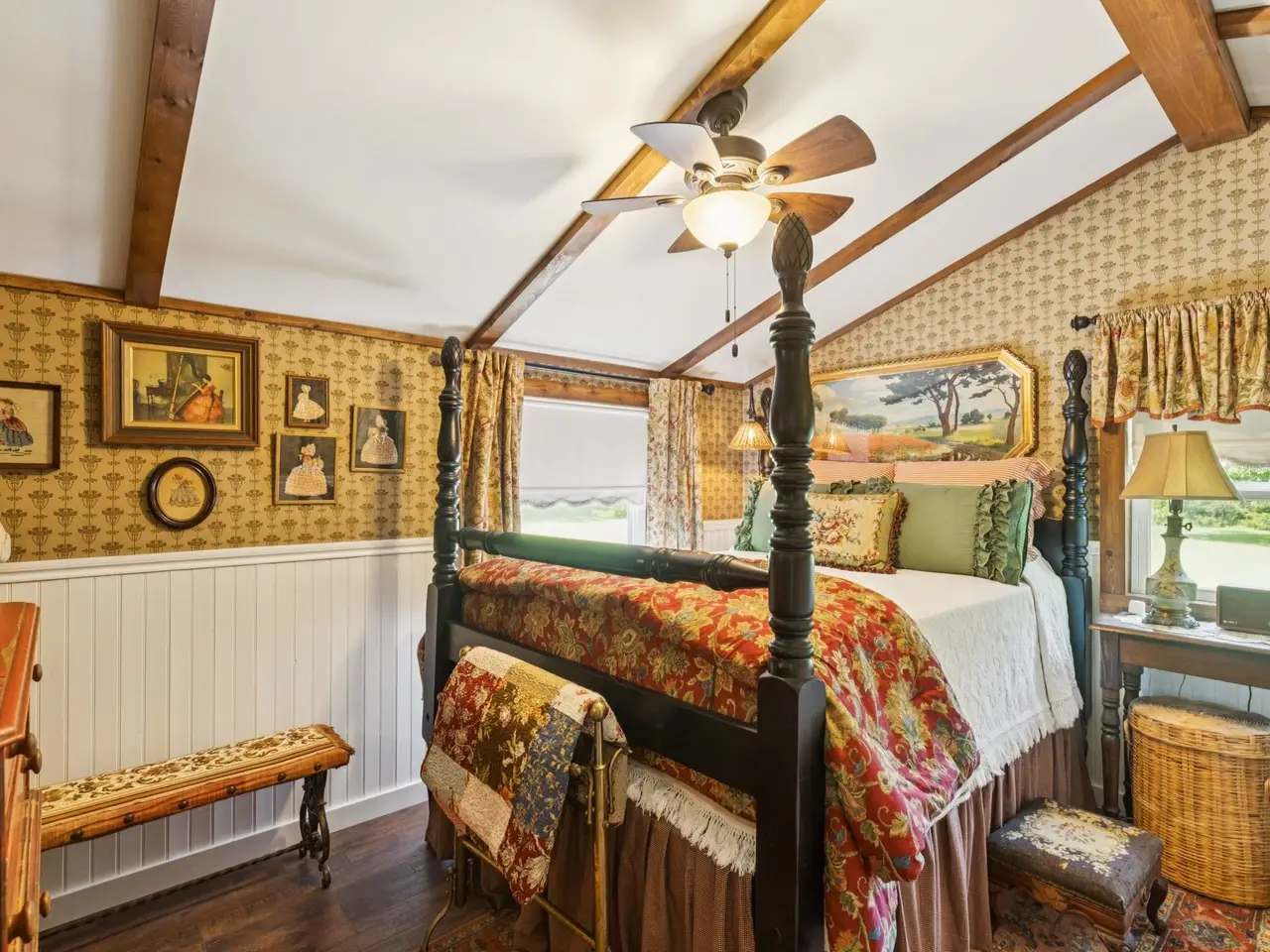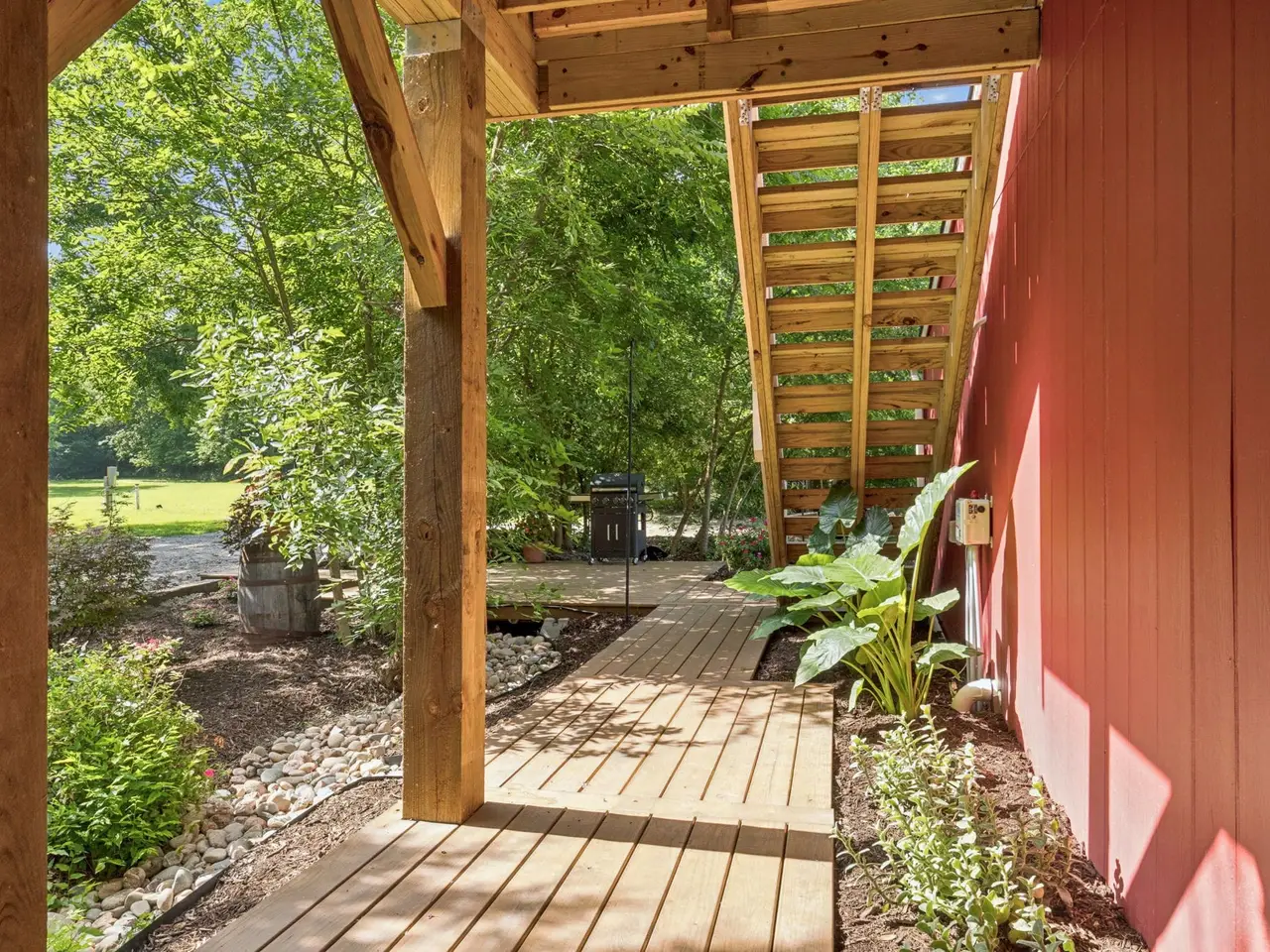 Welcome to Honey Creek Farm, a hidden gem with two homes nestled on 10+ unrestricted acres near historic downtown McKinney, the new HEB and Signature Kroger. This ag exempt, immaculate estate is home to award-winning honeybees who won first place at the State Fair of TX in 22 and 24. (New owners will be provided options for keeping the exemption.) A magical retreat with towering pecan and oak trees, a year-round creek, wooden bridge, and stone seating area perfect for peaceful strolls and quiet reflection. Rich with history and truly unique in Collin County, it includes meandering trails that wind through the woods beside the creek, a perfect escape. The main house is meticulously maintained with two bedrooms, two living areas, a full bath, 2-car garage, RV hookup, quaint garden shed, large deck and patio, new roof, plus brand new flooring and fresh paint throughout, filled with natural light and charming character. The new red barn with AC has tons of storage, covered RV space, and a carefully curated English cottage above-a storybook retreat perfect as guest quarters, mother-in-law suite, or short-term rental. Its beautifully landscaped with a fire pit creating a cozy spot for family and friends. The scenic build site is ready for your dream home or boutique venue, with a winding driveway, water, electric, new septic and extra parking for guests already in place. The property is partially fenced and suited for horses or other farm friends. A rare opportunity to own this pristine countryside in desirable McKinney-the possibilities are endless!