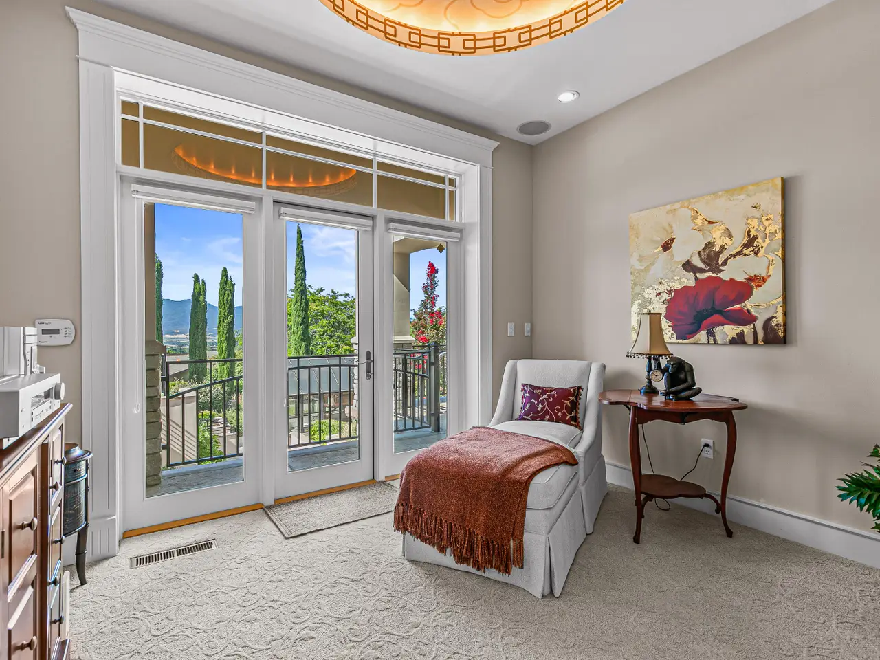 Enter across the threshold of this luxurious estate's grand custom iron and glass doors into a realm of refined class and sophistication. The entrance exemplifies the masterful design, boasting luminous windows with stunning valley views, gorgeous walnut flooring, one-of-a-kind ceiling art, and outstanding light fixtures that create a truly majestic ambiance of elegance and warmth with each room you enter. From the large spectacular gourmet kitchen with magnificent custom detail to the large lush outdoor living space perfect for entertaining, this gorgeous home is sure to captivate and impress the most discerning luxury buyer.