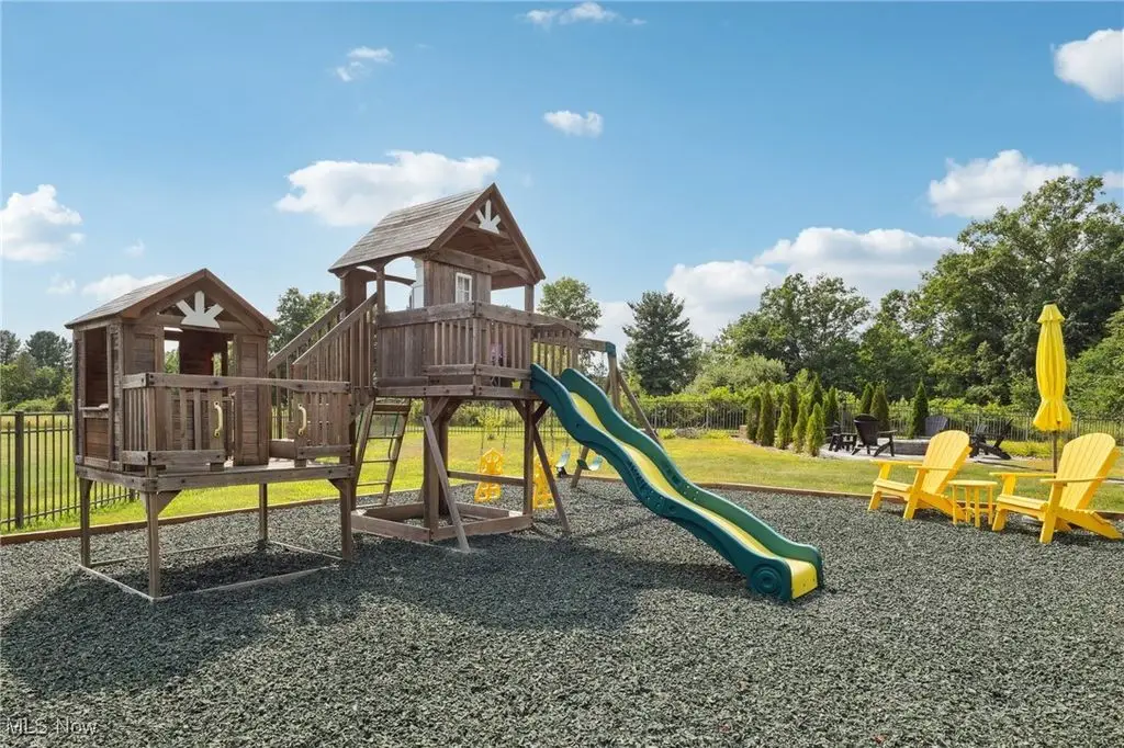 Amazing French Colonial Estate with Resort-Style Amenities built by Legacy Homes nestled on over 2.2 private, manicured acres. Timeless Elegance and Superior Craftsmanship are evident throughout. The main level features a luxurious First Floor master suite complete with vaulted ceilings, a cozy fireplace, glamour bath with dual vanities, tiled shower, jetted tub, 2 spacious walk-in closets, and spa like finishes, along with deck access. The heart of the home is the custom designed chef's kitchen, boasting a center island, stainless steel appliances, eat-in area with access to covered deck that seamlessly flows into the 2-story family room, 2-story great room, and formal dining area. Dual staircases in the front and the back add architectural charm and convenience. First Floor private office with wood paneling, wet bar, and half bath is perfect for work from home or could be a flex room. Upstairs, you'll find three generously sized bedrooms with walk-in closets, one with ensuite full bath and the other 2 sharing a Jack and Jill with separate vanities. In addition to the bedrooms, the upper level has a reading loft that's bathed in natural light that adds warmth and character to the home. The lower level is an entertainer's dreamC/B?B=complete with a full bar, climate-controlled wine room, gym, home theater, and an additional full bath. Step outside to your personal oasis featuring 2 rear decks, an in-ground saltwater pool (2016) with multiple fountain spouts and slide. This outdoor paradise also boasts a fire pit lounge, and playground with protective mulch-ideal for hosting or relaxing in total privacy. Spacious 3-car side-load garage adds to the home's functionality. Every detail has been thoughtfully designed for luxurious living and effortless entertaining. This rare offering blends sophistication, comfort, fun, and privacy in one of the area's most desirable settings. No HOA!