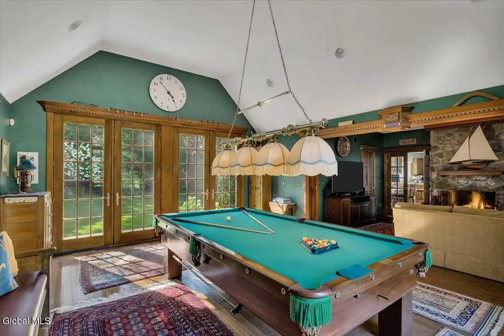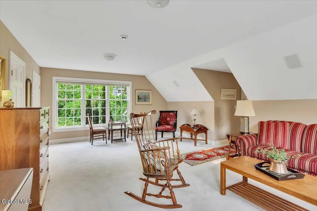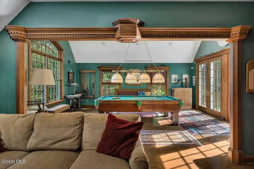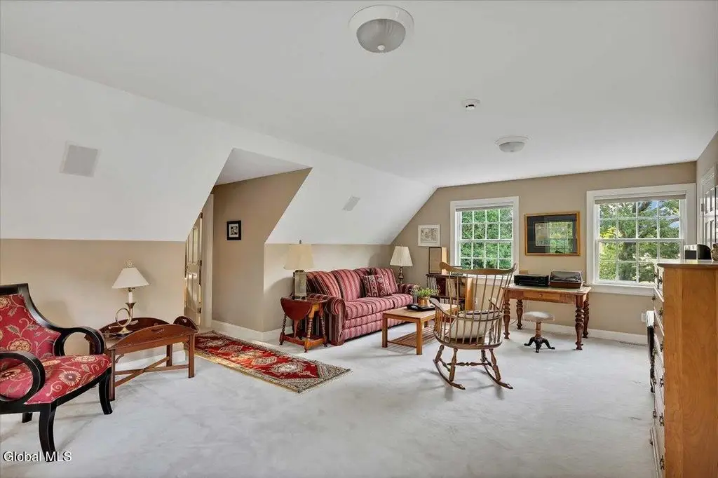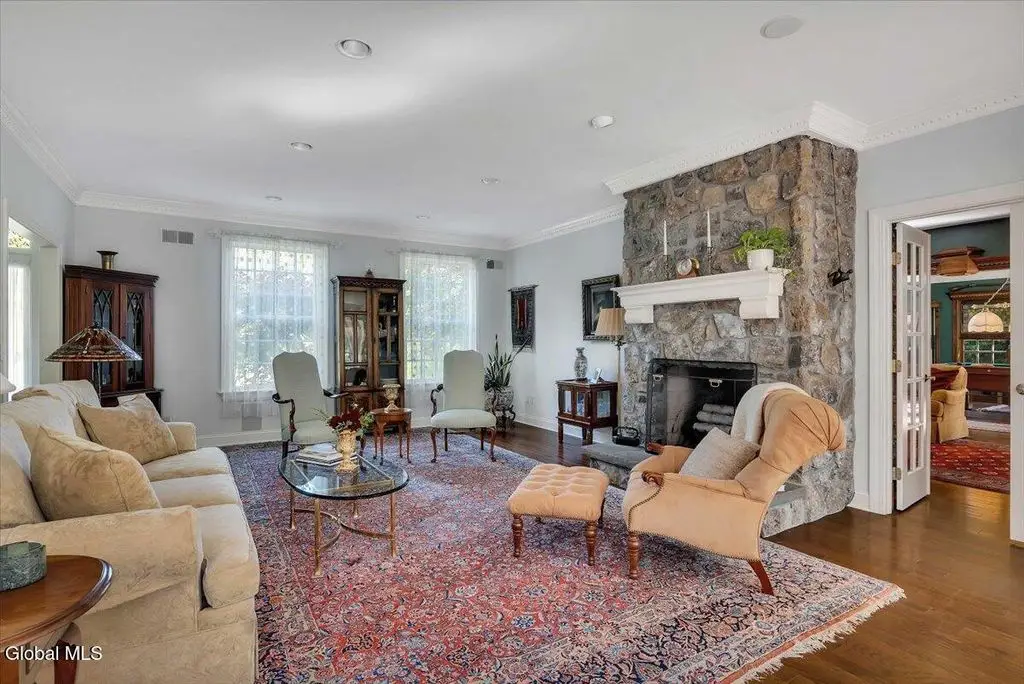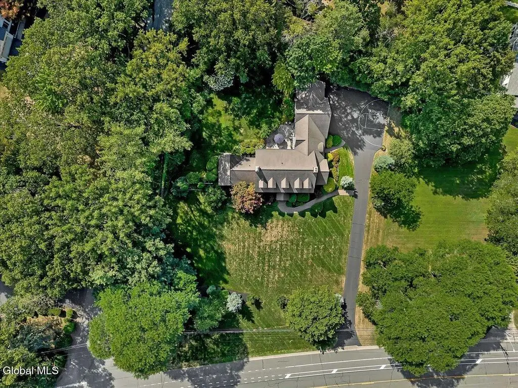 This stately & stunning custom-built Colonial offers 4 BR, 4.3 BA & approximately 6,000 sq. ft. of tastefully appointed living space! Set amid lush landscaping, this luxury home welcomes you with an elegant entrance. A gracious living room with a striking fossil stone fireplace. Handsome den with a gas log fossil stone fireplace & wet bar. Impressive billiard room. Gourmet kitchen with center island. Formal dining room with brick fireplace. Sunlit study framed by a large bay window. Laundry/mudroom. Dramatic two-story primary suite boasts a spa-like bath. Dormered loft area. 2 additional suites. Private guest suite with separate staircase. Lower level with: theater, kitchenette, bath & gym/game area. Private porch & terrace. Basketball court. An exceptional home in a desirable location!