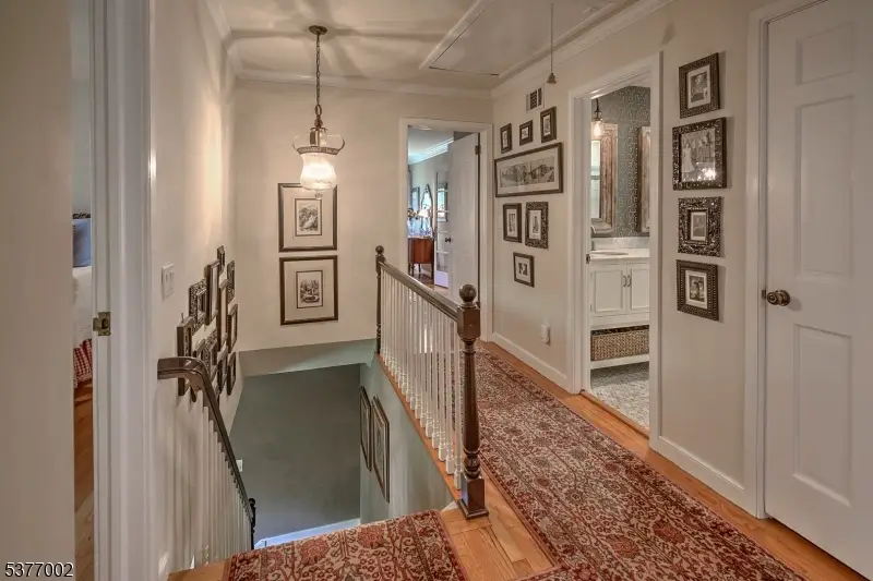 This handsome, well maintained CHC, located on Glen Gary Dr, is under 5 miles from the center of Morristown and all it has to offer while still being in the highly desirable Blue Ribbon Mendham School system. The home is well appointed with gleaming hardwood floors throughout and extensive custom millwork. The renovated kitchen with separate dining area and sliding doors to a back deck features a 6 burner Wolf cooktop, Viking double ovens, Samsung refrigerator, Kitchen Aid dishwasher and microwave drawer. The expansive living room runs from the front of the house to the back with lots of windows, ensuring plenty of natural light. A wood burning fireplace with custom mantle is the focal point of the family room. The custom built-in cabinetry and vaulted ceiling makes this an inviting, cozy place to hang out. All the bedrooms, located upstairs, offer wood floors, plenty of windows and ample closet space. The primary bedroom boasts an updated en suite with beautiful millwork and custom cabinetry. The lower level with a 2nd powder room, provides a spacious rec room, home office and a workshop. Another staircase from the basement to the garage adds convenience. Sitting on 1 private acre, the house is located across from Patriot Path, a multi-use trail system. With easy quick access to Morristown, take advantage of the train to NYC, many good restaurants, the Preforming Arts Center and nationally ranked Morristown Hospital. This home is truly move-in ready!