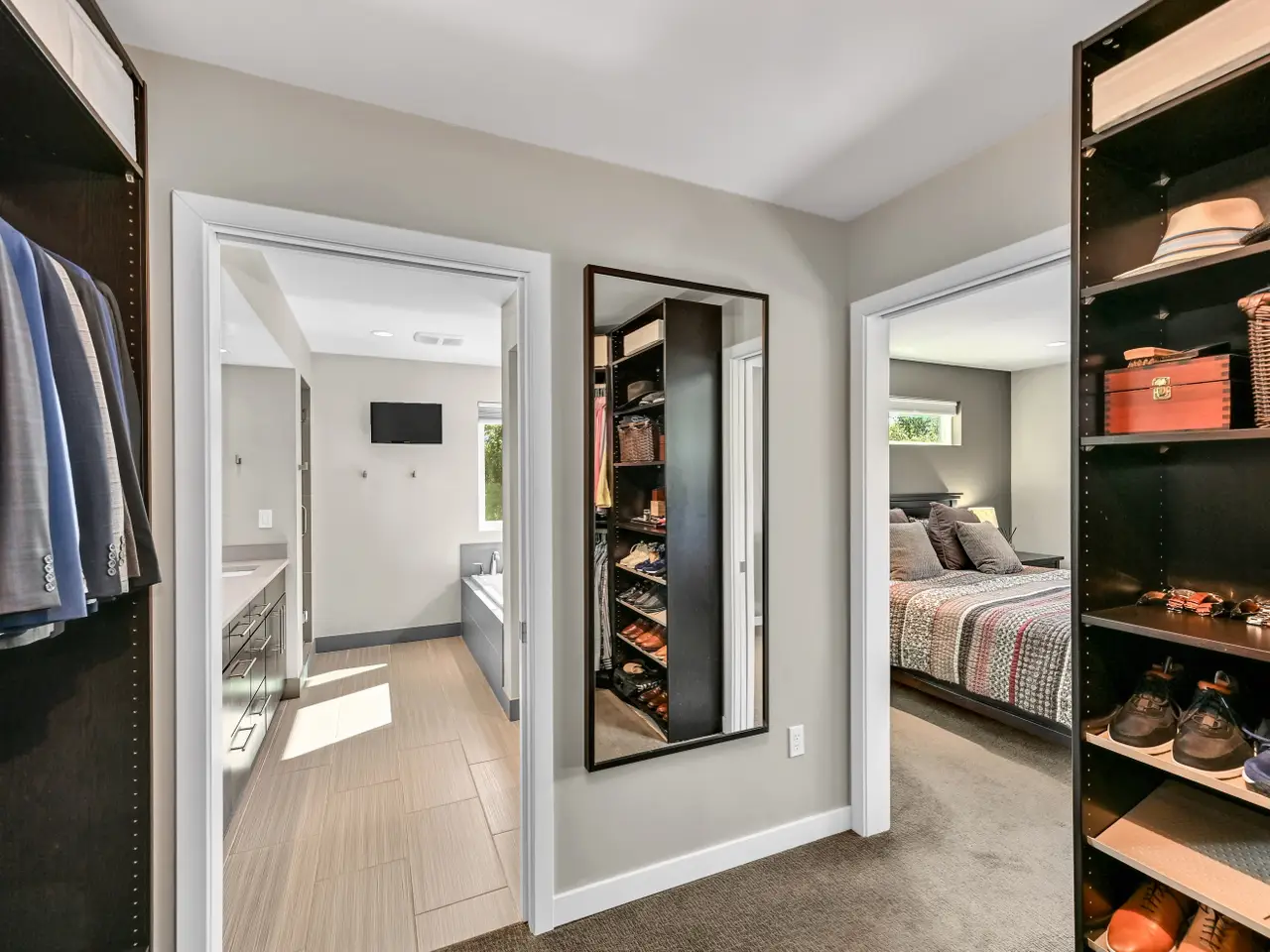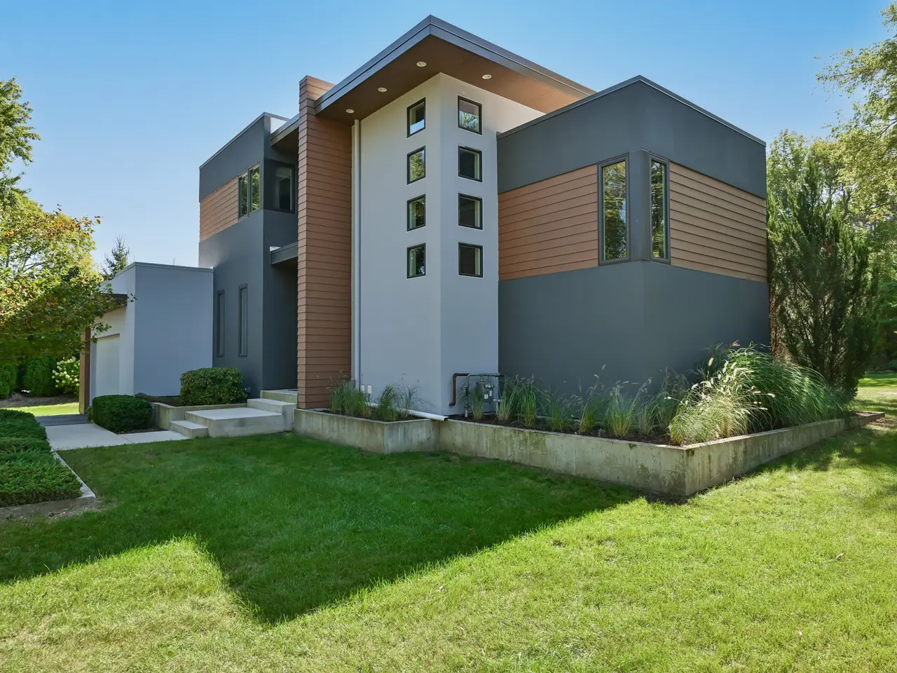 Stunning architectural jewel boasts quality, clean lines and sleek award winning design. Thoughtful details, state of the art technology, open floor plan and incredible natural light abound in this custom home. Set on a 1+ acre park like setting and nestled on a quiet cul de sac, this is a peaceful private retreat. Unique features include 2nd floor laundry, 4 car garage that can accommodate car lifts, luxury spa bath in primary with steam shower and amazing walk-in closet. The lower level features a flexible rec space with wet bar and beverage station, full bath and exercise area. Sprawling backyard includes a large fenced garden, mature landscape and spectacular covered deck. A treasure you don't want to miss. A stones throw from Ozaukee Country Club, schools, 1-43 and all southeast Mequon has to offer! A hidden gem!