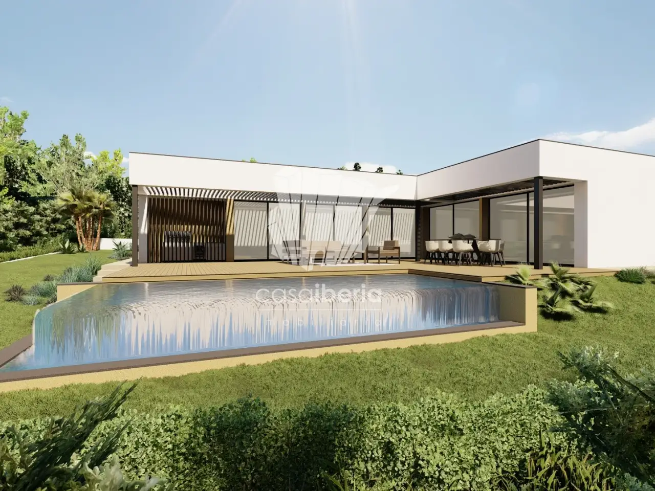 Contemporary Single-Storey Villa Under Construction - Prime Location We are pleased to present a contemporary single-storey villa currently under construction, located in a peaceful residential area near the prestigious Penina Golf, Alvor, and Portimao. Designed to offer comfort and functionality, this property represents an excellent opportunity for both private residence and investment. The villa features three bedrooms, including a spacious master suite with an en-suite bathroom, while the other two bedrooms are served by a full bathroom. The entrance hall leads to a generous open-plan living and dining area, seamlessly connected to a modern, fully equipped kitchen. The kitchen, complete with a practical central island, is perfect for those who value a functional and aesthetically pleasing space. For added convenience, the home also includes a laundry room and a guest WC. Outside, you will find a covered patio with an additional WC, ideal for outdoor activities. The private swimming pool, pre-installed for heating, invites you to enjoy leisure moments all year round. The landscaped garden complements this space, creating a welcoming and relaxing environment that perfectly matches the surrounding tranquility. Located in a prime area, the villa offers proximity to services, shops, and leisure facilities. Just minutes away from the beaches of Alvor and Portimao, as well as the renowned Penina Golf, this property provides the perfect balance between tranquility and accessibility. If you are looking for a home that combines modernity, comfort, and an exceptional location, this villa offers it all and more. Don't miss this opportunity—contact us for further information or to schedule a visit.