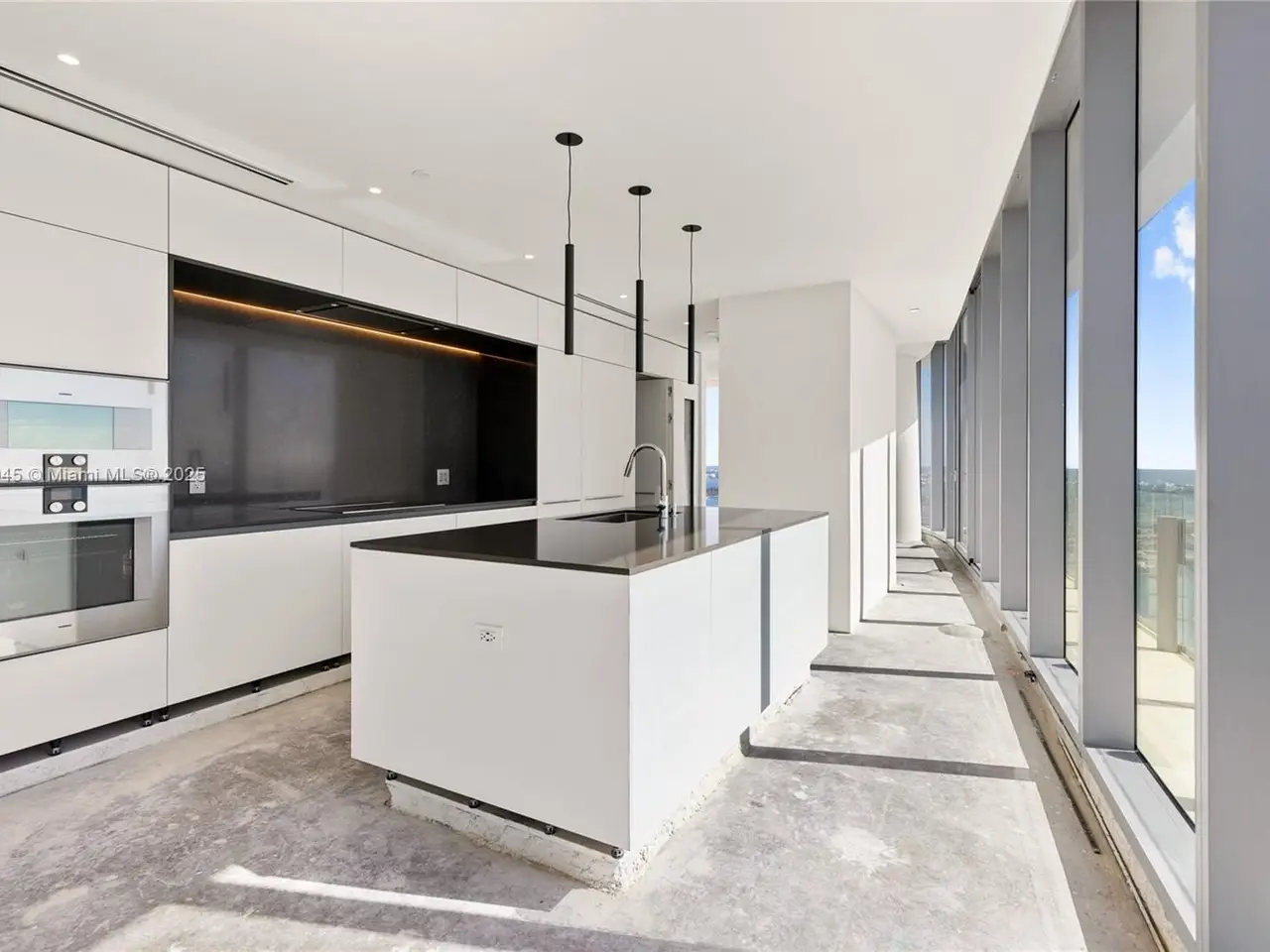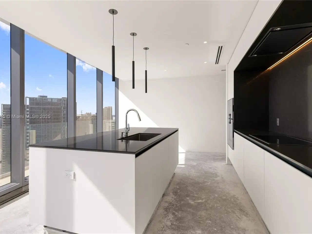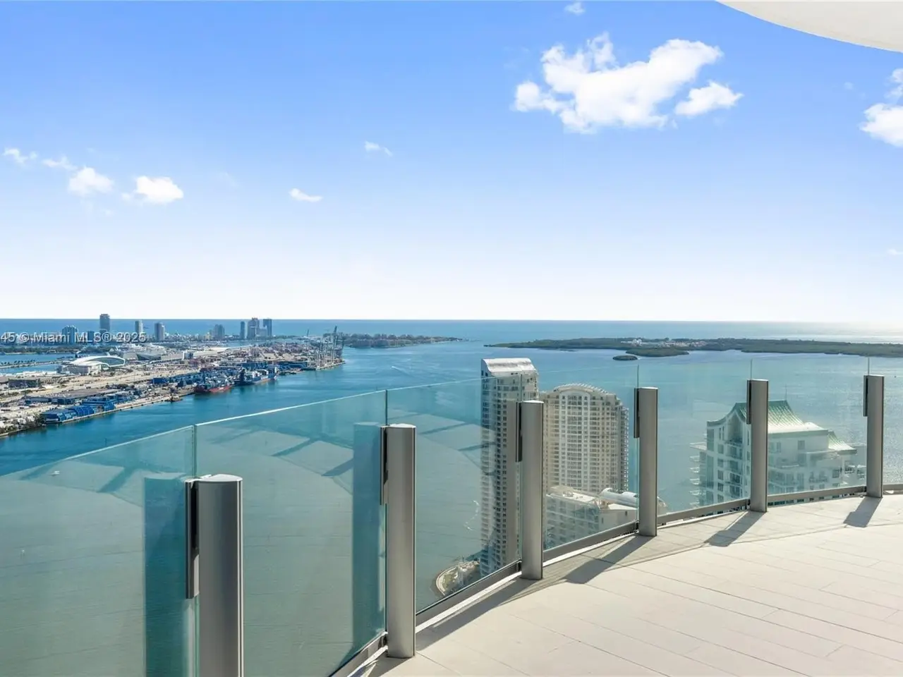 Experience breathtaking sunrises and sunsets from every room in this remarkable penthouse, the crown of the 01 line, offering 360° views of the Miami skyline, Biscayne Bay, and the ocean. With soaring ceilings and wrap-around terraces, the residence captures natural light and promotes effortless indoor-outdoor living. Delivered designer-ready, it offers flexibility with an alternate floor plan for personalized finishes. A gallery-style entry hall welcomes you into the home, ideal for displaying art, while two private elevators open into a secluded vestibule. The sleek Bulthaup kitchen, featuring pristine white cabinetry, anchors the residence in a refined, modern aesthetic that embodies Miami luxury.