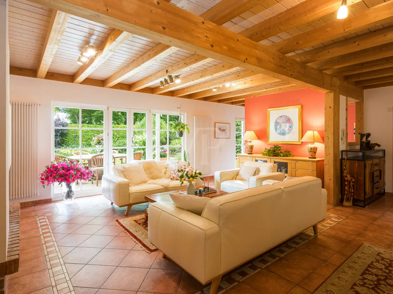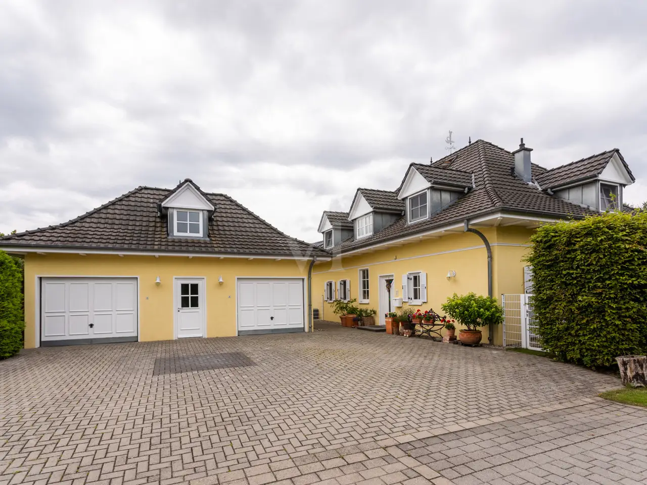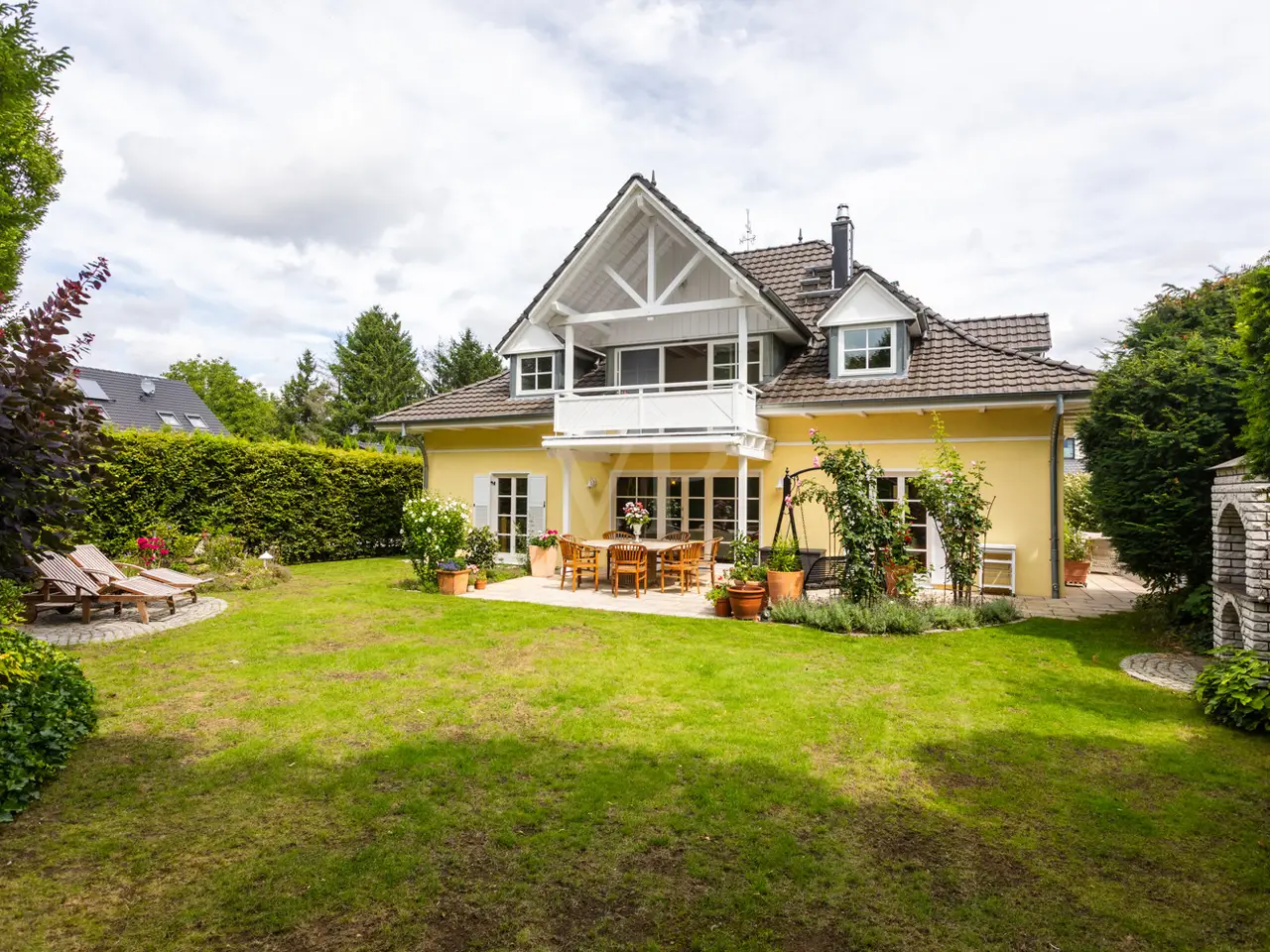 This well-kept detached house from 1995 boasts a spacious layout and a quiet residential area right next to Seddiner See golf club. With a living space of approx. 232.76 m² on a plot of approx. 895 m², the property offers a wide range of options for individual living concepts - ideal for families or couples who value living comfort and privacy. An inviting entrance area awaits you on the first floor, from where you enter the spacious, light-flooded living and dining area. Large windows and direct access to the terrace create a harmonious connection between the indoor and outdoor areas. An awning provides pleasant shade on the main terrace on sunny days. The kitchen is equipped with a fitted kitchen, offers plenty of space for culinary activities and also has access to one of the two terraces. There are a total of six well-proportioned rooms, including four bedrooms spread over two floors. Two bathrooms ensure comfort in everyday life and offer enough space for the whole family. The majority of the windows are fitted with blinds so that light and privacy can be customized. There is also a converted attic, which is currently used as a yoga room. The property also has a spacious balcony, which also covers the large main terrace, as well as a well-tended garden with a brick-built barbecue, perfect for socializing with family and friends. There are two garages for the vehicle fleet in the separate outbuilding, which also offers storage space for garden tools, bicycles and other utensils. Thanks to the well thought-out layout, there is enough space for every member of the family - even if you need more space. The location impresses with absolute tranquillity in the midst of natural surroundings. The proximity to the renowned Seddiner See golf club is a particular highlight for golf enthusiasts. At the same time, shopping facilities, schools and other everyday amenities are within easy reach. This detached house combines high-quality living with practical furnishings and an idyllic location and can be occupied at short notice. See for yourself during a viewing - we look forward to hearing from you.