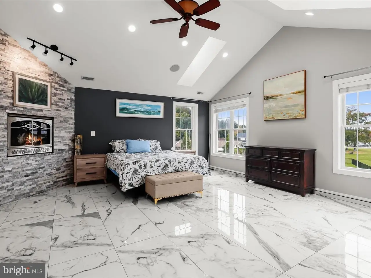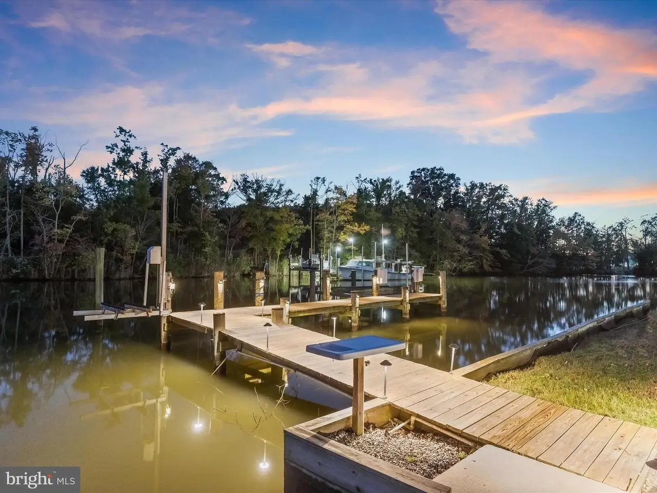 Welcome to your private waterfront retreat, an extraordinary estate set on over 20 acres of beautifully landscaped grounds and over 800 feet of waterfront, offering a harmonious blend of elegance, comfort, and resort-style living. Mature trees frame the property's serene setting, complete with water access, a private dock with two boat slips, a 10,000 lb lift, a jetski lift, and captivating outdoor amenities, including a custom pavilion, a goldfish pond, a patio, a circular driveway with two electric charging stations, and a fire pit. The in-ground pool features a waterfall and a covered patio with electric outlets, creating an entertainer's paradise perfect for gatherings of all sizes. The inviting semi-wraparound porch leads into a grand foyer adorned with heated porcelain tile flooring that continues throughout the main level, with individual climate controls for personalized comfort. The living room impresses with soaring ceilings, crown molding, recessed lighting, and a granite-surround wood-burning fireplace that frames spectacular panoramic views. The formal dining area exudes sophistication with box wainscoting, medallion ceiling accents, brass fixtures, and access to the expansive new composite deck. A chef's kitchen stands at the heart of the home, equipped with industrial-grade Monogram stainless steel appliances, double ovens, a center island with breakfast bar, custom 42""Â? cabinetry, granite counters, and soft-close drawers, all complemented by a convenient mudroom. The guest wing offers privacy and comfort with a full bath, a bedroom with a walk-in closet, and access to an oversized three-car garage with a loft for storage or recreation. The family/game room offers the ultimate leisure space, featuring a billiards area, a wet bar with a beverage cooler and ice machine, crown molding, soaring ceilings, a powder room, surround sound, and direct access to the front porch. The primary suite is a true sanctuary featuring a cathedral ceiling, stone gas fireplace, skylights, heated porcelain tile flooring, double walk-in closets, an electric fireplace, a private balcony, and a spa-inspired en suite with dual vanities, lighted mirrors, a soaking tub with scenic views, and a steam shower with triple shower heads. Three additional bedroom suites each offer their own charm with walk-in closets, custom built-ins, and designer finishes. The fully finished lower level expands the living space with a private wine room, a large recreation area with a stone wall fireplace, a kitchenette with a breakfast bar and a built-in microwave, a full bath, a bedroom, and a second laundry area. An additional bedroom suite features luxury flooring, a custom walk-in closet, and a breathtaking en suite with a freestanding tub, walk-in shower, hexagon tile accents, and a double vanity with illuminated mirrors. A rare combination of craftsmanship, privacy, and luxury, this exceptional property offers a lifestyle beyond compare, with easy access to major commuter routes, including I-695 and I-95. Updates: New Composite Deck 2025, Extensive Hardscape with pond, retaining walls, and spill overs 2023, New Driveway with Landscaping and lights 2021, 2-Car Charging Stations 2021, Exterior House painted 2025, Radiant Tile flooring throughout with independent controls 2021, New gutter system 2024, Water Filtration system 2021, House generator 2023, Loft above the garage 2023, New Primary bath with steam shower and fireplace 2022, New secondary bath 2023, Updated lower-level bath 2022, Upstairs Laundry room 2022, Lower Level Laundry room 2022, New Kitchen refrigerator