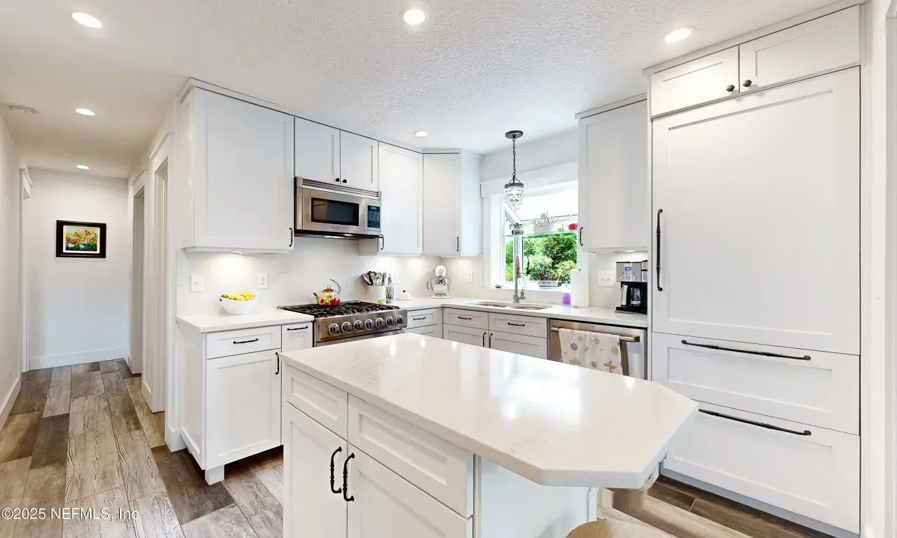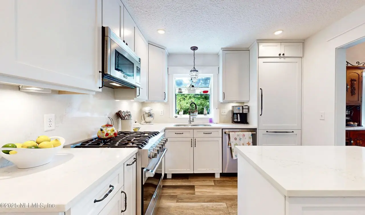 Serene Waterfront Living on Peaceful South Prong of Black Creek Welcome to your tranquil retreat nestled along the quiet, scenic shores of Black Creek. This beautifully appointed 3-bedroom, 2.5 bathroom home offers the perfect blend of comfort, functionality, and outdoor enjoyment. Enjoy the convenience of a 2.5 car garage, golf cart garage, and carport, providing ample space for vehicles, toys, and tools. Step inside from your stairs or exterior elevator to find quartz countertops, a Viking Dual Fuel convection range, Sub Zero built in refrigerator, Viking convection microwave, GE Cafe' Dish Washer, custom cabinets, and a cozy fireplace, creating a warm, inviting atmosphere perfect for everyday living and entertaining. Outdoors, this property is a dream come true for water lovers and entertainers alike. Relax or host gatherings in the screened-in entertainment area complete with an outdoor kitchen and sweeping waterfront views. Boaters will appreciate the private dock, 30' by 12' boathouse with lift, and bulkhead, offering direct access to the peaceful waters of Black Creek. The home is built above the flood zone elevation. The carport is 10 feet high, the garage has an attic storage area on the second level. Aerator, hot water heater, heat pumps are raised above the flood zone elevation as well. The lot is equipped with a 6 zone sprinkler system, over sized driveway, and across Black Creek the view is stunning with nature and wildlife frequenting the Creek. It is directly across from the Old Ravines Golf Course which has been closed for several years. This home is tucked away in a quiet, established neighborhood. It is on a dead end road so traffic is almost non-existent.