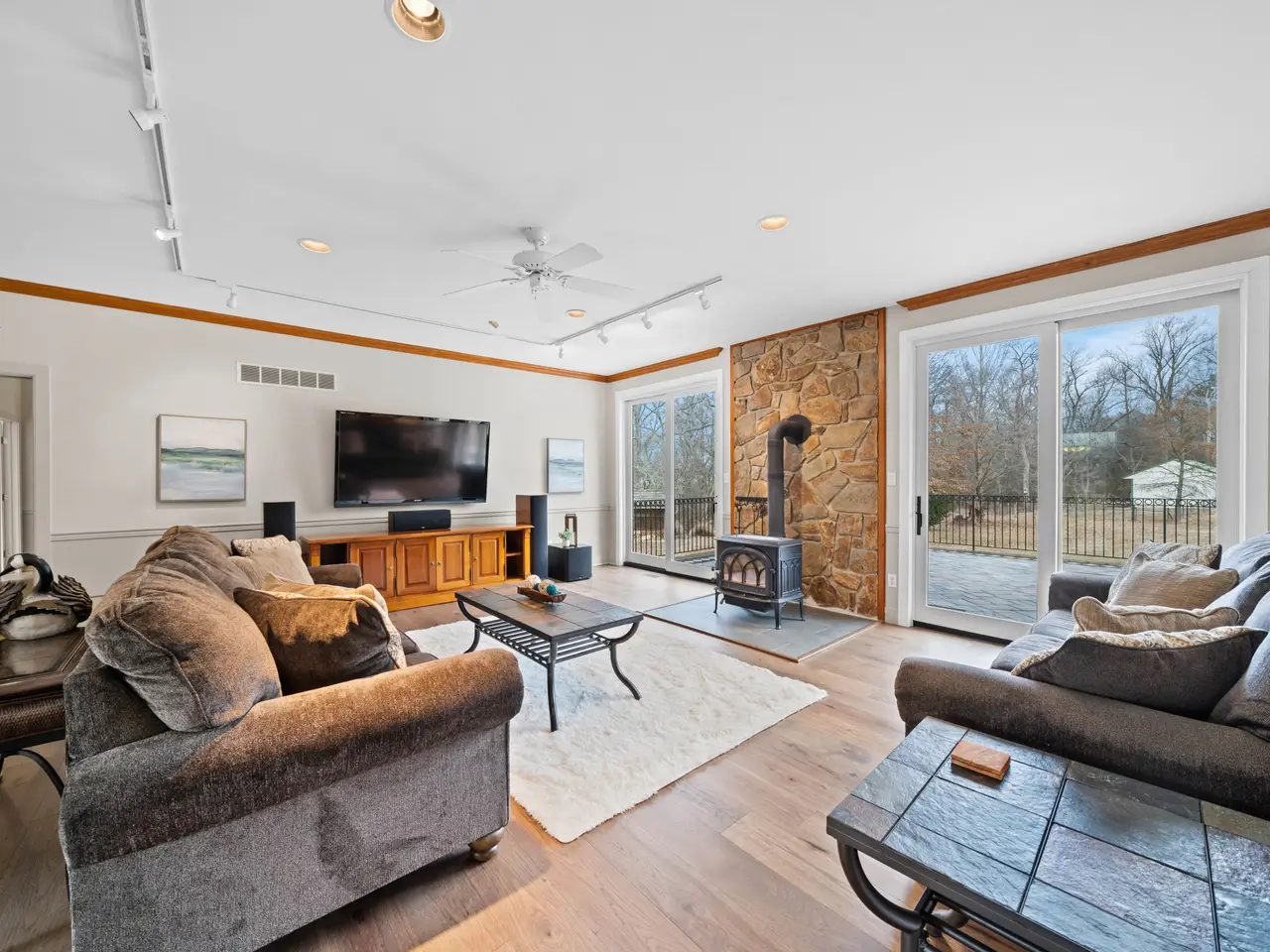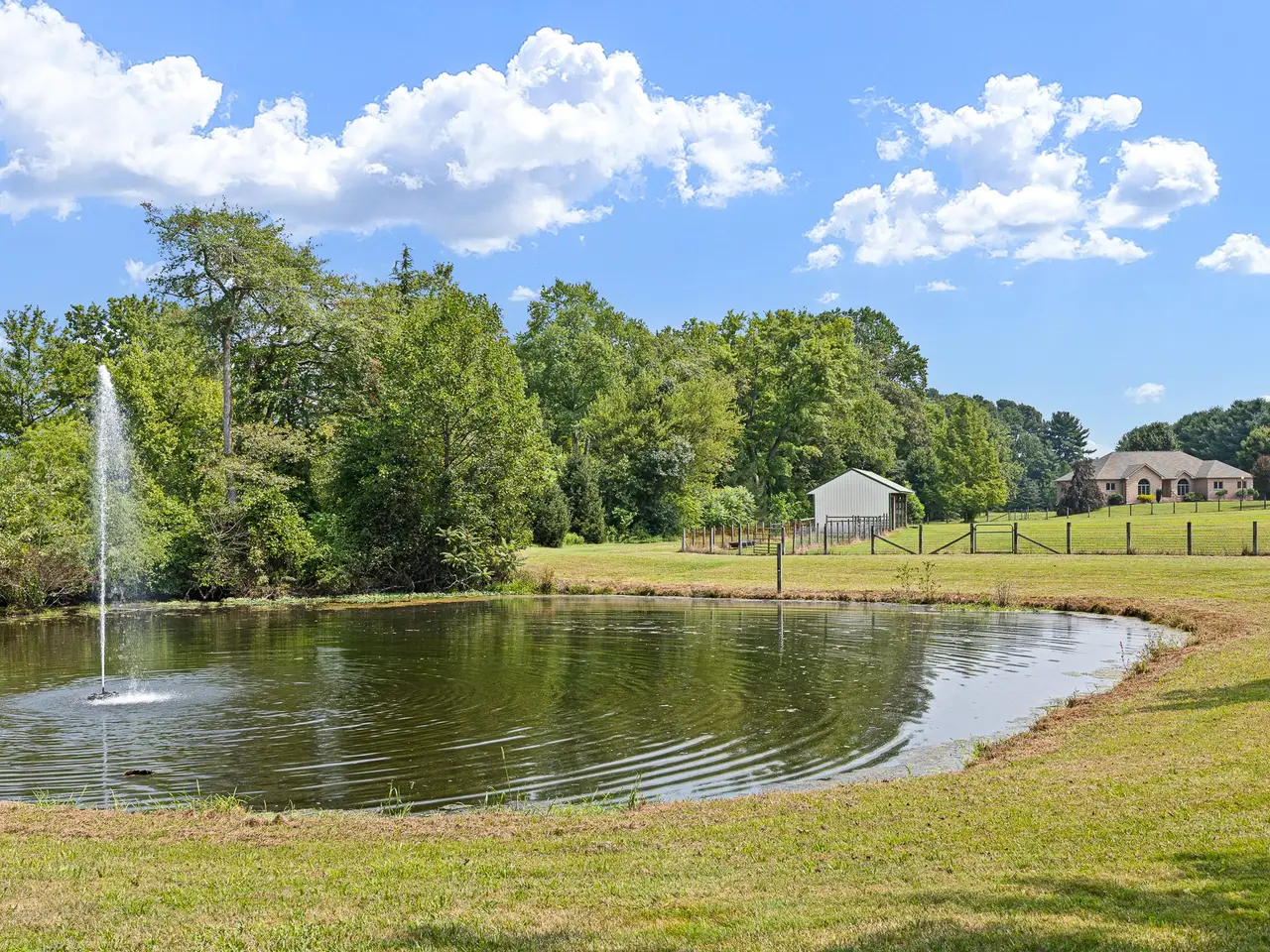Welcome to Windmere Farm – a stunning country estate situated on 14.21 acres, recently enhanced with over $135,000 in updates. This custom, all-brick ranch blends comfortable living with casual luxury, offering features that go well beyond the ordinary. As you enter the spacious foyer, your eye is immediately drawn to the family room and the expansive views beyond, visible through two tall sliders leading to the patio and backyard. To the right, the open dining area offers another slider for seamless indoor-outdoor living. The chef’s kitchen is a true showpiece, equipped with: 6-burner Viking gas range with two ovens (one gas, one convection); Sub-Zero refrigerator/freezer; two Bosch dishwashers; under-counter ice maker; and custom hickory cabinetry with soft-close drawers and under-cabinet lighting. Just off the family room is a charming library, featuring custom cherry built-ins and a large arched window. It can be closed off with pocket doors for privacy. Beyond the library, glass French doors open to a large flex room—ideal for a second office, playroom, or studio—which also connects to the kitchen. On the opposite wing, a pocket door leads to the bedroom quarters. The primary suite boasts a triple arched window, a spacious en-suite bath with updated fixtures and lighting, and a large walk-in closet. Two additional bedrooms share a beautifully updated hall bath. The fully finished lower level—with walk-out access to the hot tub - features new LVP flooring, a private office space, and a mini-split system for year-round comfort. Step outside the family room to a large patio with custom wrought iron railings and Cambridge pavers. Across from the kitchen is the four-car, all-brick garage, complete with: tile flooring; EV charging station; wall-mounted vacuum system; gas heat and full insulation. For additional space, a 42' x 60' insulated pole barn with heat, A/C, water, and electric sits nearby. The property also includes: fenced pasture with run-in shed (currently home to Teddi, the llama); backyard cedar woodshed; heated/cooled kennel with auto-fill water station and two garage bays; and 8 water hydrants throughout the property. Recent updates include: roof (5 years old); Marvin Ultimate windows & sliders (new); engineered hardwood flooring; full interior repaint (2024); septic inspection & repairs (2024). Windmere Farm offers peace and quiet, with horses as your neighbors, while being just minutes from restaurants, shops, and all that Middletown has to offer. The home is not visible from the street—showings are by appointment only. Call Renée with any questions.