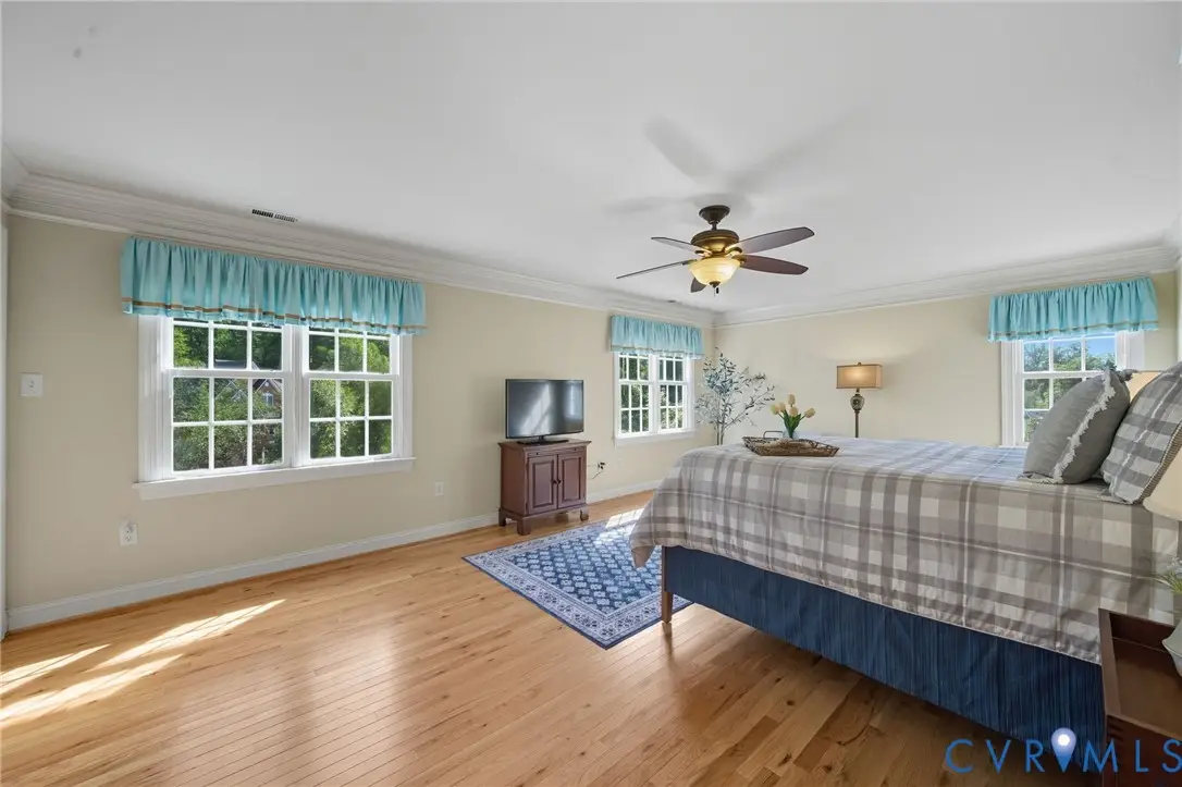 Wonderful opportunity in the highly desired neighborhood of Rosemont! This beautifully maintained 5-bedroom, 4.5 bathroom home has been lovingly cared for by its original owner. From the moment you pull into the driveway, it feels like home with its grand manor roof, covered front porch, and professionally landscaped yard on almost an acre lot. Step into the spacious foyer and you’ll immediately notice the 17-foot ceiling! Elegant three member crown molding through out the first floor and primary bedroom and gleaming hardwood floors that flow throughout. The family room is perfect for relaxing, featuring surround sound and a cozy gas fireplace. The kitchen is truly the heart of the home, filled with natural light and designed for both cooking and gathering. It boasts granite countertops, a large island, gas range, and abundant cabinetry. Upstairs you’ll find four bedrooms and three full bathrooms. The primary suite offers an expansive walk-in closet, a spa-like retreat with a jetted tub, updated shower, dual vanities and a double linen closet. Three of the bedrooms feature hardwood floors and spacious walk-in closets, while one has carpet and a charming window chest. The walk-out basement, backyard faces quiet cul-de-sac is ideal for entertaining or hosting guests, complete with a large recreation room, second gas fireplace, full bathroom, and additional bedroom. Enjoy the outdoors on your choice of spaces: the covered patio or the screened-in porch with skylights, added within the last five years. Don't miss the attached shed with concrete floor for storing tools and mower, plus a MOEN Master Water Shutoff system in the crawlspace that can be controlled via app. Storage is never an issue with the enormous easy access walk-up attic with 4ft wide stairs, perfect for keeping things organized or even finishing for additional living space. Don’t miss this rare chance to own a home with so much to offer in one of Rosemont’s most desirable neighborhoods!