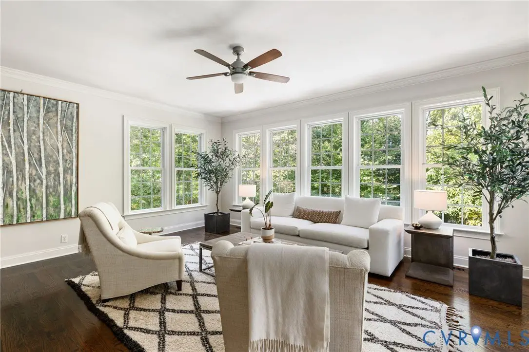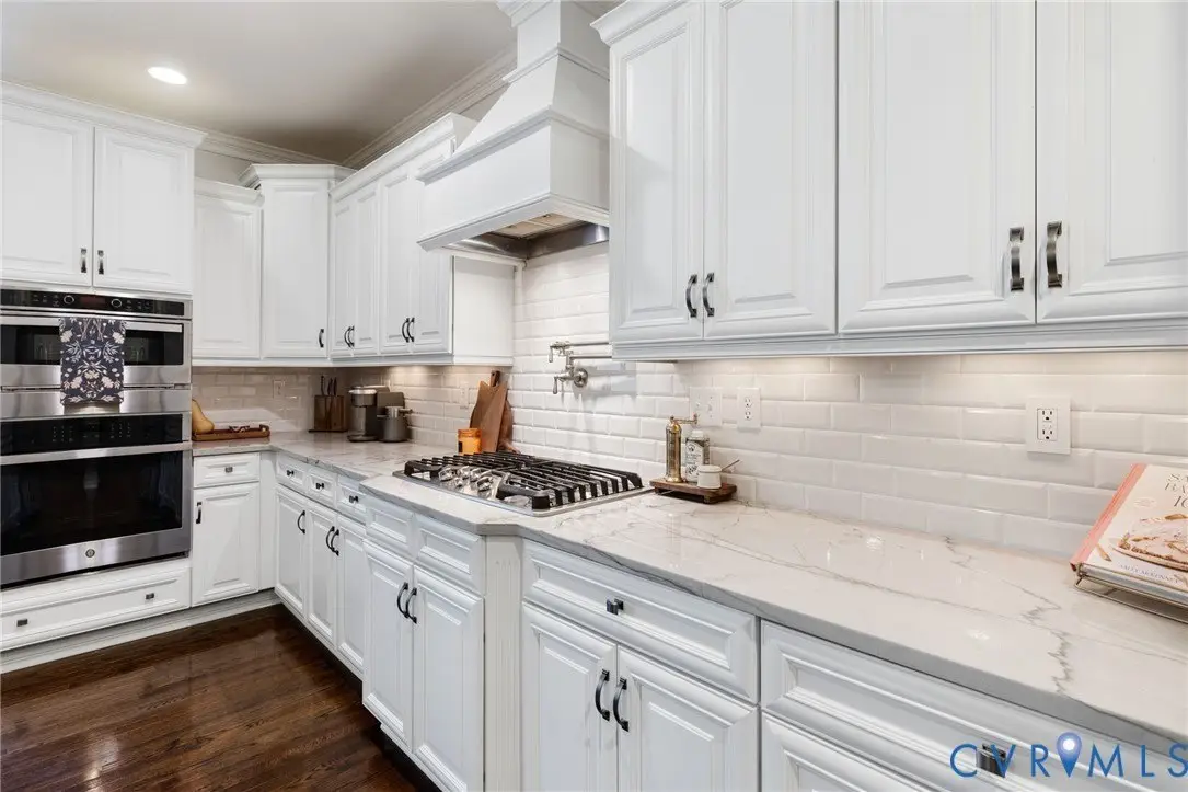 Stunning Luxury Home in Sought-After River Downs Community! Welcome to this exquisite 5-bedroom, 3 full and 2 half bath home showcasing over 5,200 sq ft of beautifully designed living space. Home offers the perfect blend of elegance, comfort, and outdoor resort-style living. Step into the bright and inviting foyer, accented with double crown molding, gleaming HDWD, and plantation shutters. To your left, a private home office with a Palladian window provides the ideal work-from-home setting, while the formal dining room on the opposite side impresses with picture frame molding and timeless details. The 1st-floor primary suite is a true retreat, featuring vaulted ceilings, an accent wall, hardwood floors & WIC. The spa-inspired en suite bath showcases dual quartz vanities, a custom-tiled shower, and a freestanding soaking tub. The heart of the home is the expansive family room, centered around a double-sided stone fireplace that opens to a cozy additional living area, perfect for relaxing or entertaining. The gourmet kitchen is a chef's dream, offering quartz counters, large center island, tile backsplash, under-cabinet lighting, gas cooking, wall oven & walk-in pantry. The adjoining butler's pantry with a wine fridge, wet bar, and custom cabinetry makes entertaining effortless. Upstairs, find 4 spacious BRs, each with HDWD, generous closets & two Jack-and-Jill BAs. The finished third floor provides an incredible recreation room complete with skylights, recessed lighting, built-in storage, reading nook & 1/2 BA, perfect for a playroom, media space, or private retreat. Step outside to your own backyard paradise. Covered patio overlooks a sparkling in ground pool, stone fireplace, and pergola, an entertainer's dream & the ultimate spot to unwind after a long day. This exceptional home combines timeless craftsmanship, modern luxury & an unbeatable location close to shopping, dining, and top Chesterfield schools. Come experience this one-of-a-kind property in River Downs, where elegance meets everyday comfort.