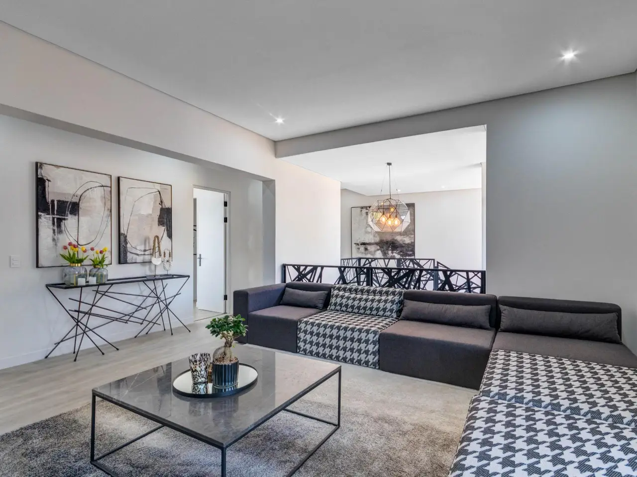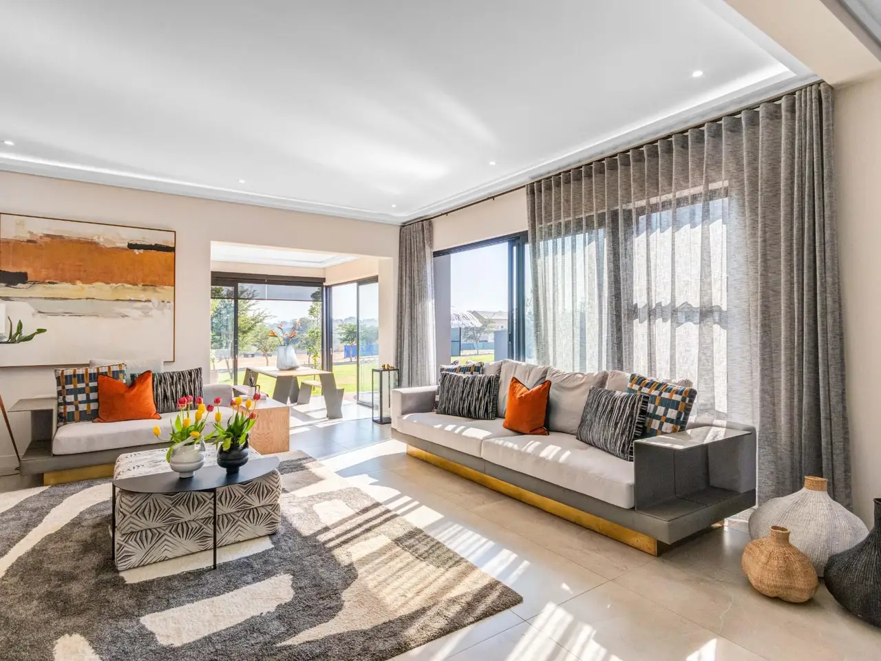 Discover luxurious living in this modern 4-bedroom home nestled in the prestigious Helderfontein Estate. Designed with contemporary elegance, the open-plan kitchen features built-in ovens, a 5-hob gas stove, and a scullery with space for three appliances. The kitchen seamlessly flows into the spacious lounge and dining area, creating a perfect setting for family gatherings and entertaining. The scullery leads to a triple garage and versatile staff quarters, which can also serve as a fifth bedroom with private access, maintaining the home's cohesive aesthetic. Enjoy an indoor-outdoor lifestyle with the home's expansive patio, an extension of the living space that includes a built-in braai, making it an ideal spot for relaxed evenings and social events. The lush garden and inviting pool can be accessed from the lounges, dining room, patio, and the downstairs guest bedroom, offering a seamless connection to the outdoors. The downstairs guest suite, complete with an en-suite bathroom and powder room, provides comfort and privacy for visitors. Upstairs, the home features three en-suite bedrooms, each with built-in cupboards and private balconies. The pajama lounge offers a cozy retreat for family relaxation. The master suite is a true sanctuary, boasting breathtaking views, a spacious walk-in closet, and a luxurious bathroom with double basins, a double shower, a bathtub, and a private toilet. This exquisite property also includes a solar system and water heating system, ensuring energy efficiency and sustainability. Live in unmatched comfort and style in this exceptional Helderfontein Estate home. Contact me today for an exclusive tour of this home!!