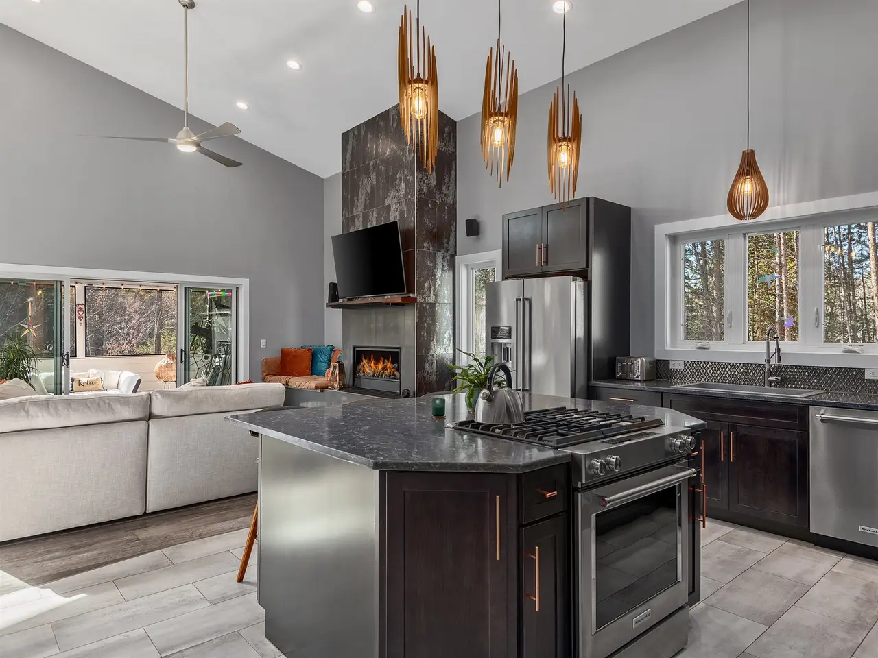 Stylish design with soaring ceilings and African Mahogany accents