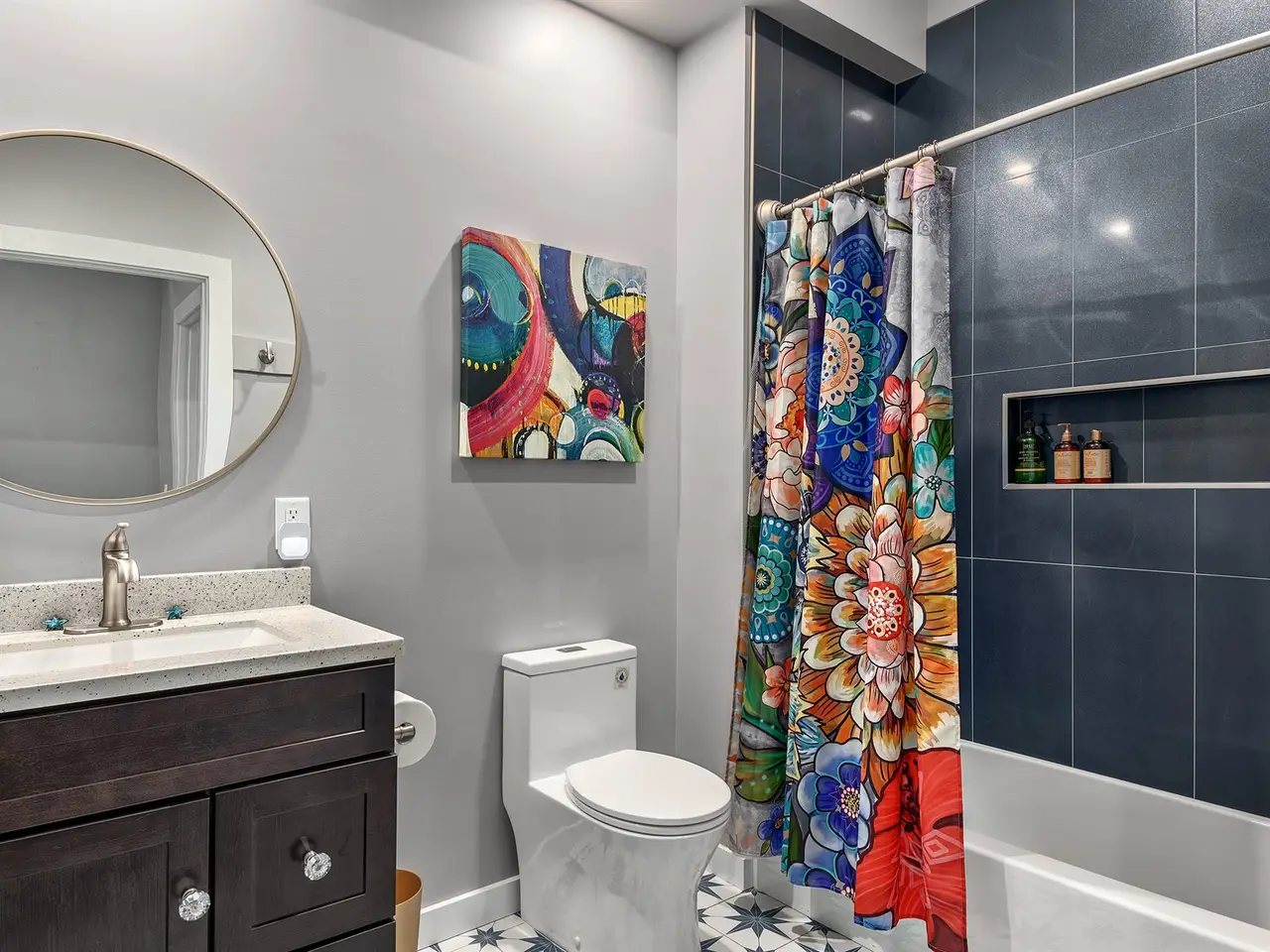 Modern light fixtures throughout