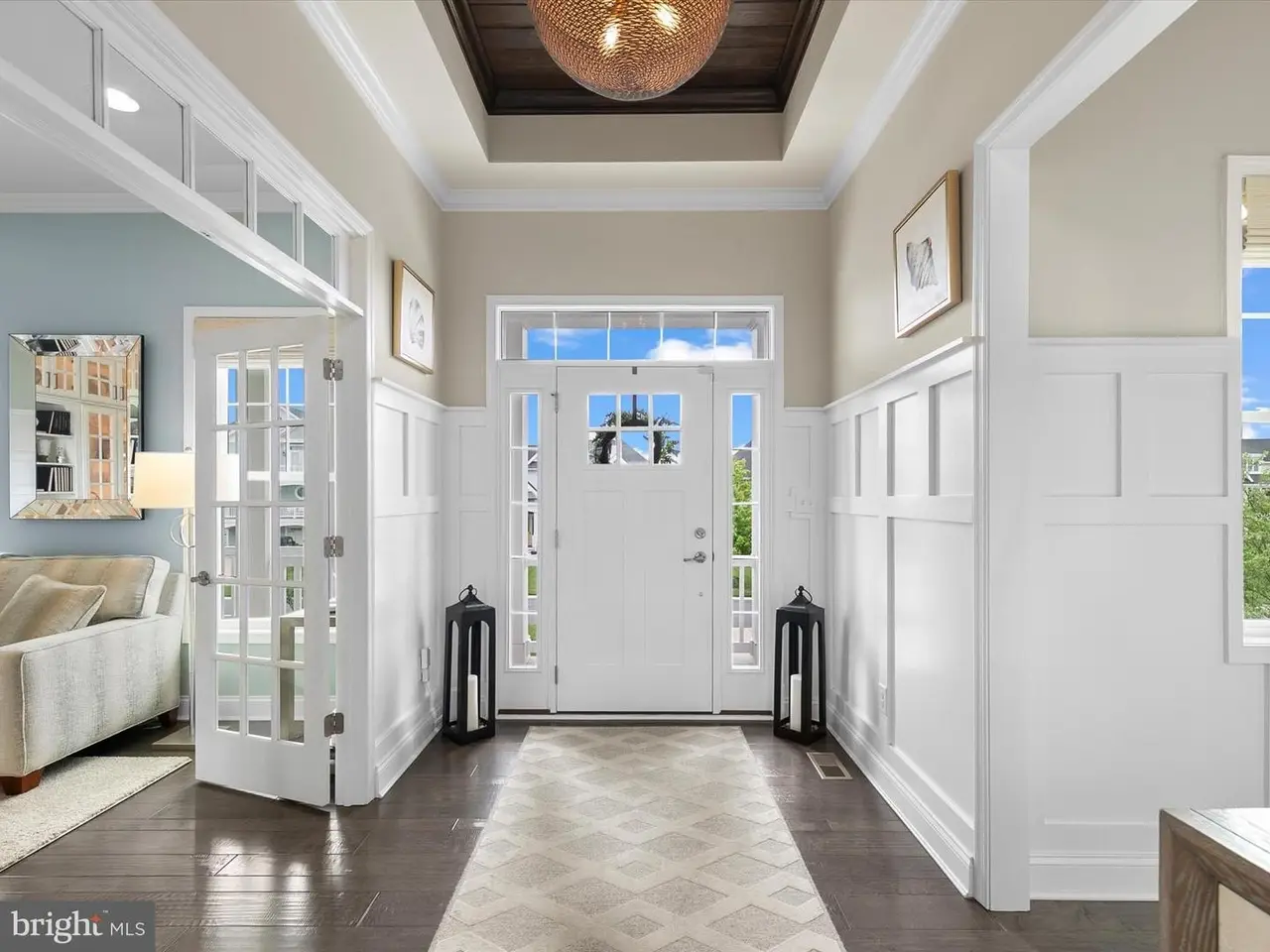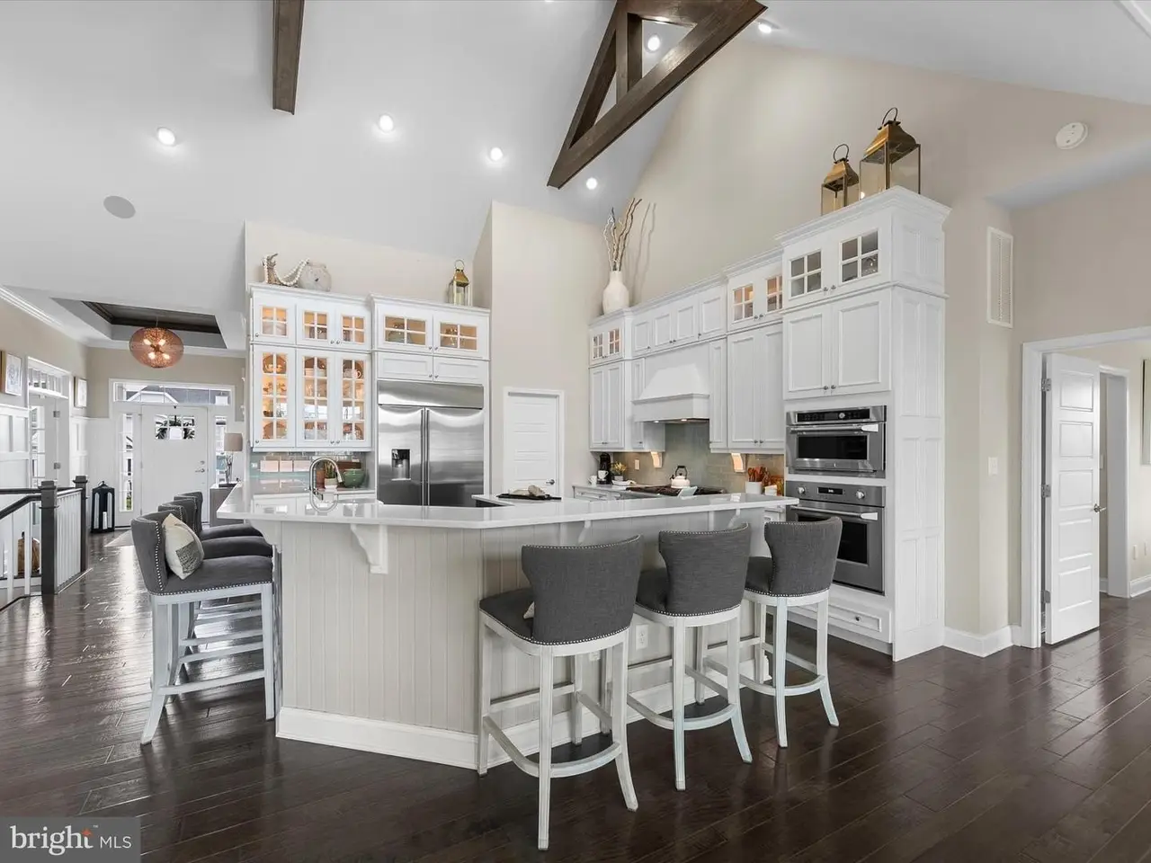 Coastal Elegance Perfected in the Peninsula on Indian River Bay Tucked into one of the most sought-after coastal communities in Delaware, this exquisite residence in the Peninsula on the Indian River Bay offers a lifestyle as elevated as its design. With over 3,000 square feet of luxury living space, three bedrooms, three and a half baths, and sweeping pond views, this home seamlessly blends refined coastal style with thoughtful upgrades at every turn. A premium pond lot sets the tone before you even step inside, with custom landscaping, stone facade accents, and an inviting front porch that whisper of the quality within. Step through the front door and be immediately struck by the craftsmanship, wide-plank, random width, hand-scraped engineered hardwood floors flow throughout the main level, complemented by triple-panel wainscoting, crown moldings, and designer lighting fixtures that lend warmth and sophistication to every space. At the heart of the home, a top-tier chef's kitchen stuns with quartz countertops, a custom center island, and white farmhouse sink framed by a glass tile backsplash and premier cabinetry. An additional wall oven, Advantium oven, under-cabinet lighting, and even a built-in vacuum beneath the sink make this kitchen as functional as it is beautiful. The adjacent dining area was extended during construction, adding space for entertaining and opening to the upper deck through sliding glass doors. A coffered ceiling elevates the dining experience, while a cantilevered gas fireplace with full stone surround anchors the living room with coastal charm. Every detail throughout the home has been curated with an eye for elegance-from the beamed ceiling and dormer beadboard detail in the living room to the tray ceiling with beadboard and crown molding in the foyer. Plantation shutters and custom window treatments throughout lend a cohesive, high-end aesthetic. The main level also features a serene primary suite, thoughtfully positioned for privacy, with additional windows, a tray ceiling with rope lighting and headboard detail, and a luxurious en-suite bath. Frameless shower doors, granite-topped vanities, and premier cabinetry make every morning feel like a spa day. Downstairs, the lower level unfolds into a private retreat ideal for guests or relaxed gatherings. A custom entertainment space includes ambient cabinetry lighting, upgraded carpet, a bar sink and wine fridge, and access to the covered rear porch-enclosed with EZ-Breeze panels and finished in low-maintenance LVP flooring with solar shades for year-round enjoyment. An optional third full bath adds convenience and flexibility. Outdoor living is elevated even further on the covered upper rear deck, complete with a fireplace, built-in grilling and cooking area, and tranquil pond views. Whether sipping your morning coffee or entertaining under the stars, this space is designed to inspire. The three-car garage is a rare find, featuring custom cabinetry, professionally installed epoxy flooring, and an expansive storage and utility room. Even the laundry room received a flooring upgrade, reflecting the meticulous attention to detail found throughout the home. Located within the amenity-rich Peninsula community, you'll enjoy exclusive access to a Jack Nicklaus Signature Golf Course, an indoor and outdoor pool, fitness center, spa, tennis and pickleball courts, miles of walking trails, a private beach, and the iconic clubhouse. With everything from bayfront dining to nature preserves just steps from your door, this is more than a home; it's a gateway to a lifestyle of unmatched coastal luxury.