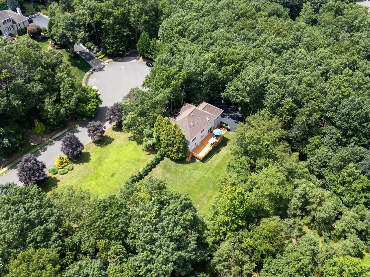 Beautiful full brick front center hall colonial located on a cul-de-sac, private lot, and professionally landscaped. Two story foyer and 9' ceilings on the first floor. Huge kitchen with maple cabinets, center island, and energy saving appliances. Spacious sunken great room with marble gas fireplace. Primary bedroom has sitting area, walk in closet and updated full bath with walk in shower and freestanding tub. All the bedrooms are good size with abundant closet space. Updated main bathroom. Full finished basement with storage area and half bathroom. 44x 13 deck that overlooks the private backyard. Roof replaced 12/2023. All this in a beautiful private development.