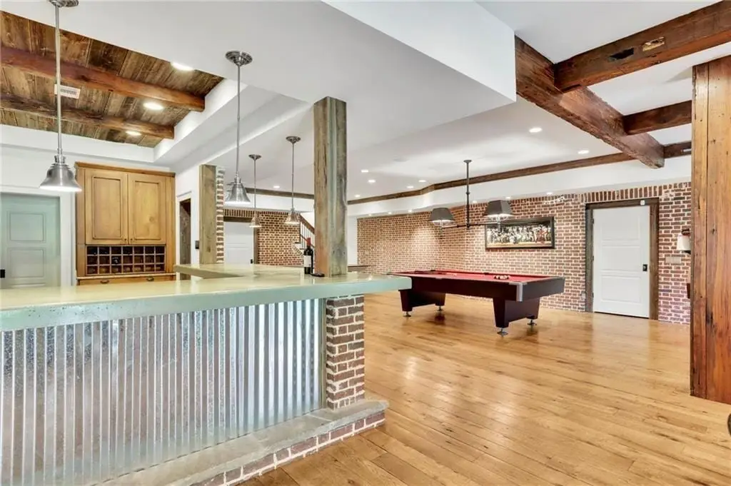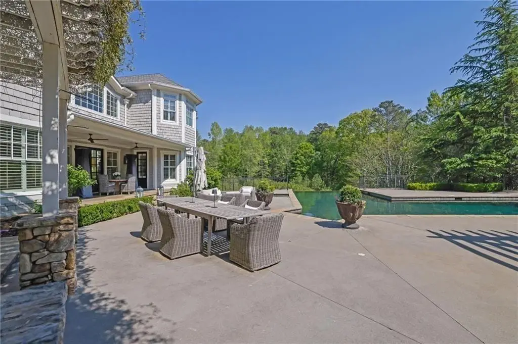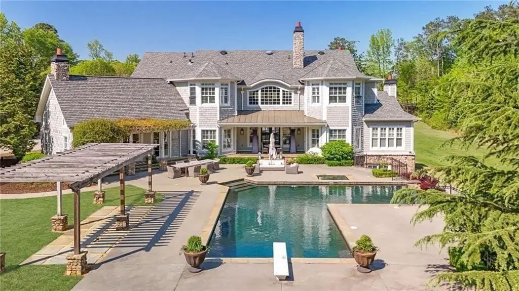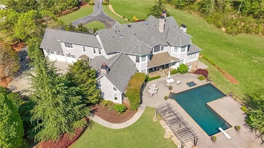 An engaging masterpiece reminiscent of a Hamptons estate awaits on a tranquil 5-acre property, complete with an infinity pool, in coveted close-in Milton. Bordered by a Conservation Easement, the home offers rare privacy and natural beautyjust minutes from Milton, Alpharetta, and Roswell. Inspired architecture and exceptional design create a home that soothes, inspires, and stands apart from the predictable landscape of newer builds. Reclaimed rustic oak flooring and classic millwork grace the expansive foyer, where twin staircases frame a breathtaking view of the two-story fireside living roomworthy of Architectural Digest. An elegant formal dining room and rich office with built-ins and a fireplace make a striking first impression. Light-filled living spaces seamlessly connect to the outdoors, with walls of windows and French doors opening to an exquisite infinity pool and sprawling patio enveloped by lush greenery. The organic blend of stone, wood, and marble brings warmth to the spectacular gourmet kitchen, outfitted with high-end appliances and a large center island ideal for entertaining. A dramatic two-story family room features a stone fireplace and wood-beamed ceiling, awash in natural light. Privately set in its own wing, the stunning main-level primary suite boasts a wooden tray ceilings, a luxurious spa bath with coffee bar, and a versatile bonus spaceperfect for a quiet reading nook or home gym. Upstairs, discover four ensuite bedrooms and a spacious recreation room designed for creativity and play. The terrace level is the ultimate blend of fun and function, with exposed brick walls, a full bar, game room, gym, and an additional guest suite.With elevator access to all three levels, no one misses out on the festivitiesespecially on game day. Rarely is a home of this caliber so conveniently located near the charm of Historic Roswell, Downtown Milton, and Alpharetta. Retreat to this architectural gem where casual sophistication meets the best of Metro Atlanta livingclose to award-winning schools, premier shopping, and top-tier dining.Love Where You Live. Experience the Best of Both Worlds.
