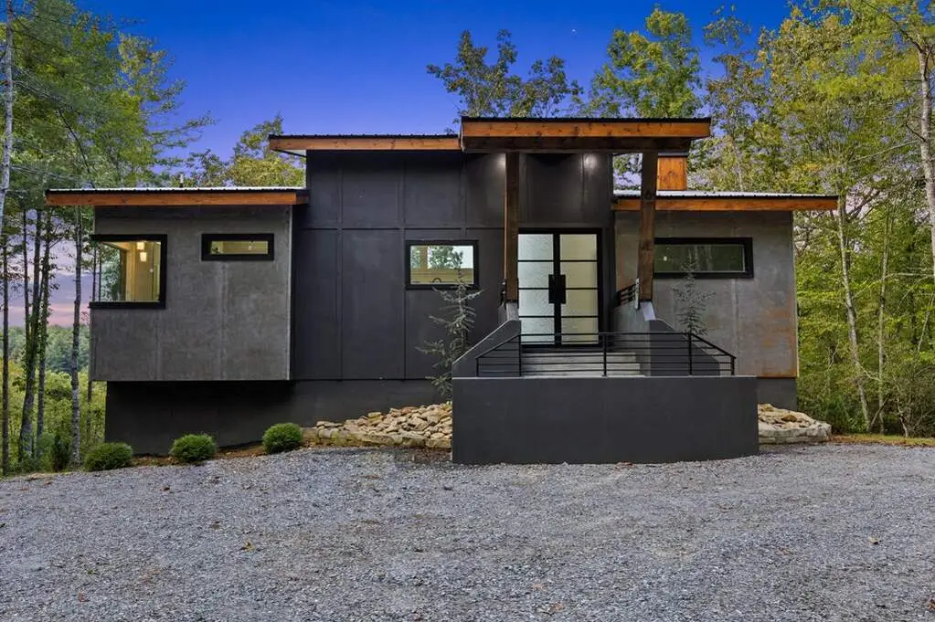 Modern Mountain Luxury Home with Panoramic Long-Range Views This 4-bedroom, 3-bath contemporary retreat blends modern mountain living with high-end luxury and investment potential. Perched high to capture breathtaking long-range mountain views, it offers style, comfort, and flexibility for vacation rental, short-term rental, or full-time residence. The open-concept design showcases a striking mix of metal, steel, and concrete accents, soaring ceilings, and expansive walls of glass that flood the interiors with natural light while framing the scenery. The gourmet chef's kitchen features high-end appliances, custom cabinetry, and dramatic granite waterfall countertops designed for both everyday cooking and entertaining. A luxury wine closet stores and displays your collection with elegance. Two oversized levels of outdoor decks extend the living space, creating seamless indoor-outdoor flow for alfresco dining, entertaining, or relaxing while taking in the views. Primary and guest suites offer privacy and spa-like baths. Located just minutes from Blue Ridge, Ellijay, and the Ocoee River, this home combines architectural excellence, panoramic vistas, and strong rental potential into one turn-key modern mountain retreat perfectly suited for discerning buyers looking for a statement property in the North Georgia mountains.