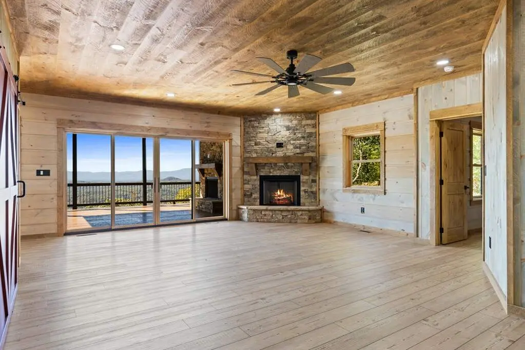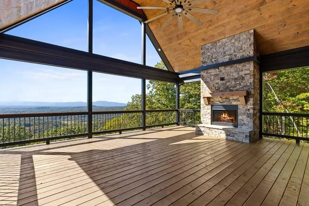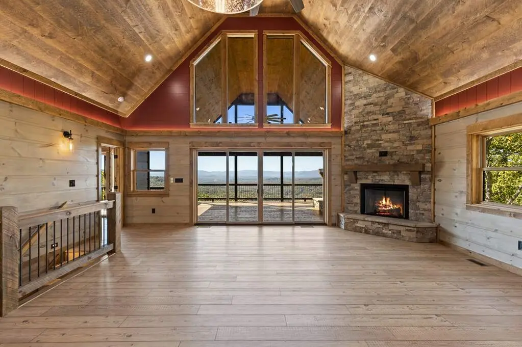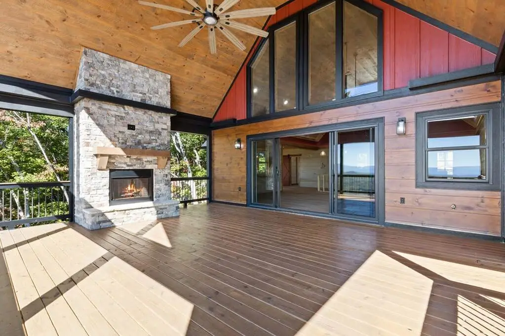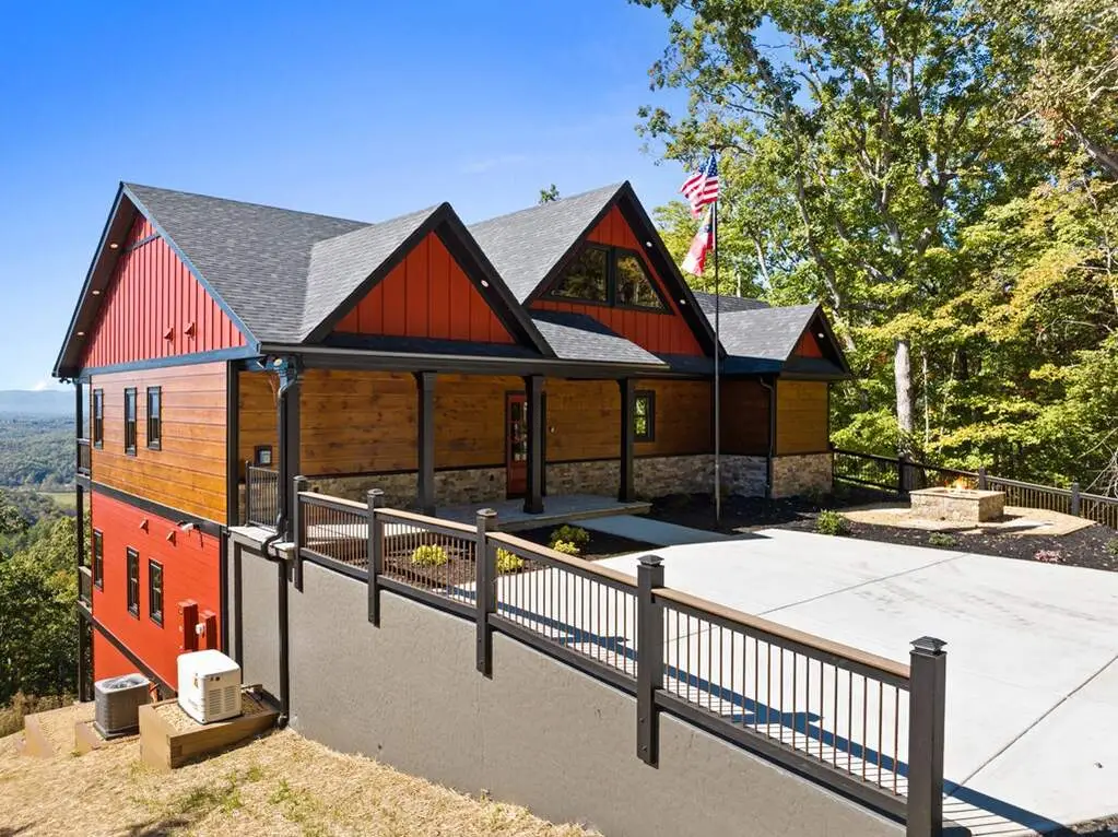 ITS ALL ABOUT THE VIEW...and QUALITY! Easily accessible on all paved roads, this stunning mountain retreat offers 180 degree long range YEAR ROUND mountain views. Thoughtfully designed throughout. 3 KING SIZED bedrooms, each with full bath, plus 2 half baths, this property blends rustic charm with modern efficiency. The master suite on the main level provides comfort and privacy while multiple decks and four fireplaces -including an inviting fire pit with concrete seating pads create the perfect spaces for relaxation or entertaining. Beautiful professional landscaping enhances the outdoor experience. Built with the latest technology and for peace of mind, the home includes a concrete driveway, 22kw whole house generator, 7.2 battery backup, prewired EV charging outlet, solar ready connections, along with portable and essential circuit generator hookups. Enjoy an included 20k appliance package, LED soffit lighting, washer/dryer and additional enclosed storage under terrace level. The low maintenance exterior with all clad windows/doors ensures lasting beauty with minimal upkeep. Conveniently located, this property is the ultimate in mountain serenity, modern preparedness and enduring quality- a true have for those who appreciate comfort , views, and adventure.