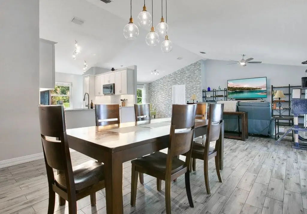 Discover your dream home in the heart of Minneola! This stunning property at 17927 E. Apshawa Rd offers the perfect blend of modern comfort and serene surroundings. Nestled on a peaceful backroad, this completely updated home (see attached update list) boasts a spacious 3 bedrooms, 2 bathrooms, open concept living area, updated kitchen with black stainless steel appliances, a beautiful pool on 5+ acres with additional shared access to recreation and a dock on the private lake. With 1,719 sq ft of beautifully designed living space, this home is ideal for families, entertainers, or anyone seeking a tranquil escape. The property features an unattached apartment, a large pool that was installed with a salt filtration and waterfall in 2020, a large deck for entertaining with a screened enclosure, there are tile floors and vaulted ceilings throughout, new light fixtures and paint, walk-in closets in all the bedrooms with ample storage, the kitchen has soft closed cabinets with crown molding, under cabinet lighting and Quartz countertops and the Primary bathroom has a spa-like feel with walk-in shower, oversized tub, dual sinks and door leading to the pool, and is move-in ready for your next chapter. Enjoy the sunsets and sandhill cranes on this spectacular property. Don't miss this opportunity to own a slice of paradise in Minneola! Schedule a private tour today and experience the charm of 17927 E. Apshawa Rd for yourself. The Apshawa Groves area is off the beaten path, emphasizing seclusion and natural beauty, which makes it ideal for those seeking a quiet retreat. However, its proximity to Highway 27 and Clermont ensures that urban conveniences are never far away. The combination of lakeside activities, community events, and easy access to shopping, dining, and schools makes this location highly desirable for families, retirees, or anyone looking for a balanced lifestyle. Enjoy the best of Florida living with Outdoor Recreation and Natural Beauty: Lake Minneola (approx. 4-5 miles away), Lake Louisa State Park (approx. 10-13 miles), Minneola Trailhead Park (approx. 4 miles), Downtown Clermont restaurants and Breweries, shopping. Turnpike access at N. Hancock road is less than 10 minutes away. Top rated schools. Hospitals within 10 minutes away. New siding coming for the ADU.