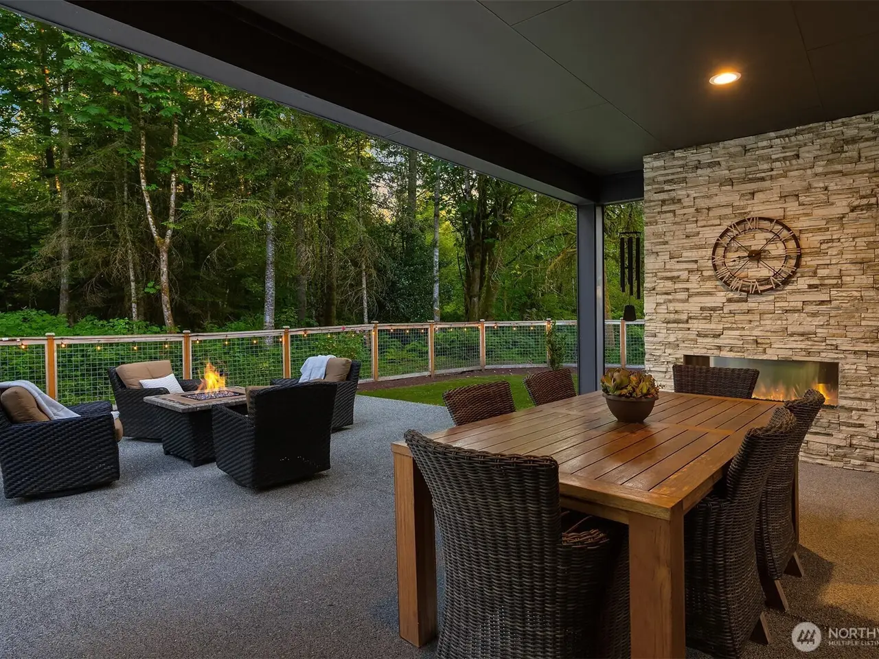 Tucked away in a private enclave, this stunning retreat sits on 1.25 acres - offering room to dream. Built just two years ago with high-end finishes, gorgeous hardwoods, and top-tier appliances, every detail is stunning. Thoughtful floorplan features an impressive great room with a floor to ceiling fireplace, spacious main-floor primary suite with a 5-piece spa bath and a junior suite, plus three additional bedrooms and a large bonus room upstairs. Soaring ceilings, designer lighting, and a gourmet kitchen create an open, airy vibe. Great room flows effortlessly out to the covered patio with fireplace - perfect for year-round enjoyment. With total privacy, level fenced yard, and space to relax, this home offers the best of Northwest living.