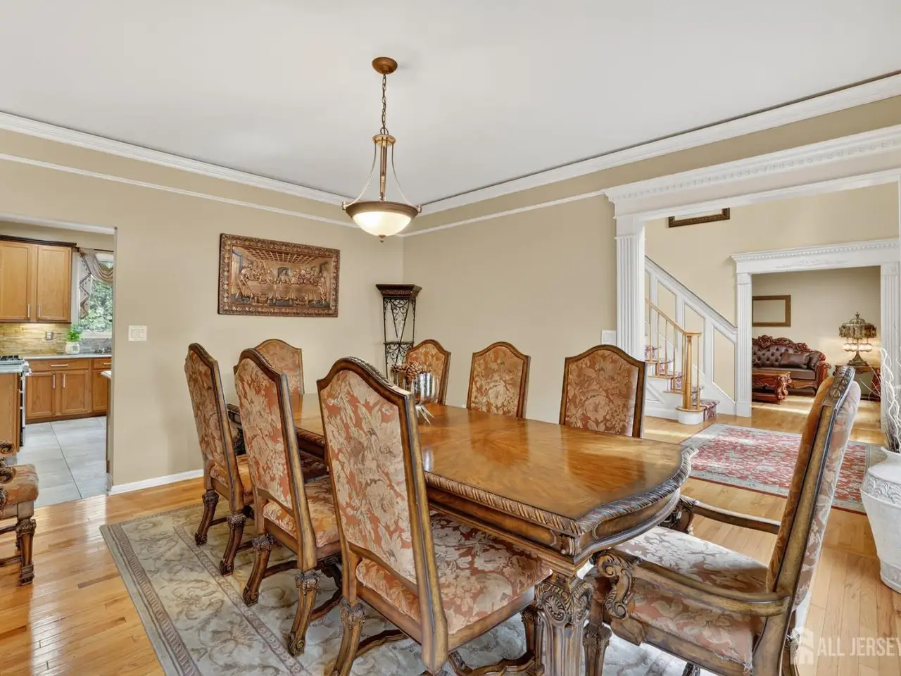 Nestled in a tranquil neighborhood, this elegant colonial home showcases five generously sized bedrooms and 2.5 bathsincluding a versatile first-floor guest bedroom. At the heart of the home lies a stunning gourmet kitchen, complete with marble countertops, a center island with built-in wine rack, pendant lighting, and sleek stainless steel appliances. The kitchen opens seamlessly into a sun-drenched family room anchored by a cozy gas fireplace, creating the perfect space for everyday living and entertaining. Rich hardwood floors span both levels, complemented by custom moldings that frame the dramatic 16-foot foyer and staircase. Throughout the home, extensive mood lighting and recessed fixtures create a warm, inviting ambiance in every room. Additional highlights include a central vacuum system, a beautifully landscaped backyard with a paver patio and gazebo ideal for outdoor gatherings, and an underground sprinkler system for effortless maintenance. This move-in ready residence blends timeless charm with modern upgrades offering comfort, style, and convenience for today's lifestyle.