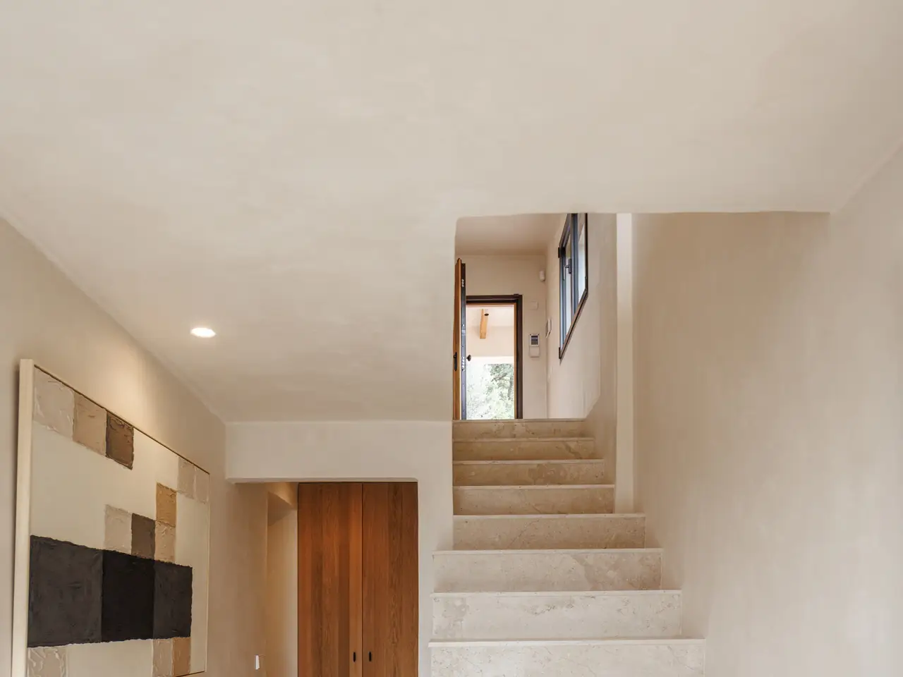 Villa located just a few minutes from the center of Jávea, beaches, and all kinds of services. Upon entering the plot, we find a covered parking area (with charging for electric cars). Through a beautiful door, we access the main living area, featuring a spacious living-dining room with a fireplace and access to the terrace, a fully equipped kitchen, 2 bedrooms, and 2 bathrooms. The lower floor consists of 2 bedrooms with en-suite bathrooms and walk-in closets, a guest toilet, and a storage area. The fantastic outdoor area stands out, with spacious terraces, a heated infinity pool with a cover, a fully equipped barbecue, and a chill-out area. Additional features include ducted air conditioning, natural stone floors, a fully equipped laundry room, central heating, ceiling fans in the bedrooms, and an alarm system.