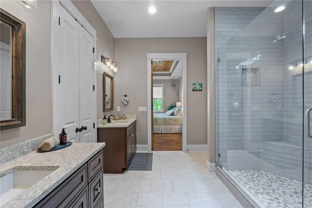 Custom-Built Luxury & Unmatched Value in The Peninsula at Jackson Lake! Why build when you can own this nearly new, custom-built home on 1.67 acres in Jasper County's only gated lakeside community? Enjoy resort-style amenities including a pool, pavilion, fire pit, restrooms, and shared slips on the lake. This gently sloped, incredibly manicured lot offers 181 feet of waterfront access, stunning lake views, and a new stone walkway leading to the deck & walking dock to the shore for easy kayak or boat access. Inside, this Craftsman-style ranch showcases top-quality finishes: 10' ceilings with wood inlays, 8' doors, Kohler fixtures, Whirlpool stainless appliances, quartz countertops, double ovens, and a large custom pantry. The split-bedroom plan provides privacy for the owner's suite overlooking the water, featuring a spa-style bath with tiled shower and Custom walk-in closet. The open-concept living includes a great room with fireplace, dining area, den/office, and a 3-car garage with 50-amp RV hookup and boat-height bay. Upstairs large bonus suite with full bath offers flexible living space, including office area. Energy-efficient with full foam insulation, dual water heaters, custom blinds, irrigation system, and leaf-filtered gutters. Covered porch and patio complete this exceptional value in a private lakeside setting! Short-term rentals permitted (with approval).