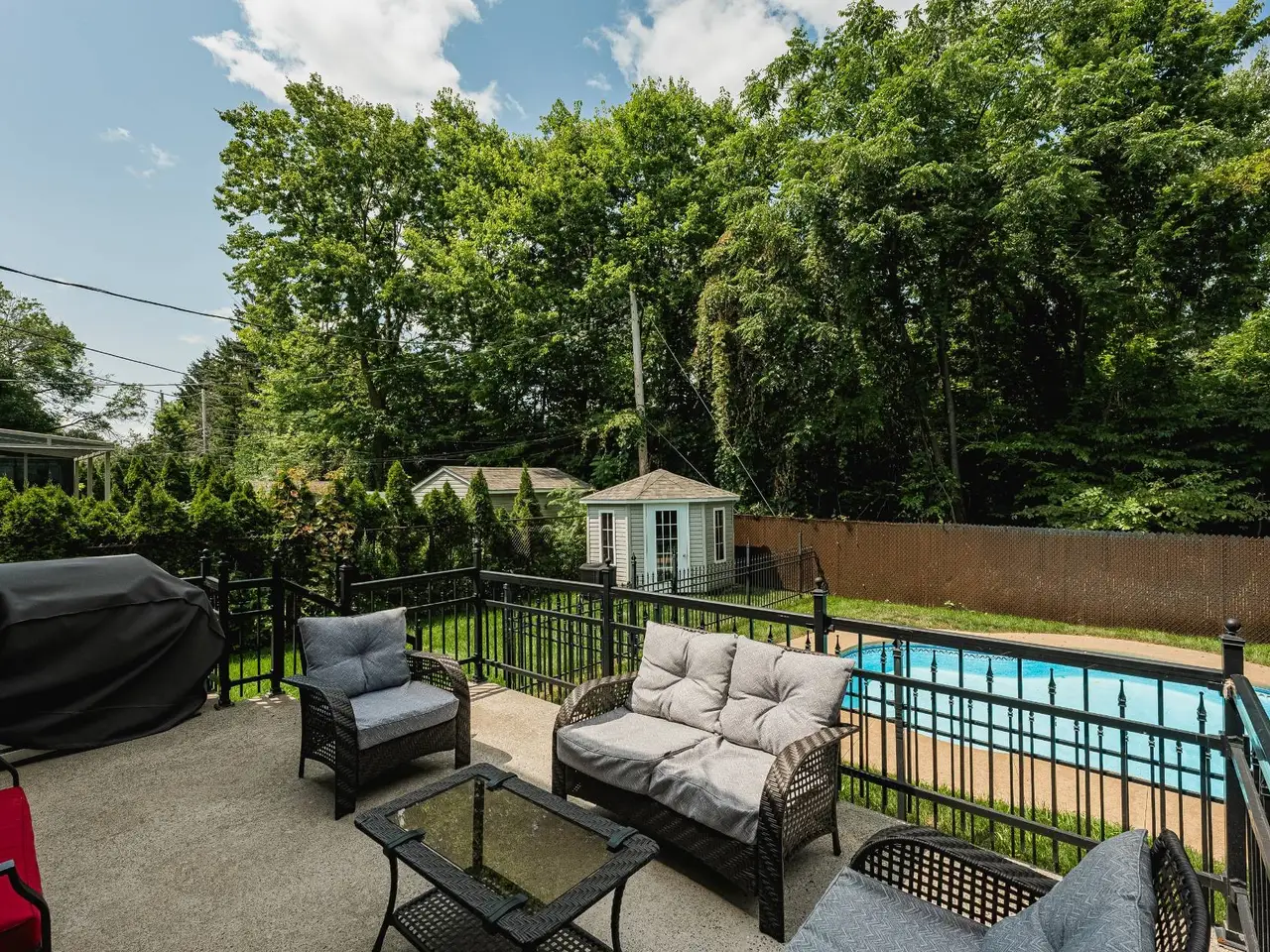 Turnkey elegance meets lush nature in this modern contemporary home in the heart of Ile-Bizard. Fully renovated and move-in ready, it offers 4 large bedrooms, 3.5 fully renovated bathrooms, refinished hardwood floors, and a luxurious primary suite with walk-in and ensuite bathroom. The open-concept kitchen and living room flow seamlessly, complemented by a private dining room and a fully finished basement. Outside, enjoy a private backyard with inground pool and no rear neighbors. Steps from Golf Saint-Raphael, The Royal Montreal, and Bois-de-l'Ile-Bizard Nature Park.