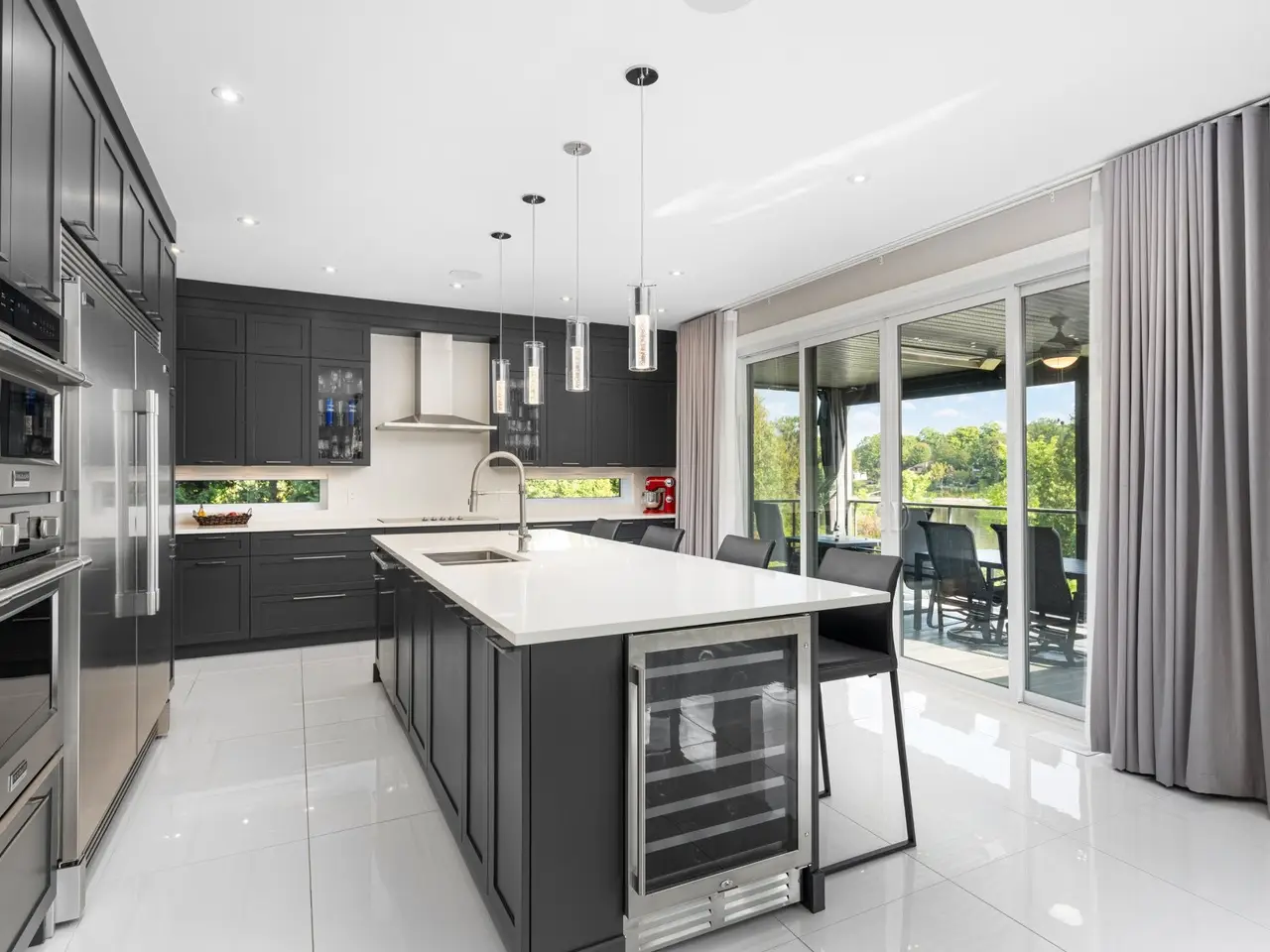Welcome to this prestigious waterfront residence, custom-built in 2020 on a beautifully landscaped 25,000 sq. ft. lot with direct access to the Riviere des Prairies in Ile-Bizard. Offering both privacy and elegance, this home is designed for those who appreciate refined living with an outdoor lifestyle. Enjoy breathtaking, unobstructed views of the water while being only minutes from Elm Ridge, Saint-Raphael, and Royal Montreal--three of Montreal's most renowned golf clubs--as well as the Bois-de-l'Ile-Bizard Nature Park.