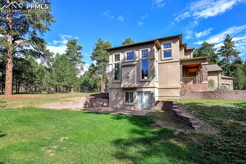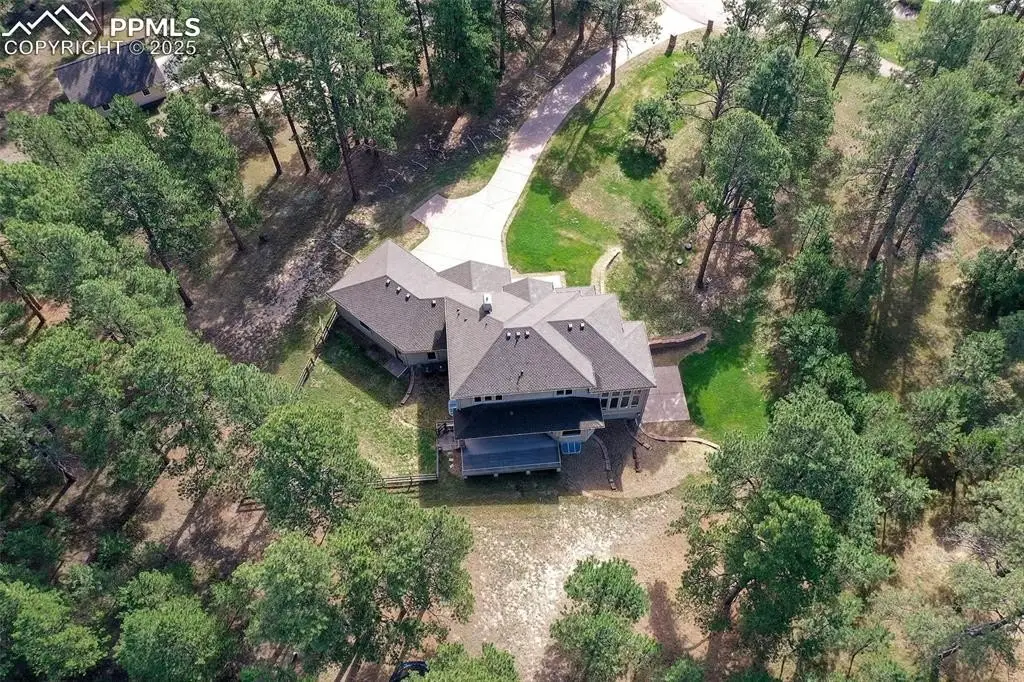 Located on a quiet cul-de-sac and nestled in the Ponderosa Pines on nearly THREE AND A HALF acres in Prestigious Kings Deer, this Stucco and Stone Two-Story Walk-out is True Colorado Luxury Living! Stamped concrete walkway leads to the covered entry with tongue & groove ceiling. Vaulted hardwood entry has art niche with marble mosaic tile and opens through arch to formal dining room w/rock wall, tray ceiling, art niche, wainscotting and kitchen access. Gourmet Kitchen has granite counters, extended height cabinetry, Stainless appliances include 6-burner gas stove w/griddle. oven & proofing oven, massive center island w/storage, vegetable sink and full secondary oven, and pass through bar with counter seating. Generous Breakfast Bay has walkout to private, covered composite deck w/wiring for speakers and access to fenced dog run. Enormous Living Room has two-story windows to let the natural wooded views in, and a stone wall with gas fireplace. Main level walk-out office off of powder room has coffered ceiling and built-in bookcases. Master Bedroom has 2-sided gas fireplace shared with 5-piece master bath with jetted tub and walk-in shower as well as 14 x 7 walk-in closet. Two more sizable bedrooms w/extended closets and a full bath w/double vanity upstairs. Enormous lower level Family Room boasts stone gas fireplace, entertainment center, game closet and wet bar, walks out to stamped concrete side patio. Spacious bedroom and full bath w/bidet and granite counters has private access to exercise room w/TV. Enormous storage room with shelving as well as under stair storage. Main level laundry/mudroom with washer, dryer, utility sink, built-in ironing board and bench with storage and closet has access to FOUR PLUS car garage with workbench, freezer, and loads of shelving! Expansive backyard with trampoline, swings and room for more in a park-like setting. Intercom, Security System, Central Air, 2 water heaters & furnaces. NEW CARPET & PAINT THROUGHOUT! A TRUE RETREAT!
