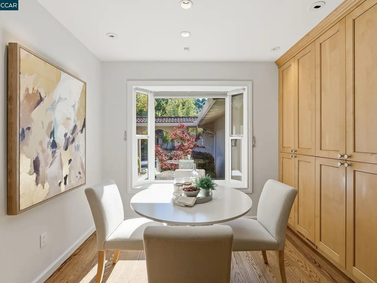 This single-story home in Campolindo has been beautifully updated throughout. From the rich cherry-wood entry doors and lush courtyard, to the kitchen open to the oversized family room, to the yard with flat lawn, fruit trees and tons of greenery, attention to detail is apparent.There are 4 bedrooms and 2.5 baths in more than 2500 square feet. The kitchen with breakfast bar and dinette has light-wood cabinetry, granite countertops, double ovens, and gas range. It opens to the large family room with sliders to the yard. The living room with vaulted ceiling and stone fireplace and formal dining room offer plenty of space to entertain. The bedroom wing features the primary, which opens to a patio and has views of the yard. The primary bath with vaulted ceiling and skylight has a walk-in closet, jetted tub and dual vanities. There are 3 more bedrooms and a remodeled hall bathroom. The professionally landscaped yard with paver patio and lawn has apple, persimmon and lemon trees. There is a powder room, laundry room with storage and 2-car garage. The home has hardwood flooring, dual-paned windows, recessed lights, skylights, an EV charger and Generac generator. Conveniently located close to top-schools, the Cabana Club, and Rim Trail access, come make this your home sweet home.