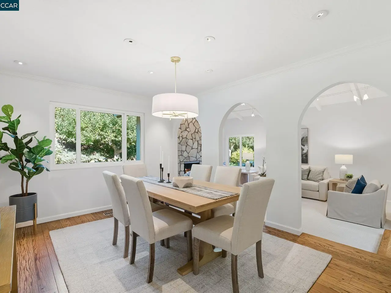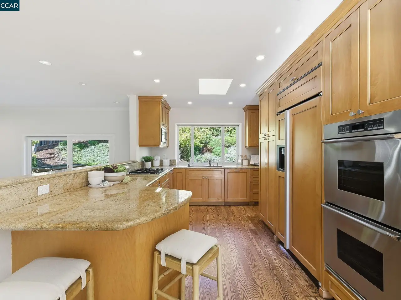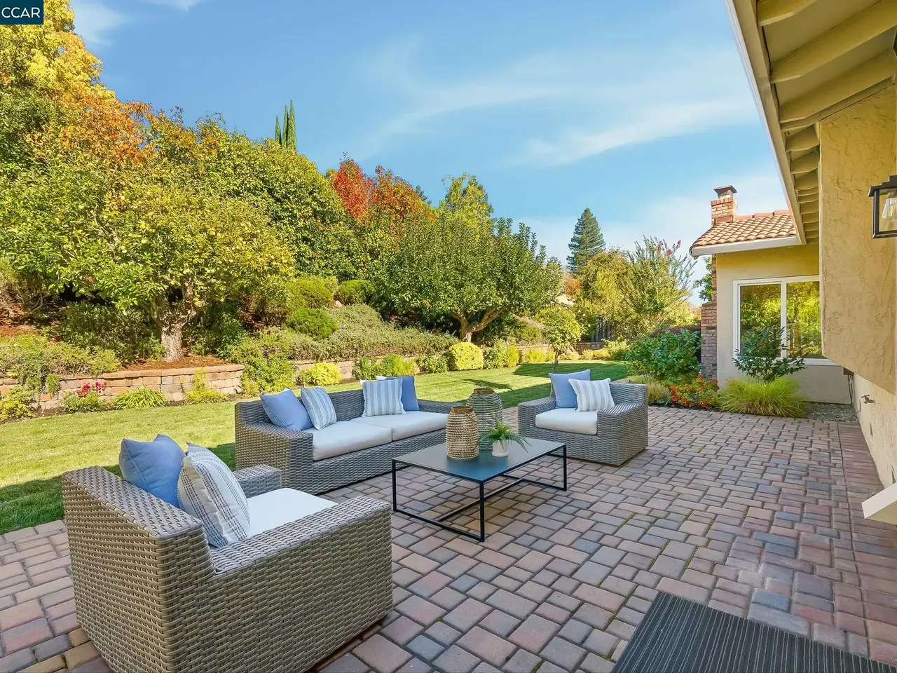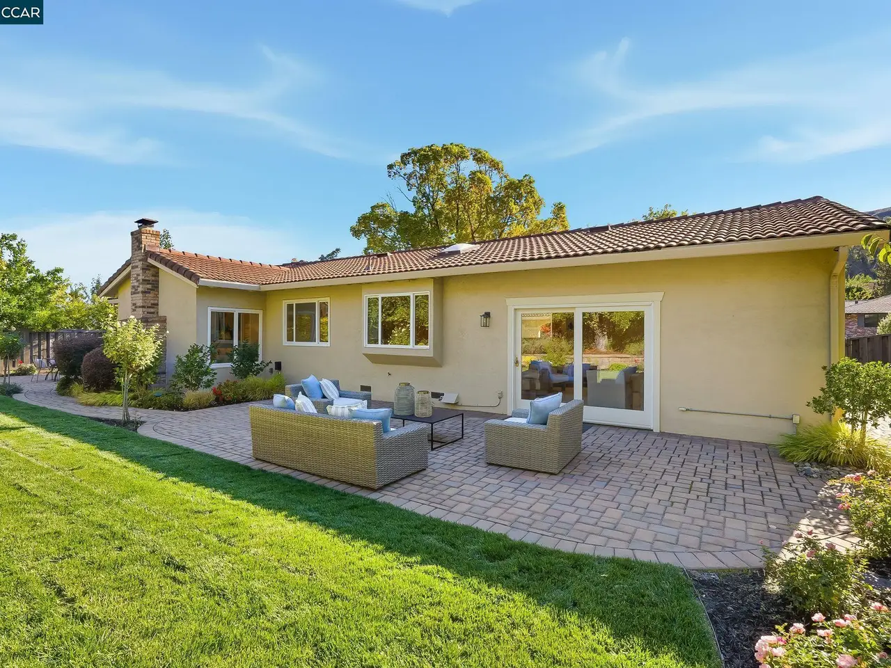 This single-story home in Campolindo has been beautifully updated throughout. From the rich cherry-wood entry doors and lush courtyard, to the kitchen open to the oversized family room, to the yard with flat lawn, fruit trees and tons of greenery, attention to detail is apparent.There are 4 bedrooms and 2.5 baths in more than 2500 square feet. The kitchen with breakfast bar and dinette has light-wood cabinetry, granite countertops, double ovens, and gas range. It opens to the large family room with sliders to the yard. The living room with vaulted ceiling and stone fireplace and formal dining room offer plenty of space to entertain. The bedroom wing features the primary, which opens to a patio and has views of the yard. The primary bath with vaulted ceiling and skylight has a walk-in closet, jetted tub and dual vanities. There are 3 more bedrooms and a remodeled hall bathroom. The professionally landscaped yard with paver patio and lawn has apple, persimmon and lemon trees. There is a powder room, laundry room with storage and 2-car garage. The home has hardwood flooring, dual-paned windows, recessed lights, skylights, an EV charger and Generac generator. Conveniently located close to top-schools, the Cabana Club, and Rim Trail access, come make this your home sweet home.