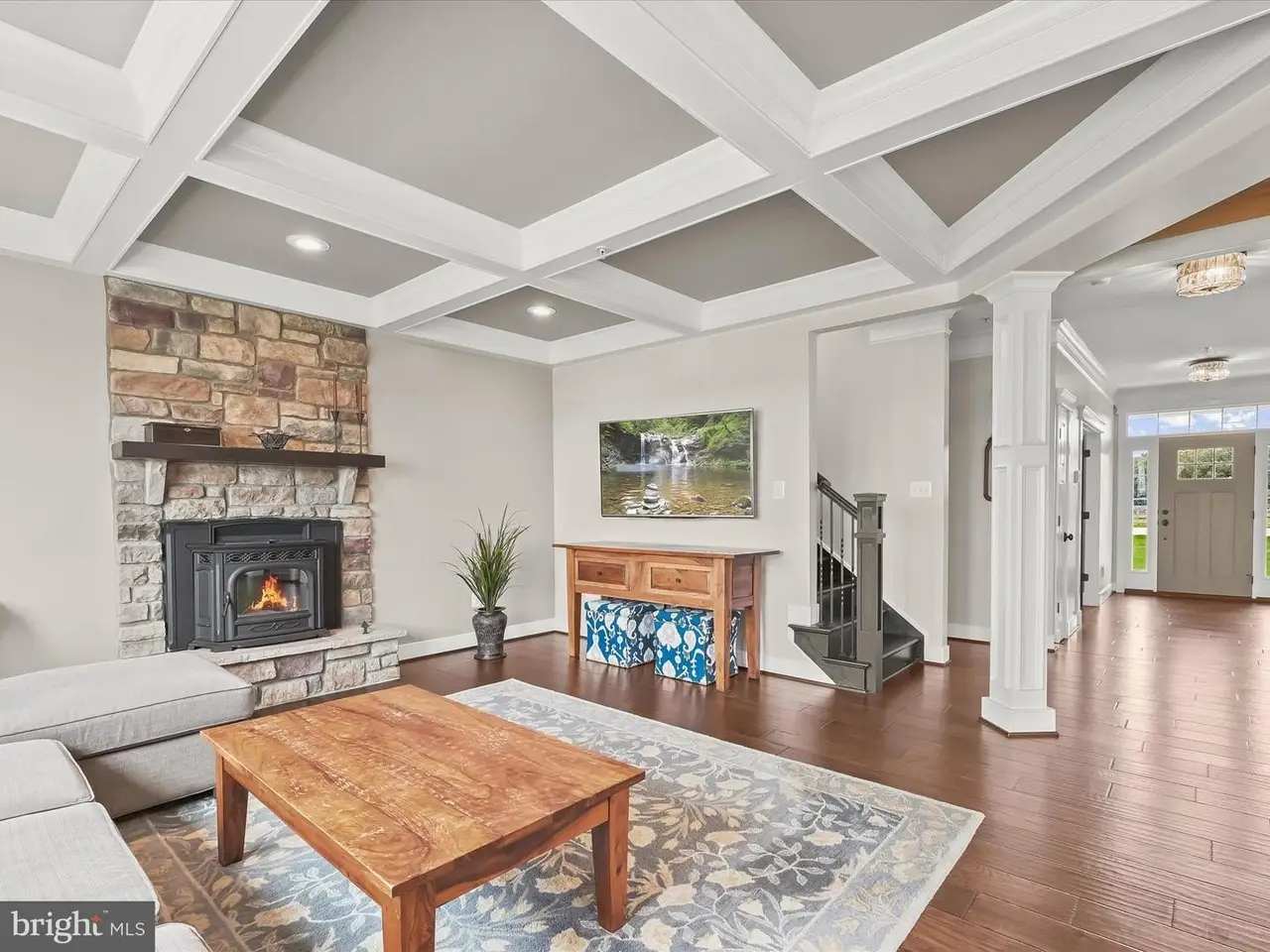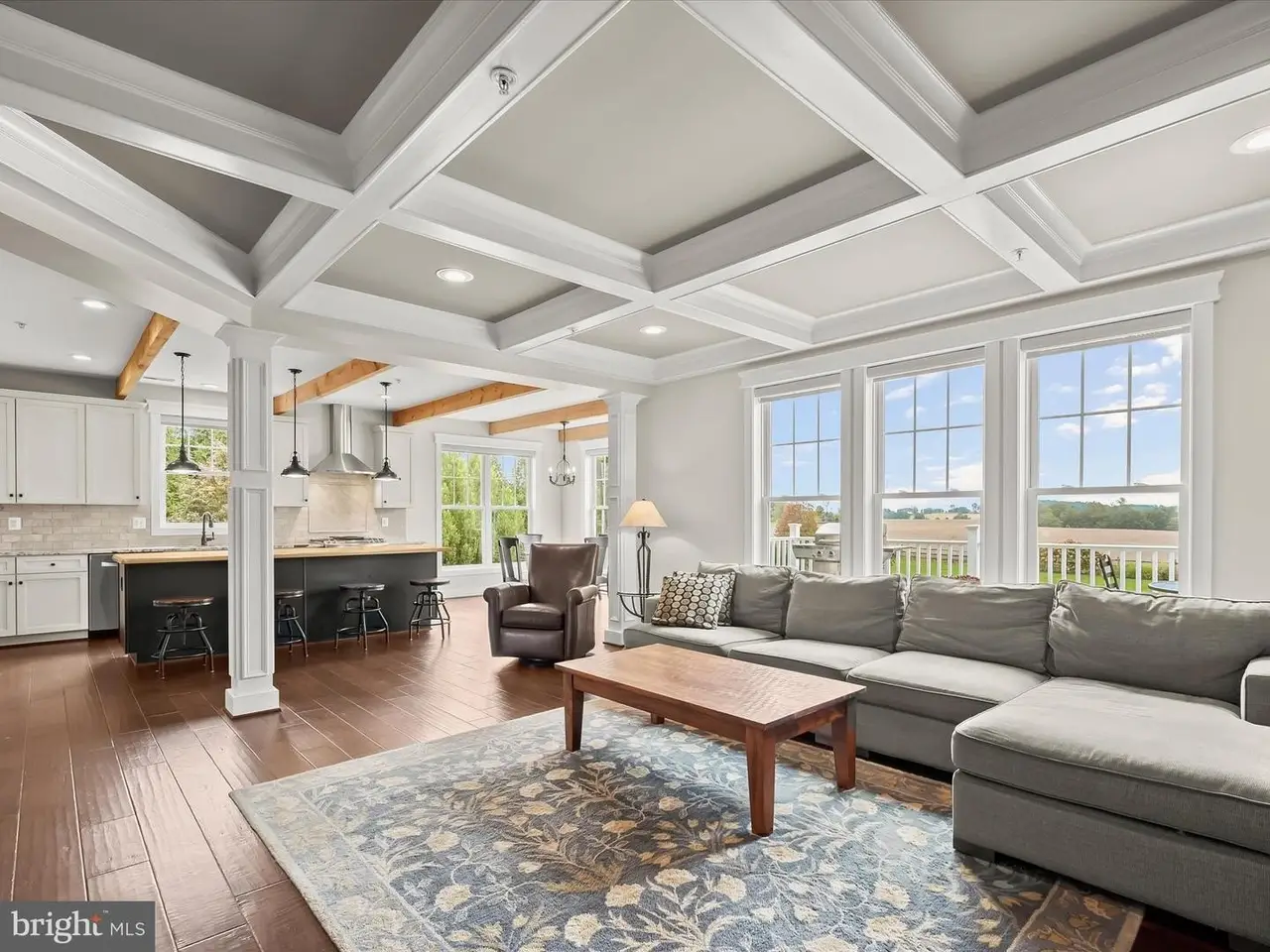 Coffered ceilings in the family room