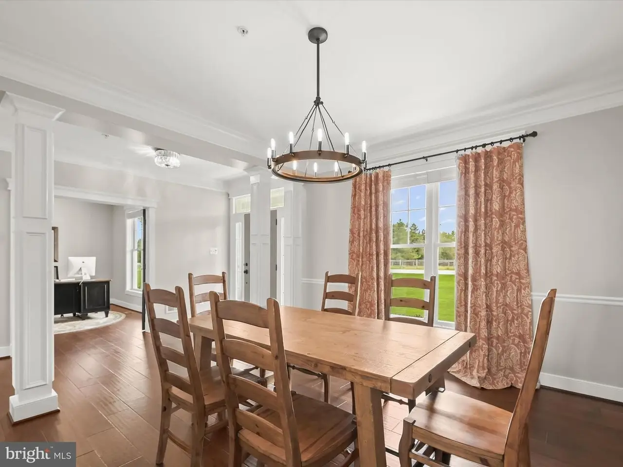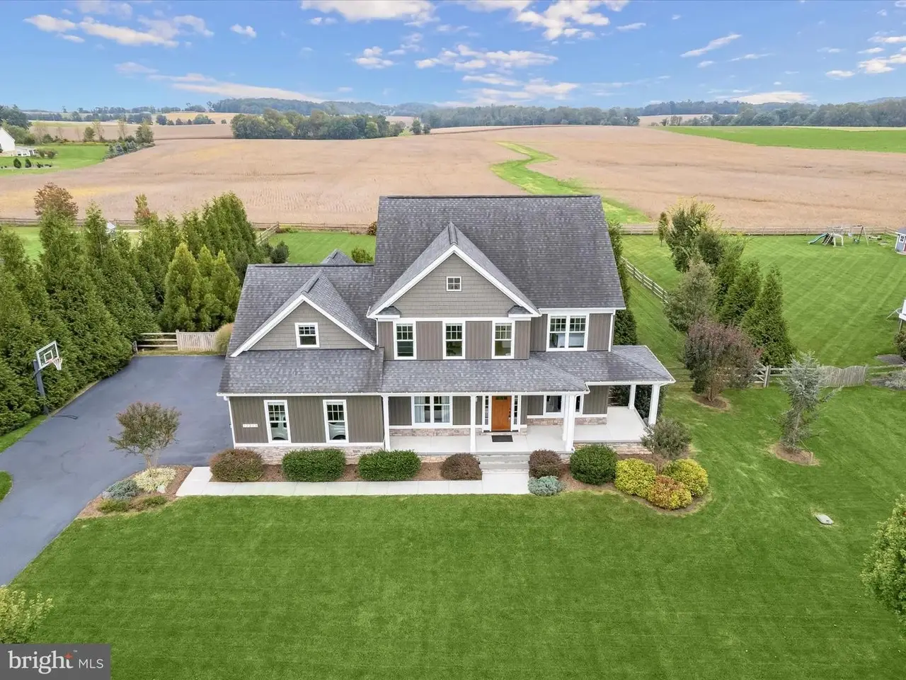 Welcome to this elegant custom-built Colonial, perfectly nestled in the prestigious Spring Hollow community of Mt. Airy. Designed for luxury living and timeless comfort, this exceptional residence backs to 84 acres of pristine preserved land, offering picture-perfect views of the countryside, while the front of the home overlooks pastoral scenes from a nearby horse farm. Inside, exquisite craftsmanship is on display with hand-scraped wide plank hardwood floors, custom ironwork and banisters, intricate trim and moldings, and thoughtful architectural details throughout. The gracious foyer is flanked by a private office with French doors and scenic views, as well as a formal dining room adorned with detailed millwork and stately columns. At the heart of the home, the chef's eat-in kitchen is a showstopper, featuring exposed wood beams, sleek appliances, granite countertops, decorative backsplash, and a center island with a maple wood breakfast bar. A gas stove with double convection ovens makes entertaining a delight, while the breakfast room provides breathtaking panoramic views of the countryside and access to the expansive deck. The family room is equally impressive, showcasing coffered ceilings, a pellet stove, and views of the beautifully landscaped backyard. A powder room and an arrival center with garage access complete the main level. Upstairs, the luxurious primary suite offers stunning views, two walk-in closets, and a spa-inspired en-suite bath with an expansive walk-in shower, dual vanities, and a private water closet. Three additional bedrooms one with its own en-suite bath along with a full hall bath and a conveniently located laundry room complete the upper level. The lower level expands the living space with a spacious game room with brand-new plush carpeting, an exercise room with rubber tile flooring, a workshop, a full bath, and abundant storage. Set on a beautifully landscaped 1-acre lot, the property's outdoor spaces are equally impressive, with a welcoming covered front porch, expansive deck, custom patio with firepit, and a fenced yard for outdoor enjoyment. An attached three-car garage and extended driveway add convenience to this exquisite offering. Combining sophistication, craftsmanship, and serene natural beauty, this remarkable home is the ultimate retreat for luxury living.