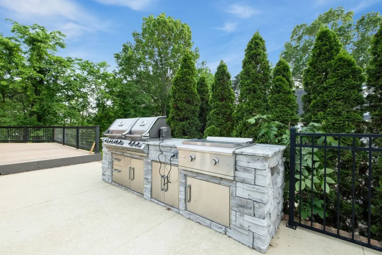 Custom-built, one-owner gated estate offering 5 bedrooms, 4.5 baths, and 5,264 sq ft of thoughtfully designed living space - perfectly positioned across from Pine Creek Golf Course! This exceptional property sits on a beautifully private lot and was crafted with comfort, functionality, and entertaining in mind. The main home features a dramatic two-story living room with a stunning stacked-stone fireplace, arched doorways, and dedicated offices on both levels. The chef-inspired outdoor living area includes an 18x36 in-ground pool (8 feet deep), spacious firepit area with lighting, and a fully equipped outdoor kitchen - ideal for hosting family and friends. The home includes two attached garages, while the detached 76x30 heated shop offers five additional garage bays, a private office, bar, bathroom, and a 650 sq ft one-bedroom, one-bath apartment above with exterior access. The apartment also includes roughly finished framing, offering potential for future expansion. The shop is equipped with an air compressor and lines run throughout, and is complemented by a 27x36 covered RV parking area with water and electric hookups. Additional highlights include a completely encapsulated and climate-controlled crawl space, a Generac natural gas whole-home generator, LED outdoor home lighting, performance irrigation system, a security system with multiple cameras and monitors, and 80-year composite shingles. With thoughtful upgrades throughout and endless space for entertaining, working, or relaxing, this one-of-a-kind estate is a rare find and truly a must-see!