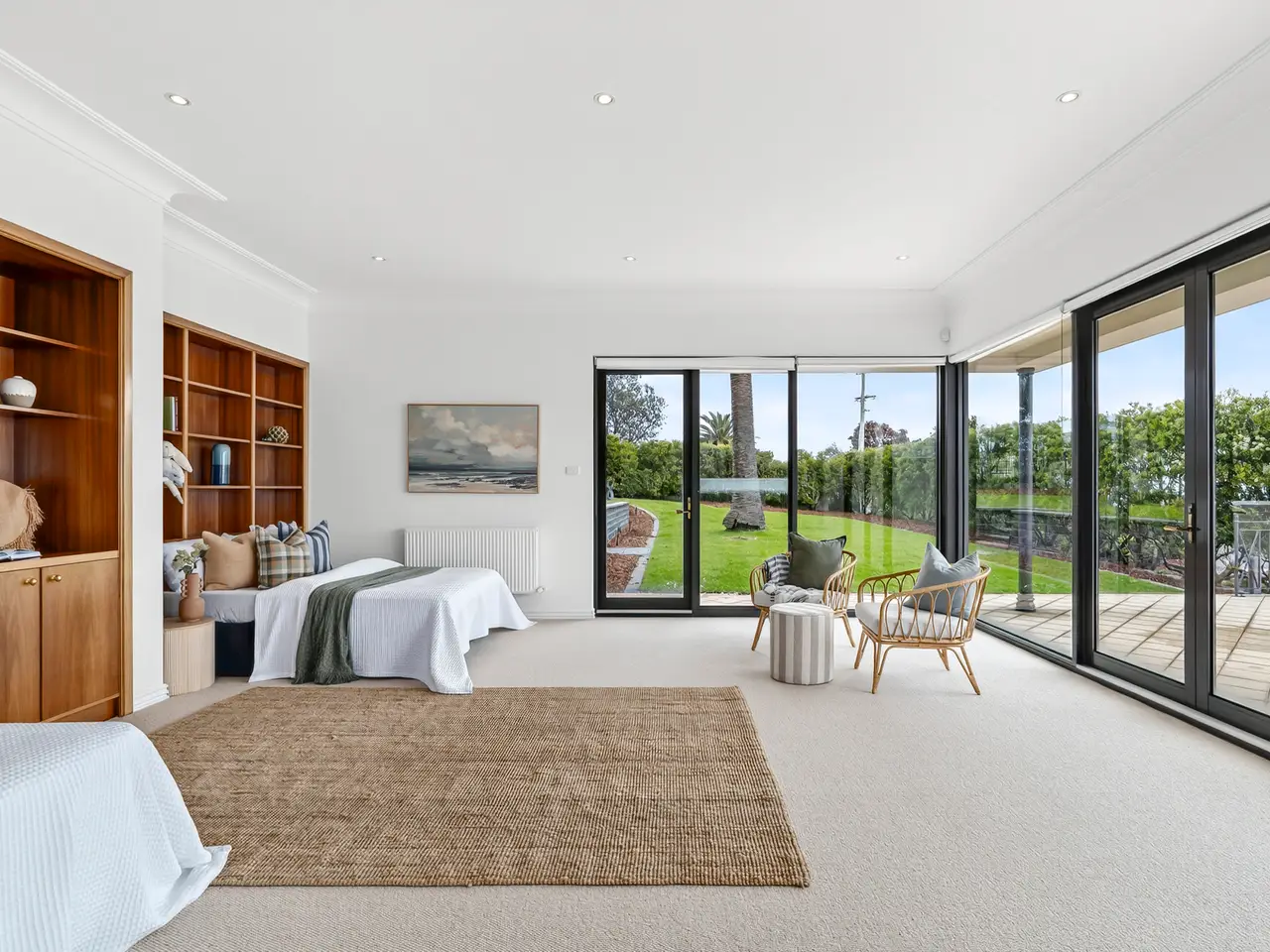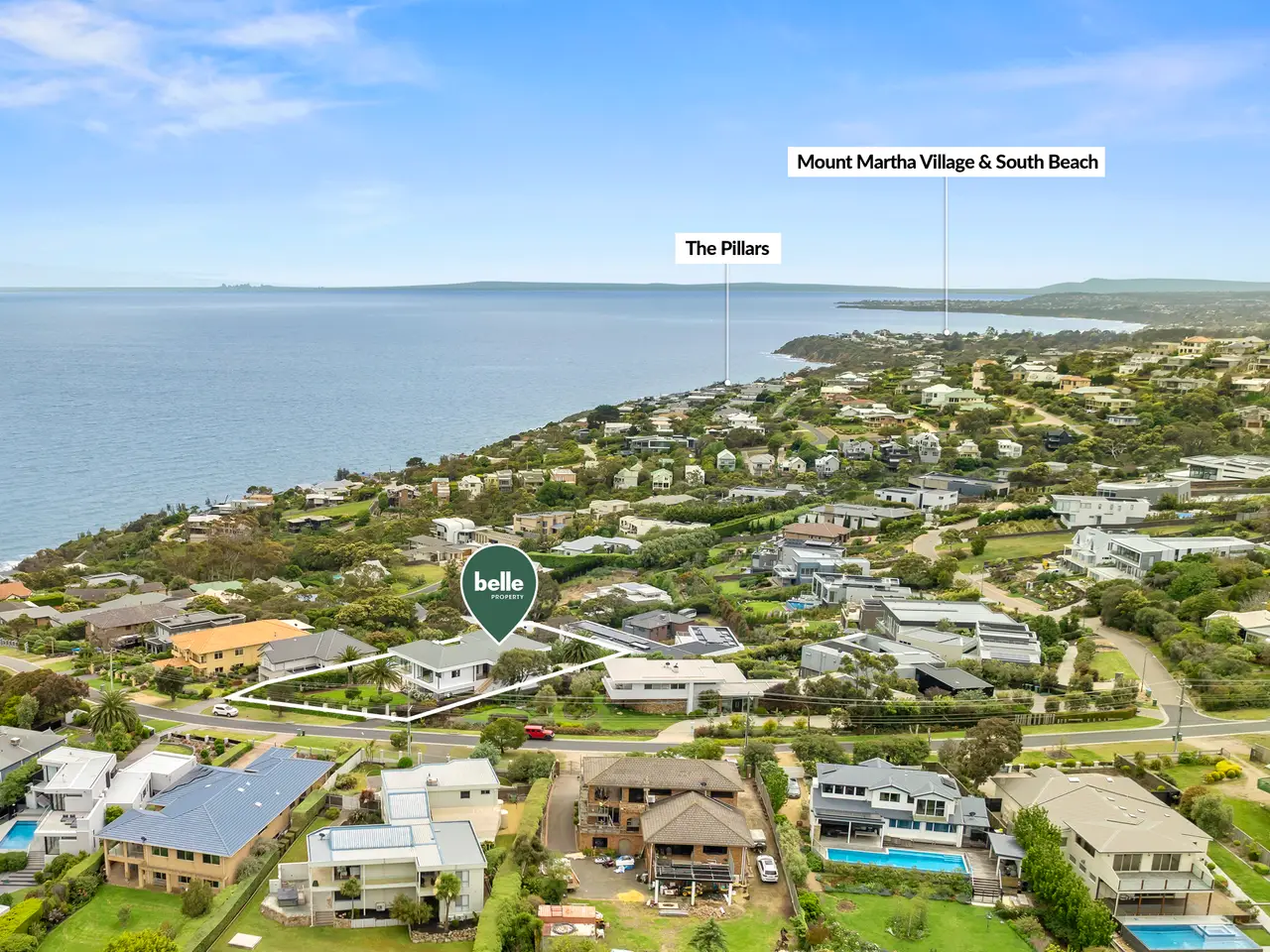 Sophisticated elegance awaits in this superb home that's set just 550m to the stunning coastline and a short drive to Mount Martha village and beaches. Expansive throughout, this quality residence features light-filled rooms that revel in the sensational bay vistas, with grand interiors that open to multiple terraces to provide exceptional entertaining and relaxation options. In addition to a generous front garden with potential for a new pool (STCA), there's abundant rear parking and workshop space that's perfect for the avid car collector. - Main lounge has fireplace and superb views, leading out to BBQ alfresco - Quality kitchen with dishwasher, new oven/grill and 5-burner cooktop - Large adjacent dining room, plus powder room and ample storage - Lavish main suite with private balcony, multiple robes, spa bath ensuite - Lower floor family room with built-in storage, opens to private terrace - 2 huge bedrooms with ample storage and entry to the garden - Sauna, plus ensuite and family bathroom, both with shower, vanity, WC - Sunroom/office, laundry, multipurpose storage/cellar, entry to garages - Garaging for 4 cars, driveway parking, workshop plus WC, sink, shower - 3.4m ceilings, ducted heating/cooling, plus hydronic heating