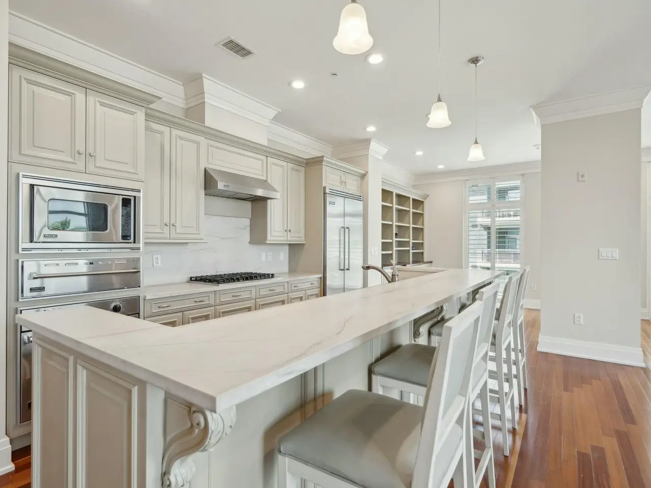 Fabulous opportunity to own this beautiful property at Tides 3 with spectacular waterfront views. Luxurious condominium located at the base of the signature Ravenel Bridge overlooking the Cooper River. Spacious living areas opens to large terrace. Included in the living room, you will find a built-in bar with a wine and beverage fridge. Gourmet kitchen offers Viking appliances and center island for informal dining. Elegant primary suite with custom built-in cabinets and private balcony. Amenities include a pool, hot tub and fitness center. Minutes from Historic Charleston.