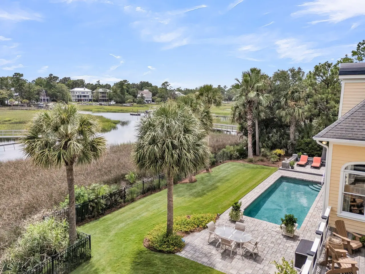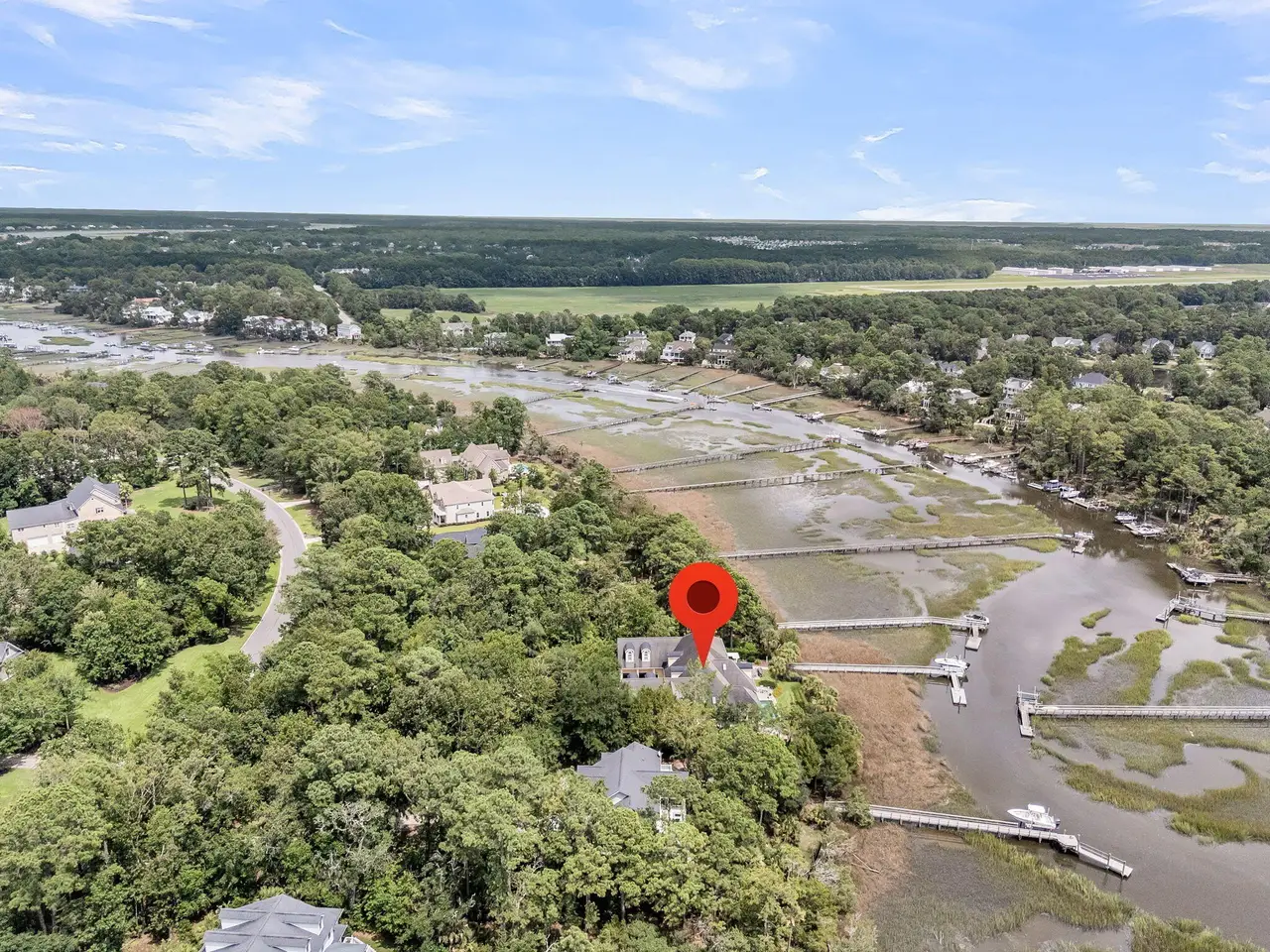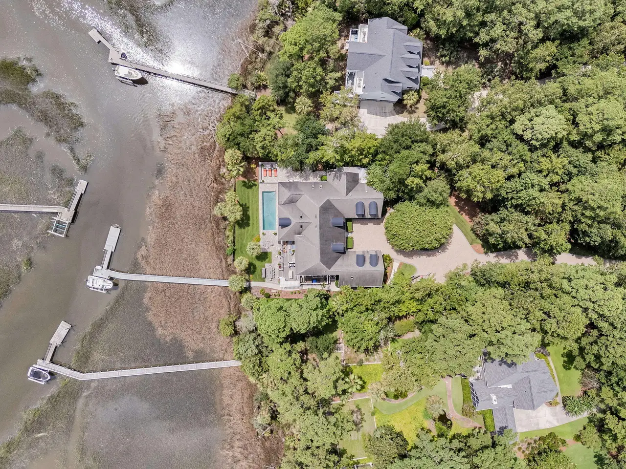 Welcome home to Mount Pleasant's prestigious gated community of Dunes West. This meticulously maintained custom-built waterfront home on over an acre of land offers 6,075 square feet of living space, and is thoughtfully set back from the street for enhanced privacy and panoramic views. Enjoy direct creek access from your private dock, complete with a 7,000-pound boat lift and floating dock - ideal for boating, fishing, or simply soaking in the serene Lowcountry lifestyle. The main level features an oversized open concept living room and dining room, a home office perfect for the work at home couple, and a sun-drenched sunroom/porch with marsh and creek views. Speciality window coverings allow for the sunroom to be used year round with the windows open or closed. The gourmet kitchen is functional and inviting with views of Toomer Creek from every window and features a large kitchen island, stainless steel Wolf and Sub-Zero appliances, a copper sink, a built-in TV, an eat-in area, and a cozy area to watch TV - with outdoor access to the deck, the outdoor kitchen, the backyard, the pool and the dock. The butler's pantry, which features a sink, a second dishwasher, and a wine fridge, also serves as the laundry room with plenty of extra storage, including pull out drawers in the cabinets. The large first-floor primary suite features a gas fireplace, "his" and "hers" walk-in closets with custom built-ins, and motorized shades and blackout shades to ensure a good night's sleep. The primary bathroom features two separate vanities, a jetted soaking tub, a separate walk-in shower, a private water closet and outside access to the pool and backyard. A spacious "bonus room" with a separate staircase is located over the primary bedroom and provides tons of storage or could easily be converted to a second home office, home gym or hobby space. Upstairs, you will find three additional bedrooms - two at the back of the home with views of the marsh and creek. The attached FROG serves as the 5th bedroom/media room and features a vaulted ceiling, a large walk-in closet, a wet bar and a full bathroom. A full bath and a half bath complete the second floor living space. The 2-car attached garage features epoxy flooring, plenty of built-in storage and access to both the driveway and the backyard. The backyard is an outdoor oasis complete with a saltwater pool, several seating & lounging areas, (including patio and deck space), an outdoor shower, and an outdoor kitchen - all overlooking the creek and marsh. The fenced in yard is perfect for your four legged friends. Dunes West offers an exceptional lifestyle with tree-lined walking and jogging trails, a play park, a boat launch, and community docks. Optional membership to the Dunes West Golf and Racquet Club includes access to an Arthur Hills-designed 18-hole golf course, three pools, tennis courts, a fitness center, and more. Don't miss your chance to own this extraordinary property in Dunes West!