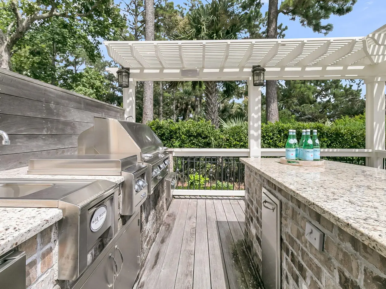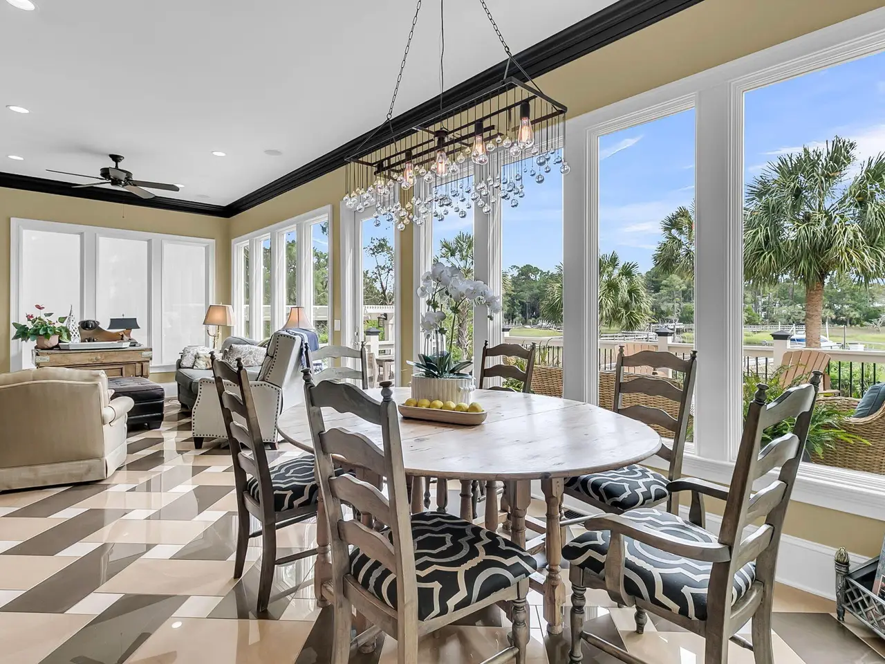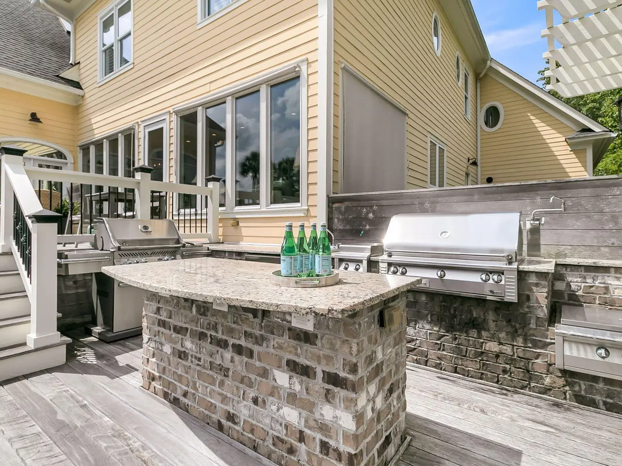 Welcome home to Mount Pleasant's prestigious gated community of Dunes West. This meticulously maintained custom-built waterfront home on over an acre of land offers 6,075 square feet of living space, and is thoughtfully set back from the street for enhanced privacy and panoramic views. Enjoy direct creek access from your private dock, complete with a 7,000-pound boat lift and floating dock - ideal for boating, fishing, or simply soaking in the serene Lowcountry lifestyle. The main level features an oversized open concept living room and dining room, a home office perfect for the work at home couple, and a sun-drenched sunroom/porch with marsh and creek views. Speciality window coverings allow for the sunroom to be used year round with the windows open or closed. The gourmet kitchen is functional and inviting with views of Toomer Creek from every window and features a large kitchen island, stainless steel Wolf and Sub-Zero appliances, a copper sink, a built-in TV, an eat-in area, and a cozy area to watch TV - with outdoor access to the deck, the outdoor kitchen, the backyard, the pool and the dock. The butler's pantry, which features a sink, a second dishwasher, and a wine fridge, also serves as the laundry room with plenty of extra storage, including pull out drawers in the cabinets. The large first-floor primary suite features a gas fireplace, "his" and "hers" walk-in closets with custom built-ins, and motorized shades and blackout shades to ensure a good night's sleep. The primary bathroom features two separate vanities, a jetted soaking tub, a separate walk-in shower, a private water closet and outside access to the pool and backyard. A spacious "bonus room" with a separate staircase is located over the primary bedroom and provides tons of storage or could easily be converted to a second home office, home gym or hobby space. Upstairs, you will find three additional bedrooms - two at the back of the home with views of the marsh and creek. The attached FROG serves as the 5th bedroom/media room and features a vaulted ceiling, a large walk-in closet, a wet bar and a full bathroom. A full bath and a half bath complete the second floor living space. The 2-car attached garage features epoxy flooring, plenty of built-in storage and access to both the driveway and the backyard. The backyard is an outdoor oasis complete with a saltwater pool, several seating & lounging areas, (including patio and deck space), an outdoor shower, and an outdoor kitchen - all overlooking the creek and marsh. The fenced in yard is perfect for your four legged friends. Dunes West offers an exceptional lifestyle with tree-lined walking and jogging trails, a play park, a boat launch, and community docks. Optional membership to the Dunes West Golf and Racquet Club includes access to an Arthur Hills-designed 18-hole golf course, three pools, tennis courts, a fitness center, and more. Don't miss your chance to own this extraordinary property in Dunes West!
