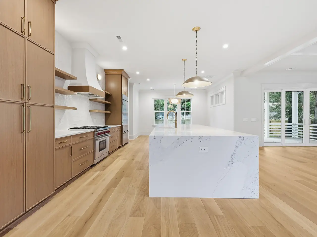 Incredible opportunity to own a brand-new, high-end construction in Mt. Pleasant's most coveted area - Old Mount Pleasant. 1463 Seminole Street, constructed by Michael Rooke of Rooke Custom Homes - one of the top builders in the Charleston area. This 3,500 sq ft home features an open floor plan with main level living, a generous primary suite and a total of 4 beds and 3.5 baths. There is also a generous screened porch that overlooks a custom pool with outdoor patio and a two-car garage. Luxury designer finishes hand selected by top designer Noel Kade with Method of Design, Inc. Engineered wide-plank French white oak throughout, with custom tile in each bathroom making up the flooring selections. The open-concept living room features custom wood beams, a gas fireplace with oak mantle and generous windows. The living area flows seamlessly into the gourmet kitchen featuring an oversized central island with pendant lighting, veined-quartz countertops and waterfall detailing at each end. The island also features generous storage and room for seating to entertain guests. Stainless steel appliances including a Wolf Range and Subzero Refrigerator are beautifully featured on a backdrop of tile to the ceiling with custom floating shelving in oak and sconces to highlight the detail of the hand-made tile. An undermount fire-clay kitchen sink, a drawer microwave and panel-ready dishwasher are conveniently located on the work side of the island. Kohler plumbing fixtures in brushed gold are the finishing touches that make this kitchen a dream! The dining space has luxury lighting and ample perimeter windows with views of the fenced-in yard and the beautiful in-ground pool and patio. A mudroom from the 2-car garage leads directly into a back-of-house utility area that serves as Laundry and Scullery, featuring side-by-side Electrolux washers and dryers with hanging space above, a laundry sink, generous pantry storage and a beverage center. The Powder Room, tucked away yet conveniently located, features a wall-mounted sink with brushed gold plumbing and Kohler plumbing. The primary suite has an amazing, vaulted ceiling with wood detailing, two custom walk-in closets with ample storage, dual vanities, a frameless glass surround, tile shower with custom bench, soaking tub with floor-mounted brushed gold tub filler and a private water closet. The second floor features (2) full baths and (3) additional bedrooms, nicely sized with custom closets and a den/media room/playroom. Other bells and whistles include a 4-zone irrigation system, gutter system, fenced-in backyard, and lush landscaping! Old Mt. Pleasant is minutes from Coleman Boulevard, Shem Creek, Pitt Street Bridge, and the shops and dining on Old Village's charming and popular Pitt Street.