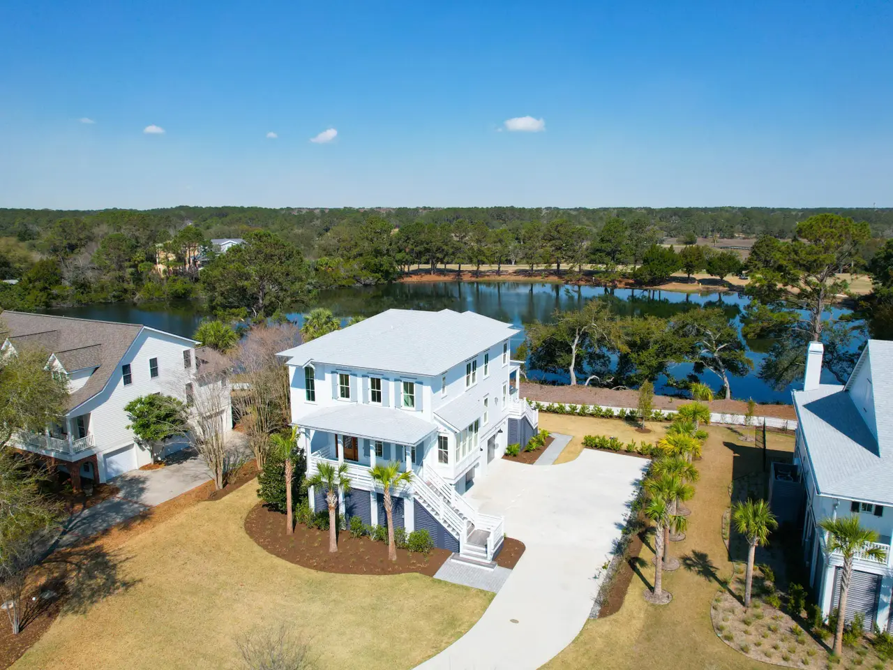 NEW CONSTRUCTION! Nestled in Victory Point, an established and quaint gated community of only 27 homes in Charleston National, this exquisite custom-built home is truly a work of art...a rare opportunity to own a home with the fine quality and unmatched craftmanship that Brier Inc is known for. The location is ideal, offering the privacy and serene setting you desire while being minutes away from downtown Charleston and the beaches of Sullivan's Island and Isle of Palms.Water views abound from this home with a marsh view out the front and a golf course and lake view from the rear. Only discerning buyers will notice the quality craftmanship and finishes this home offers. As you step into the foyer, you will be captivated by the floating antique wooden beams reclaimed 1920'sProhibition Era Boston Beer Racks, setting the tone for the exquisite craftmanship throughout. The kitchen is a chef's delight, featuring Thermador Professional Series appliances, custom cabinetry and a massive island with storage galore. The island is equipped with a 45" sink that takes functionality to a whole new level with dual level attachments that convert your kitchen sink into a full-fledged workspace. If that's not enough, there's an extra-large walk-in Butler's Pantry featuring antique reclaimed circle-sewn countertops and an additional Blomberg refrigerator/freezer. Extending from the kitchen is a large dining room offering abundant natural light and spectacular views of the lake and golf course on three sides. The family room is highlighted by a gas fireplace accented by a 75" Samsung Frame TV and flanked by custom built-in bookshelves. Three sets of glass French doors open from the living room to the back porch featuring a custom built-in Broilmaster Grill for outdoor grilling and entertaining. Your guests will love to powder their nose in the charming ½ bath, adorned with designer wallpaper and a floating vanity. Completing the main level is a large bedroom with an ensuite bathroom and walk-in closet. Whether you take the stairs or the 3-stop elevator, the spacious upstairs primary suite is sure to impress. With breathtaking views of the lake and fairways, the bedroom also features a covered walkout deck with IPE flooring panels and cable railing, overlooking the serene setting. The primary bath includes dual vanities, a beautiful soaking tub, an oversized walk-in shower, a wall of custom cabinetry and an exceedingly large walk-in closet. The 3rd and 4th bedrooms each have ensuite baths and walk-in closets. What's behind the walls of this well-constructed home is quite impressive - 2' x 6' exterior framed walls, impact windows, spray insulation, efficient heating and cooling system, tankless water heater with recirculating hot water, and a 50 year architectural shingled roof. Brier Inc.'s uncompromising commitment to quality construction is in every aspect of this home. Other fine features include designer lighting and hardware, ship lap, a premier home audio system, RING security system, and gorgeous tile throughout. The 3-car garage level is spacious enough for a workshop, extra storage, a golf cart, or multiple cars and opens to a custom lakeside patio with a built-in firepit and seating. Homes of such high quality and location rarely come available!